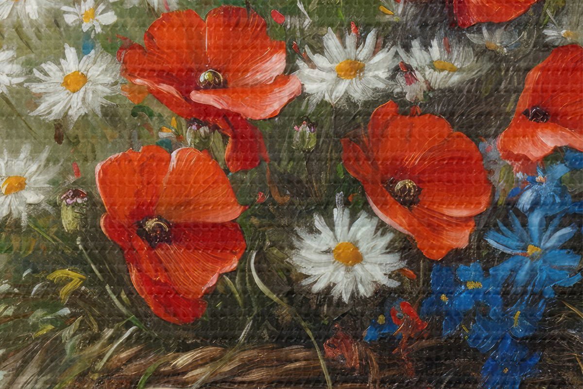 Smulkus siūlų pynimas ant šios drobės primena profesionalių dailininkų drobių paviršių.