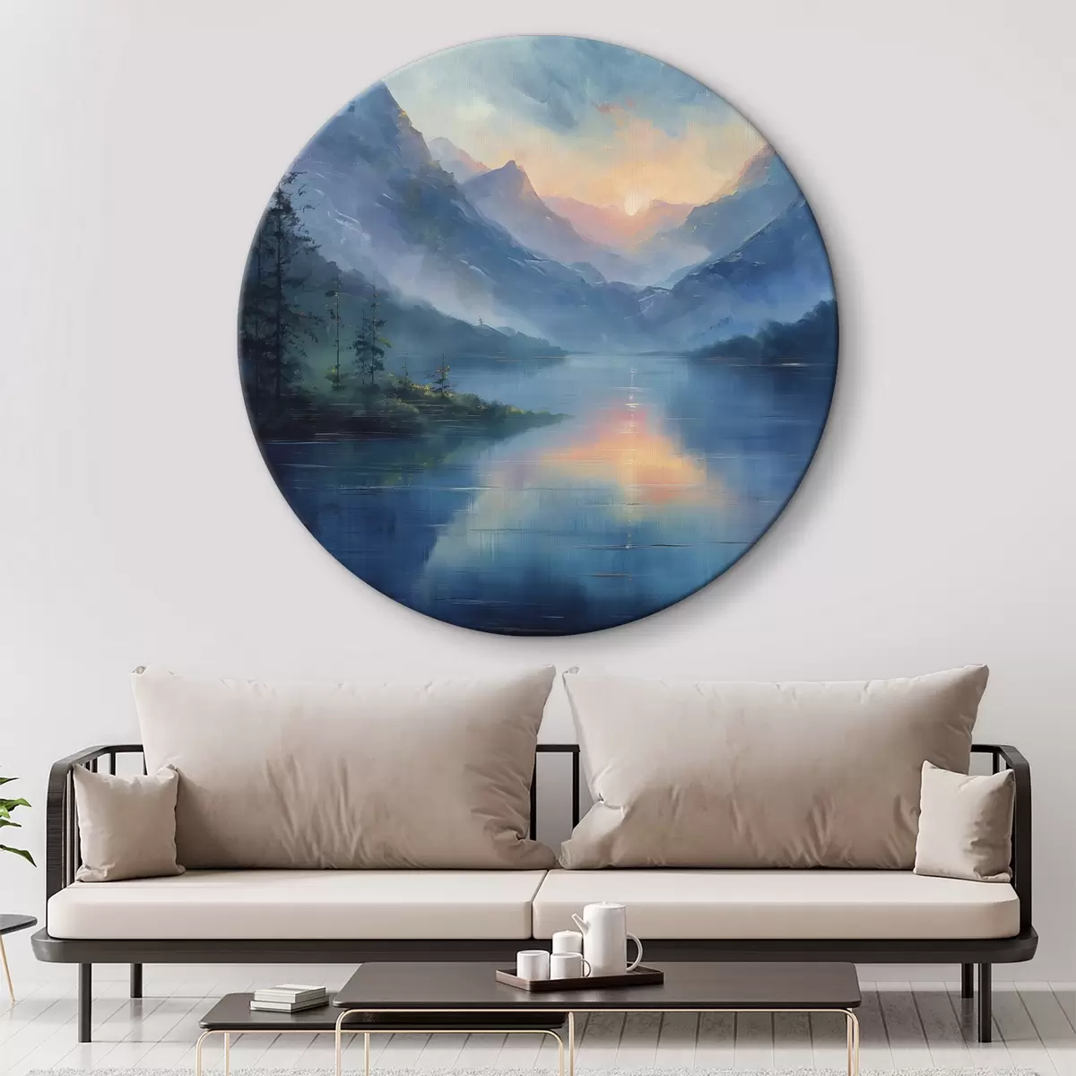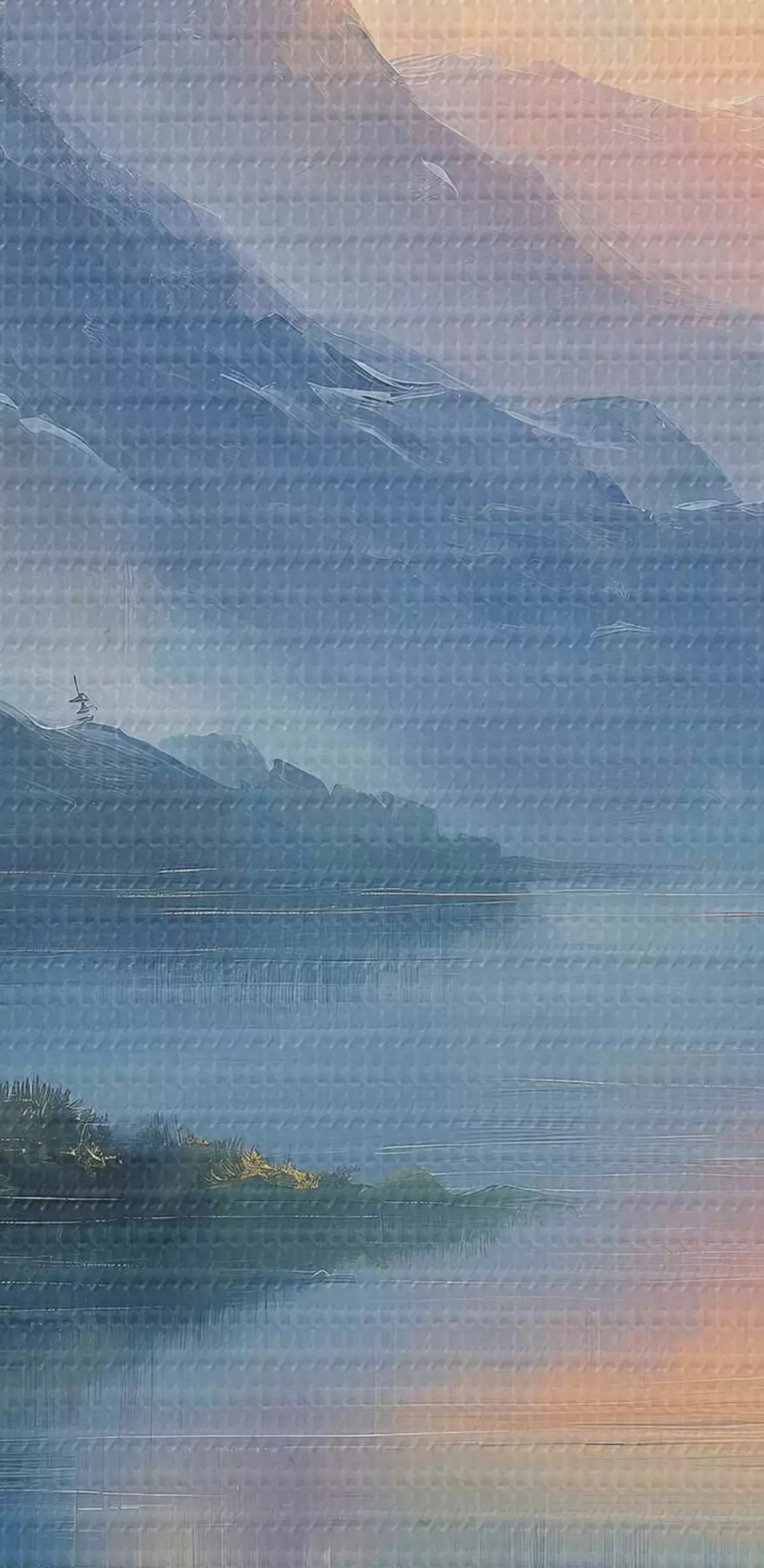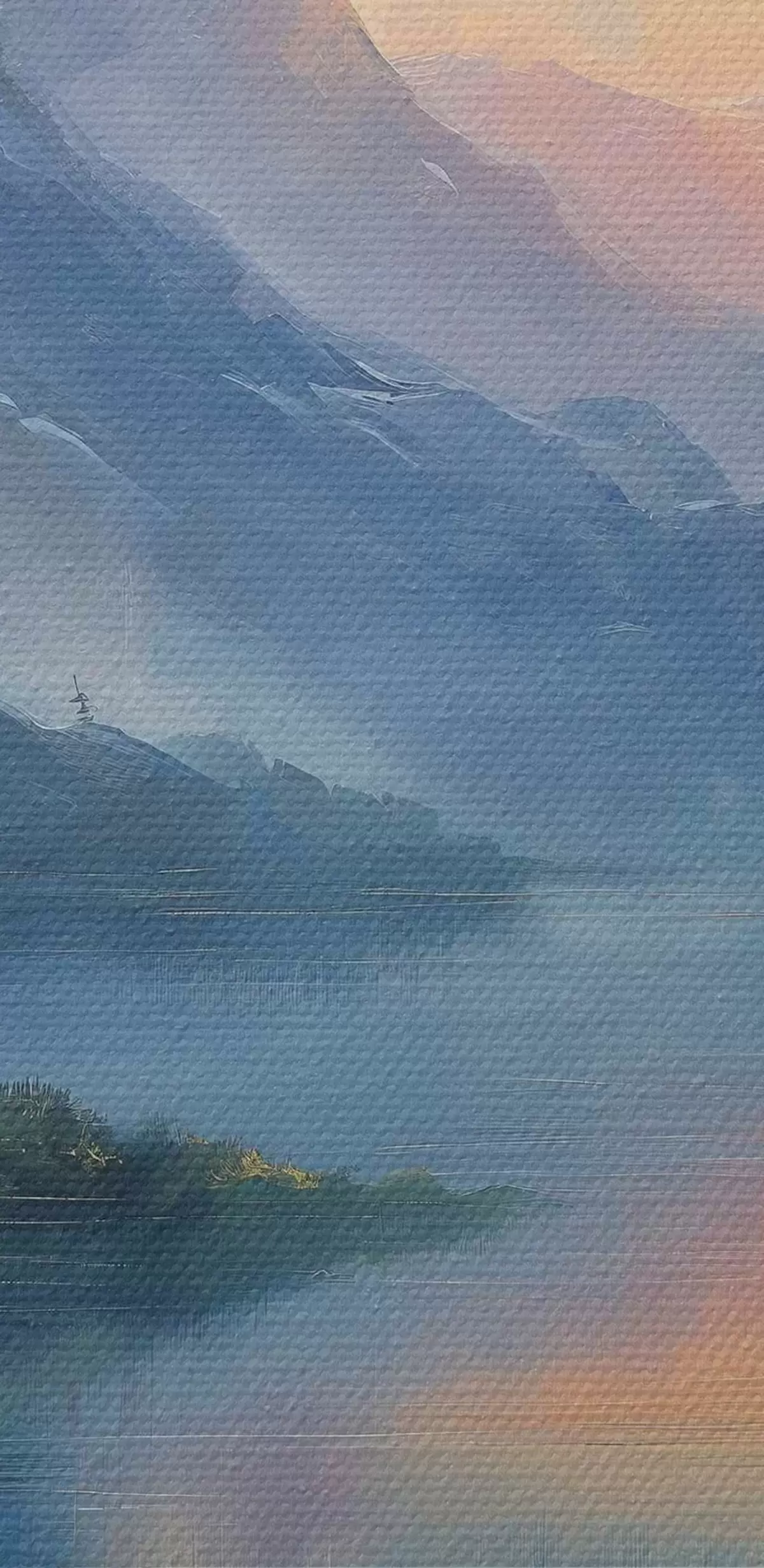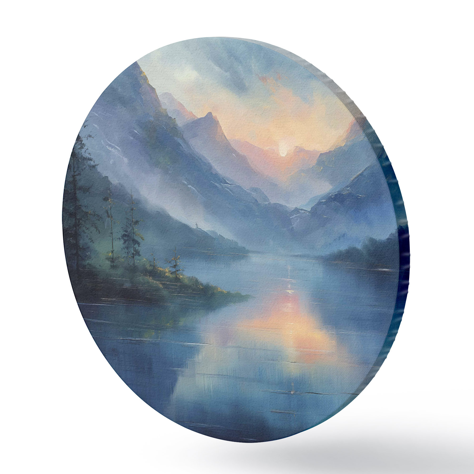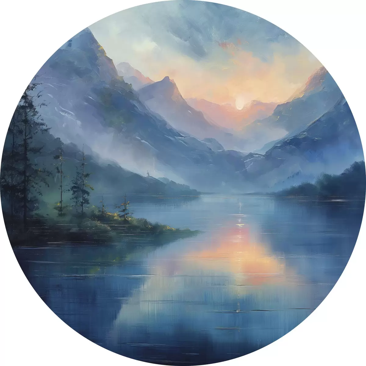Nuotrauka Saulėlydis kalnuose, rūkas, upė, miškas, tapyba aliejiniais dažais Nr r40302