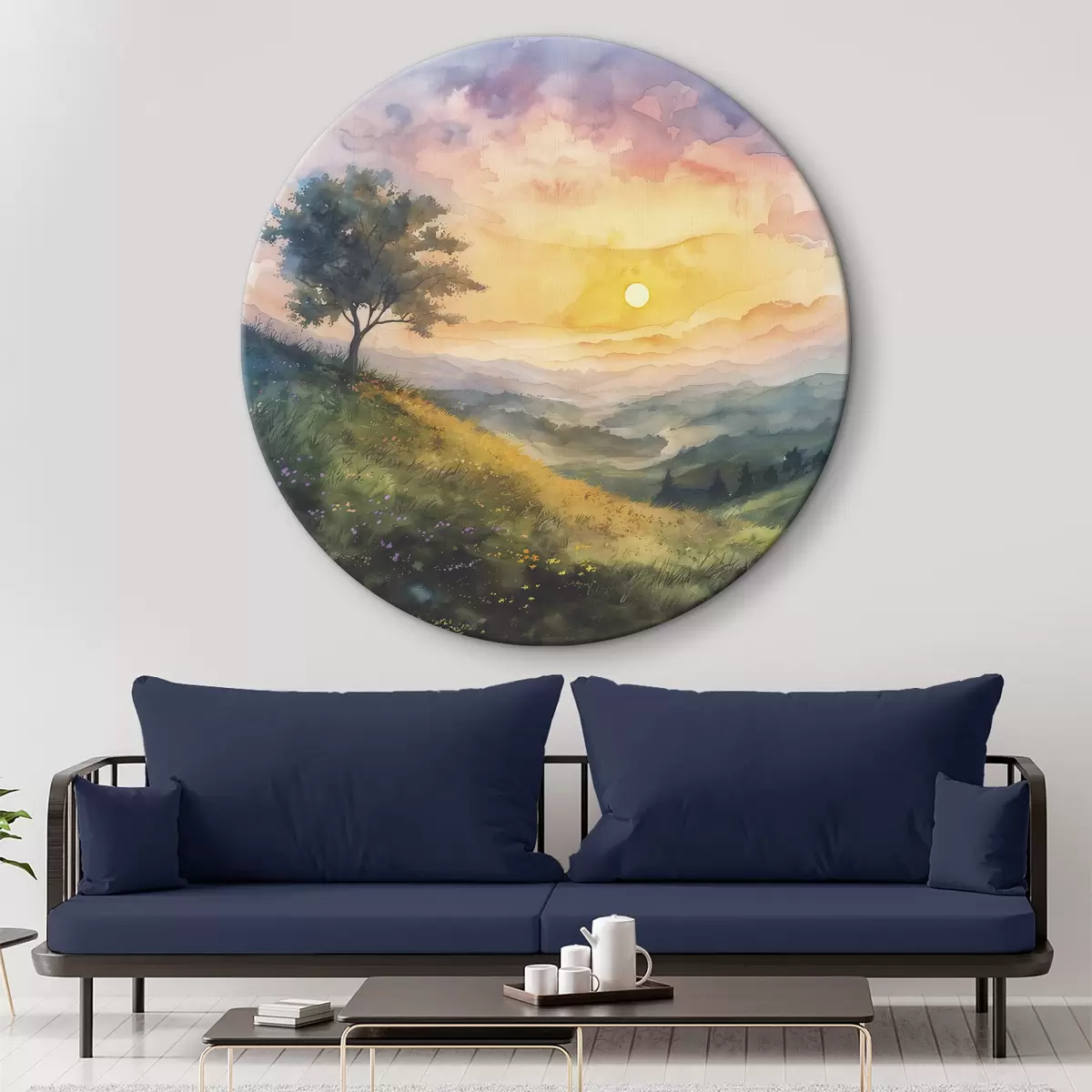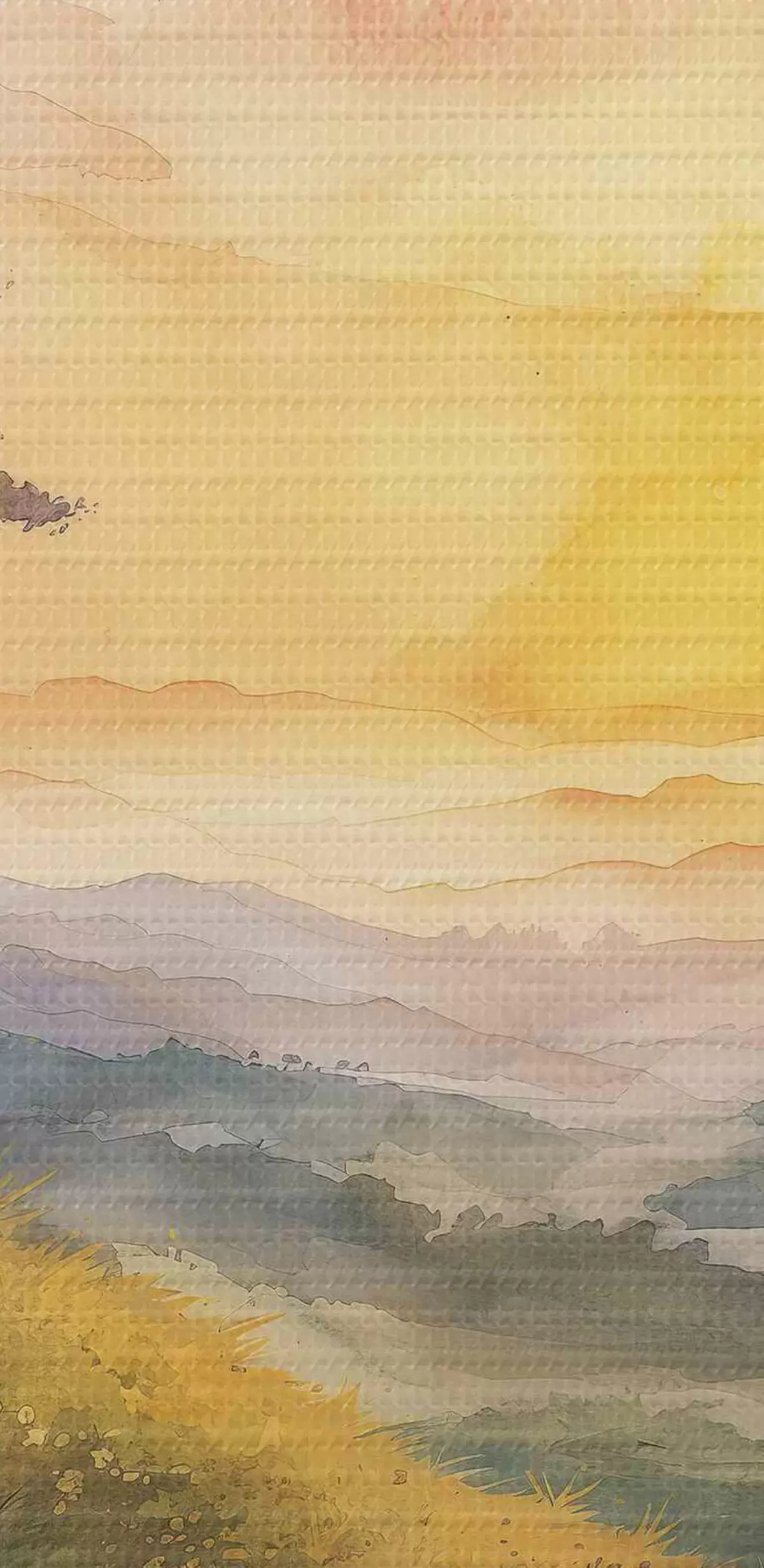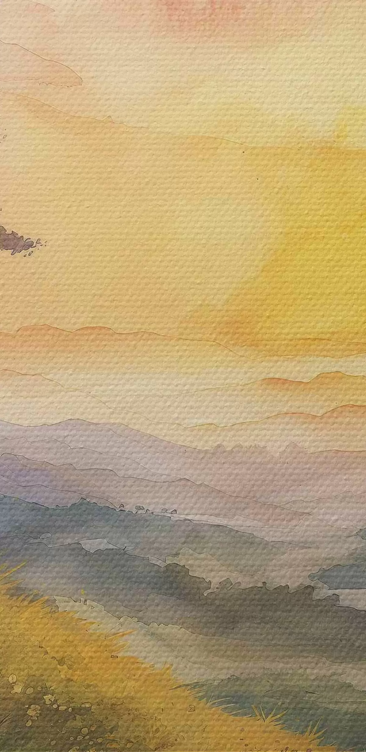 Nuotrauka Pieva su kalvomis ir medžiais, gėlės, akvarelė Nr r40303