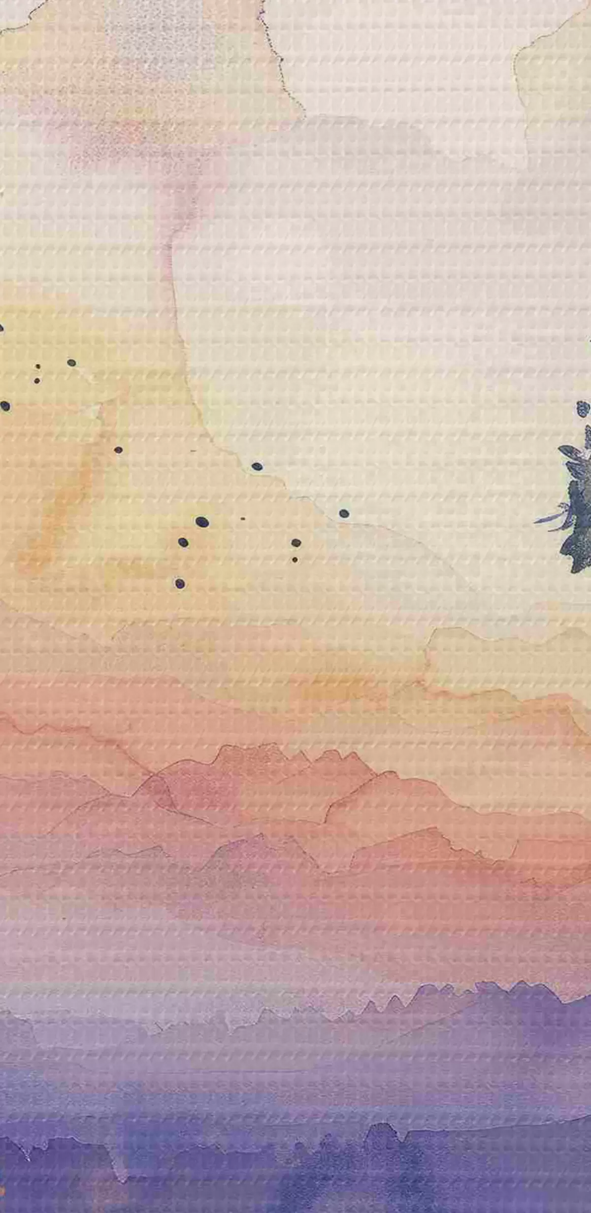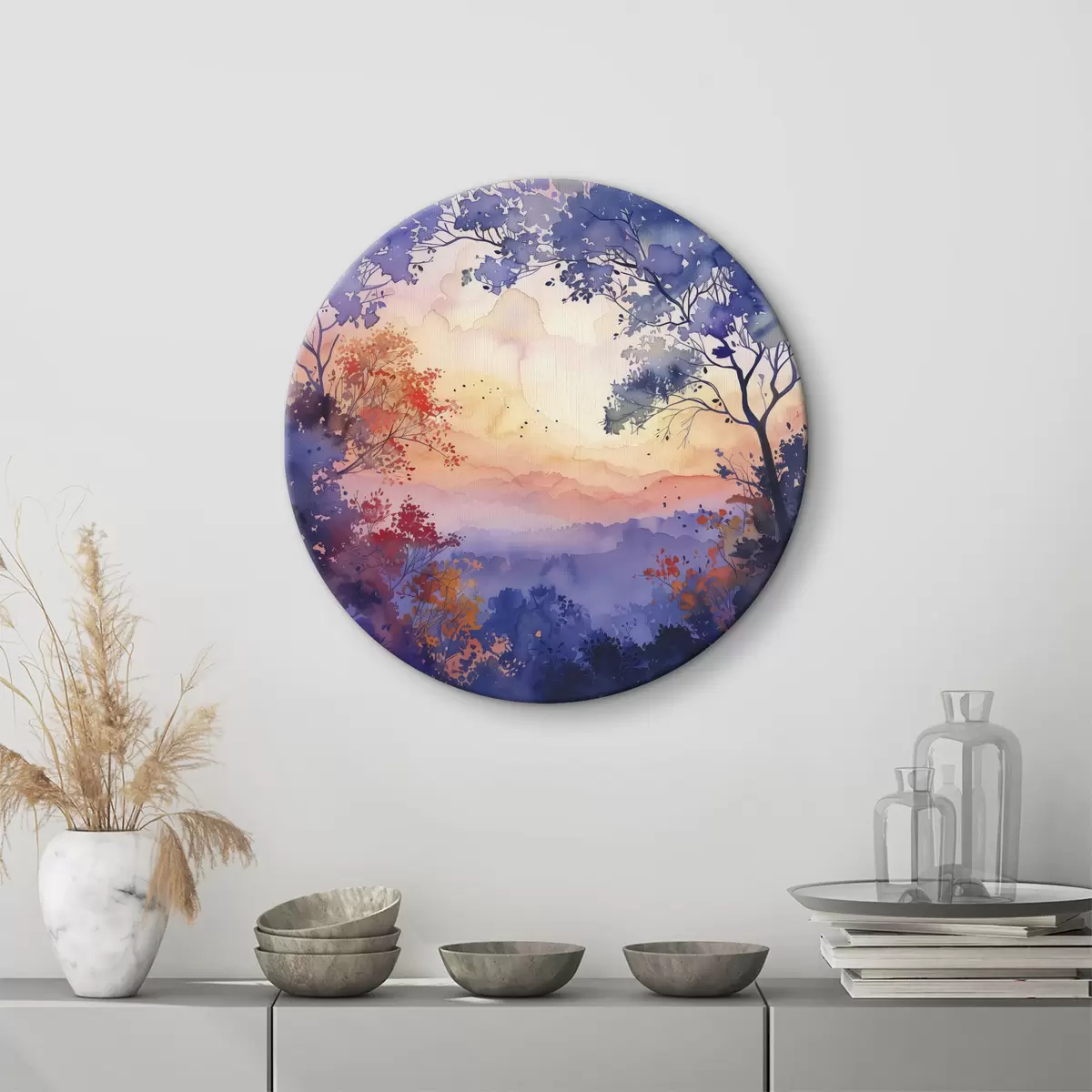 Nuotrauka Akvarelė miškas, saulėlydis, medžių šakos, violetinė ir oranžinė spalvos Nr r40304