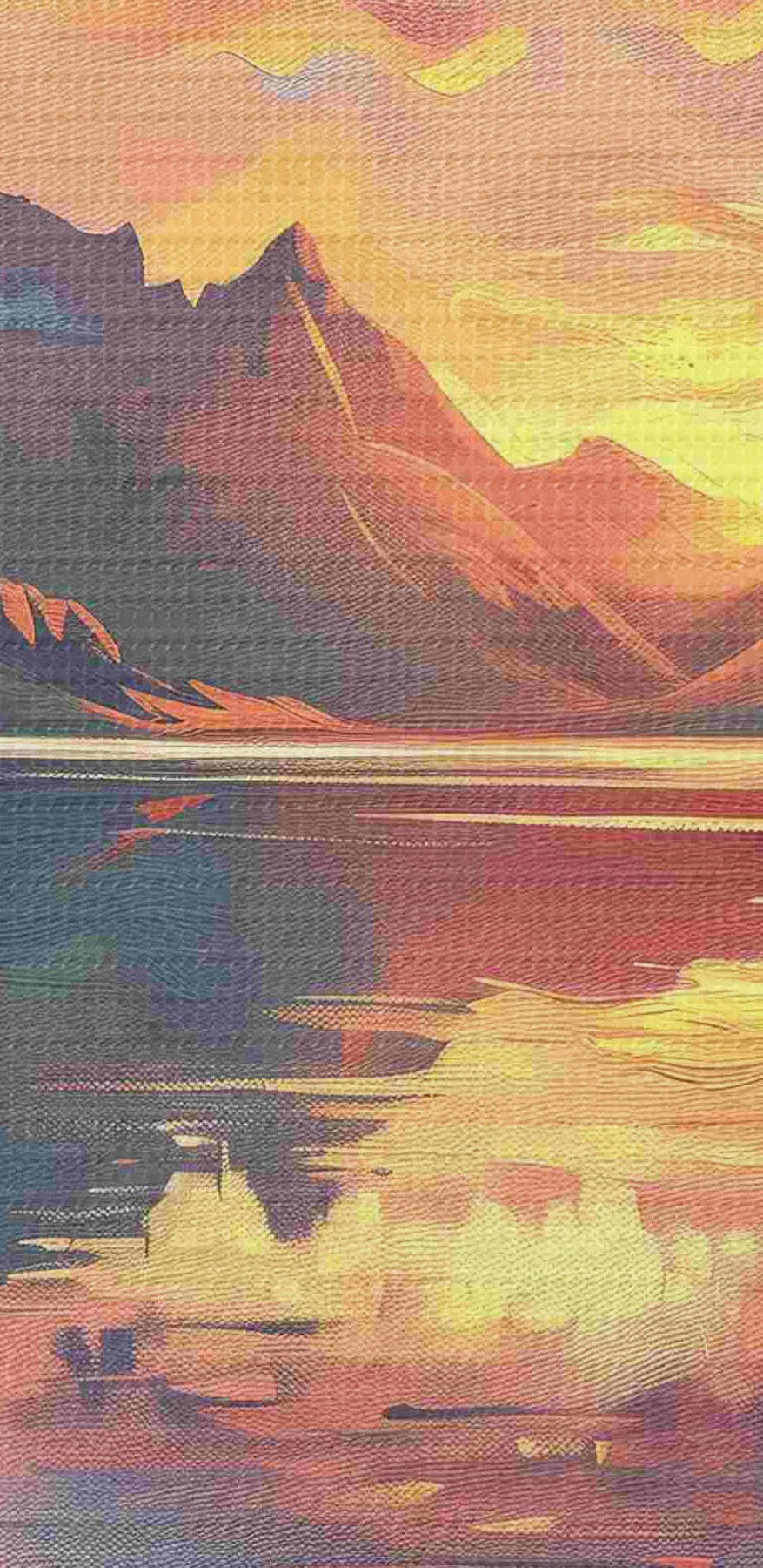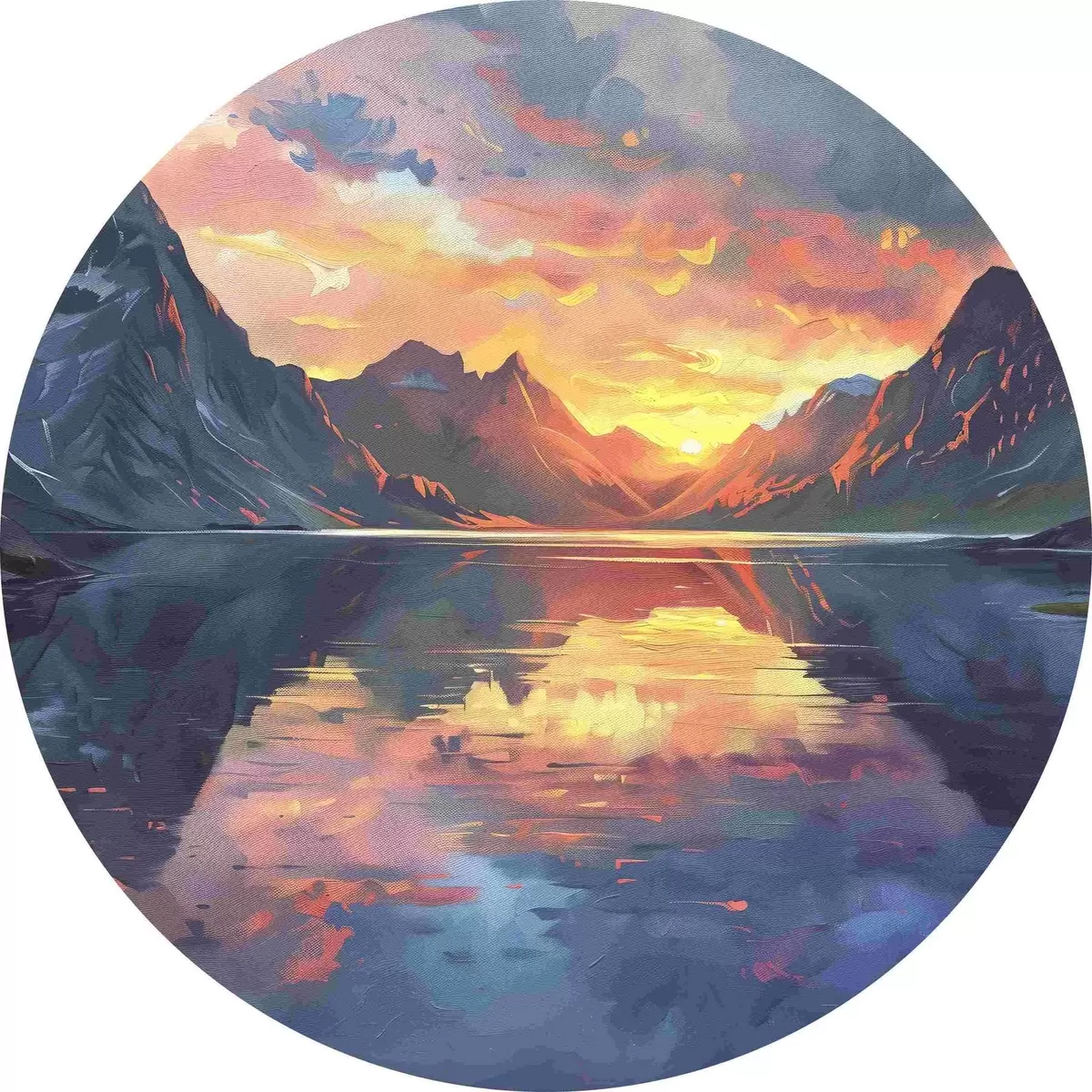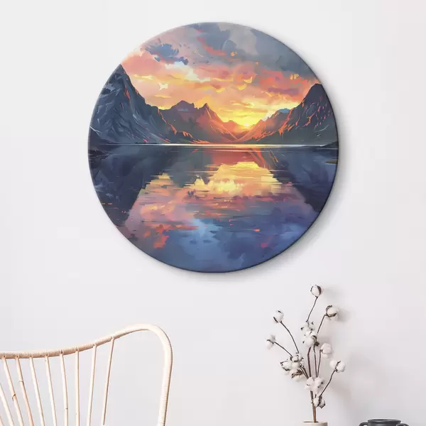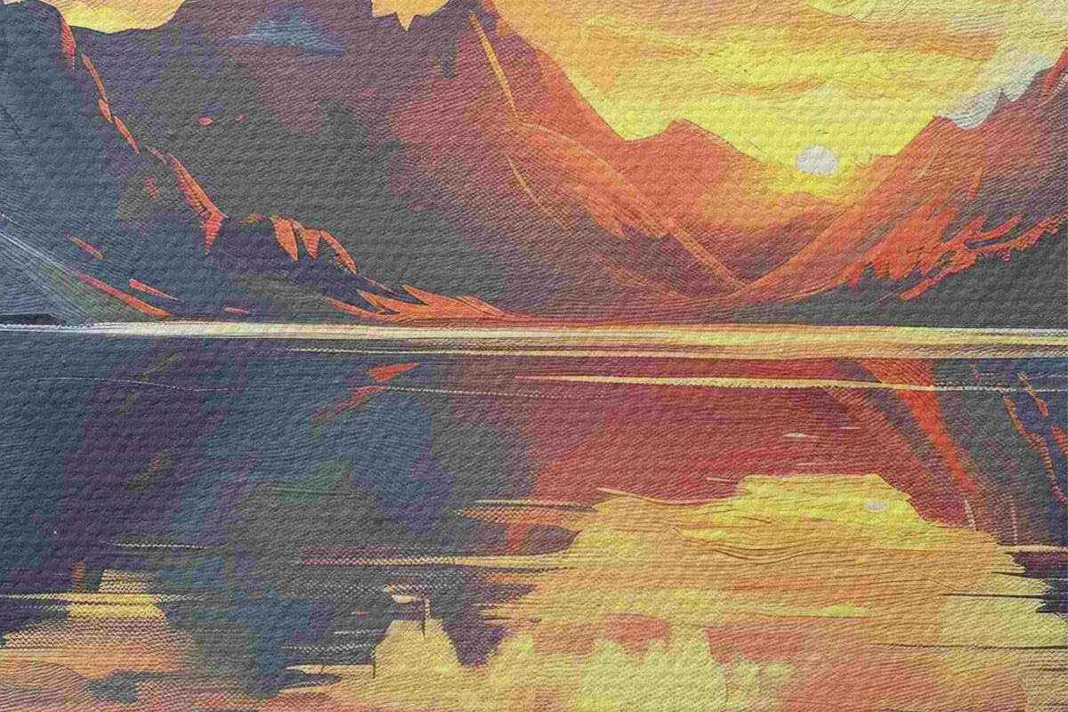 Nuotrauka Saulėlydis kalnuose, upė, gamtos peizažai, akriliniai dažai Nr r40306