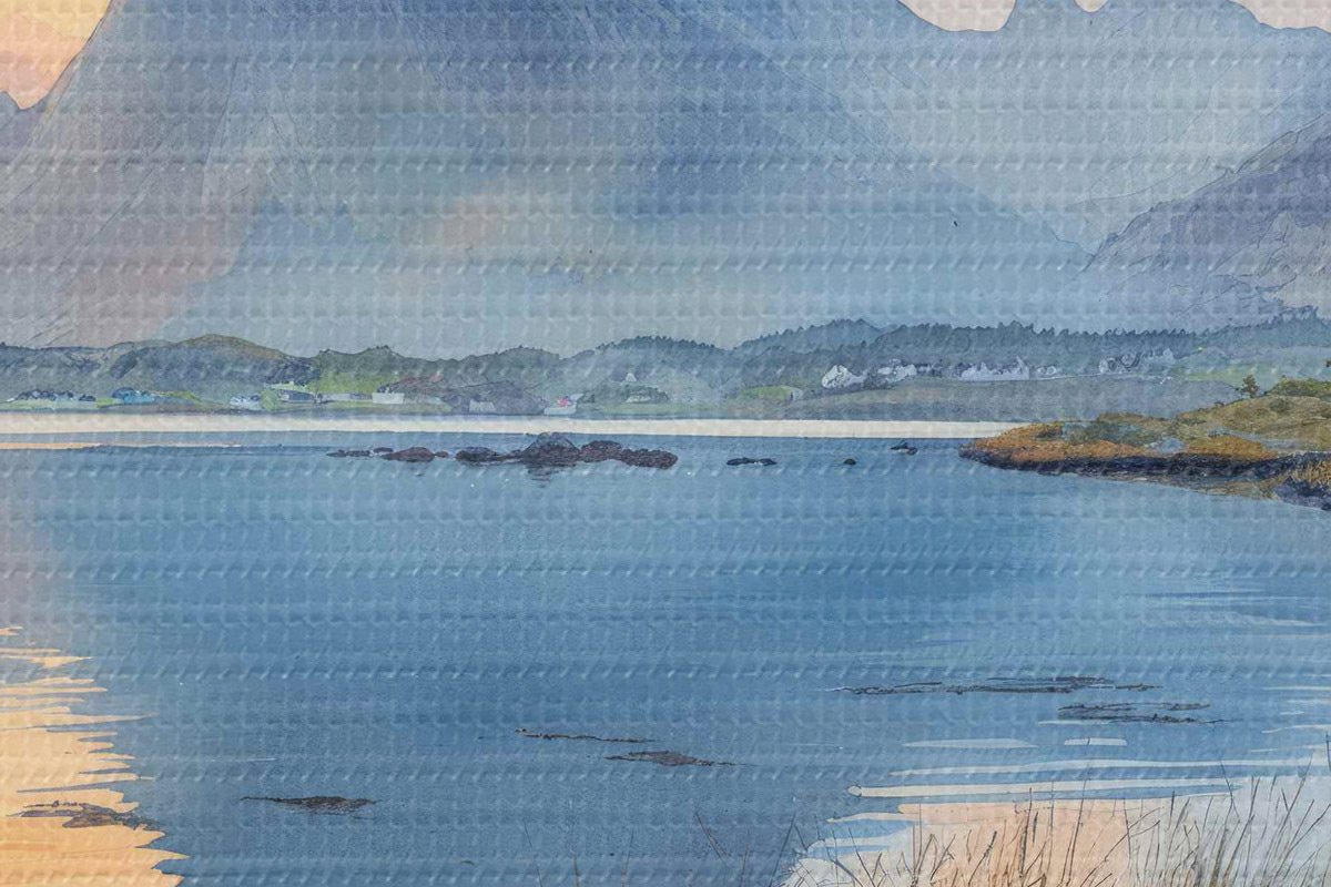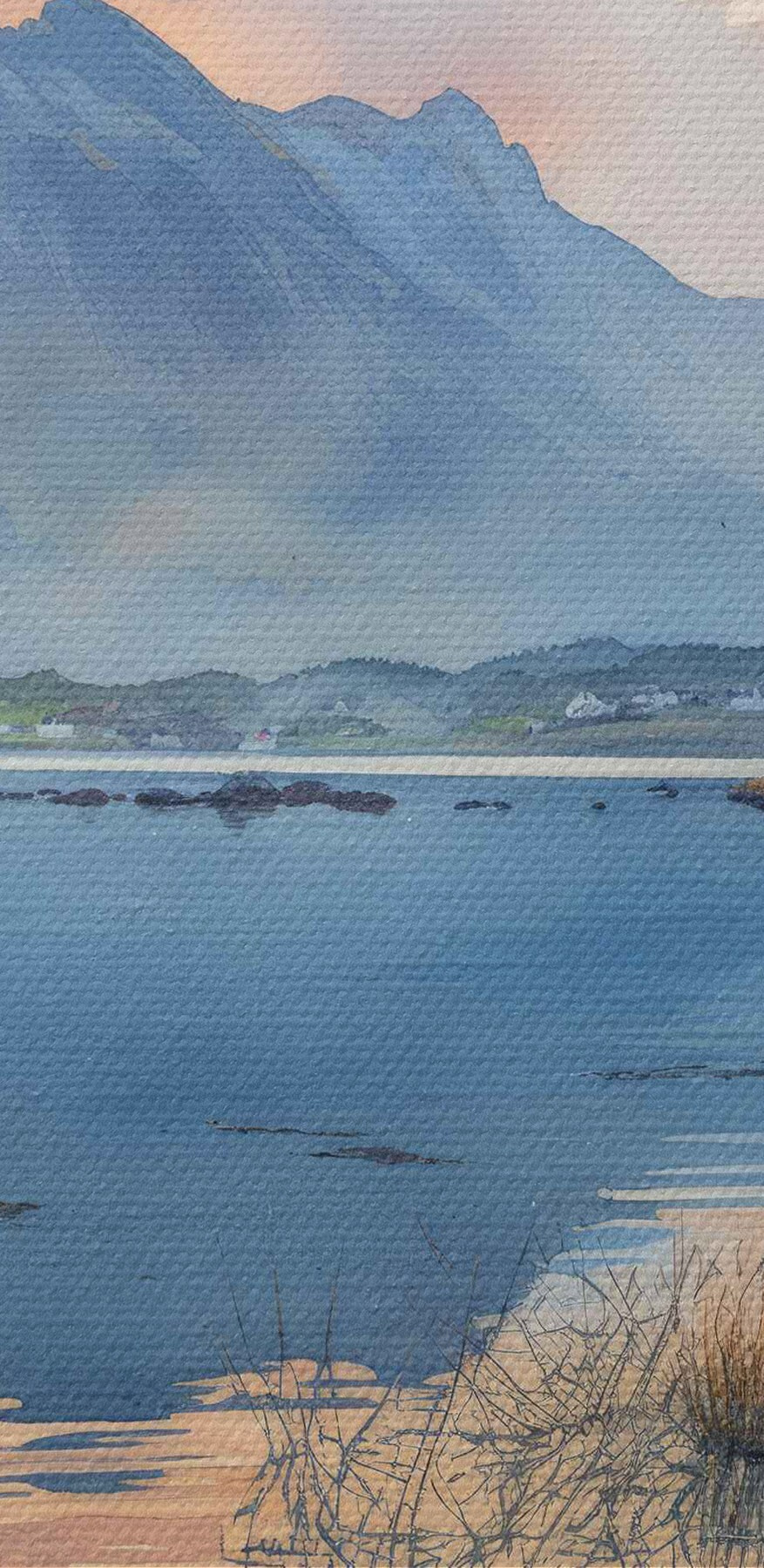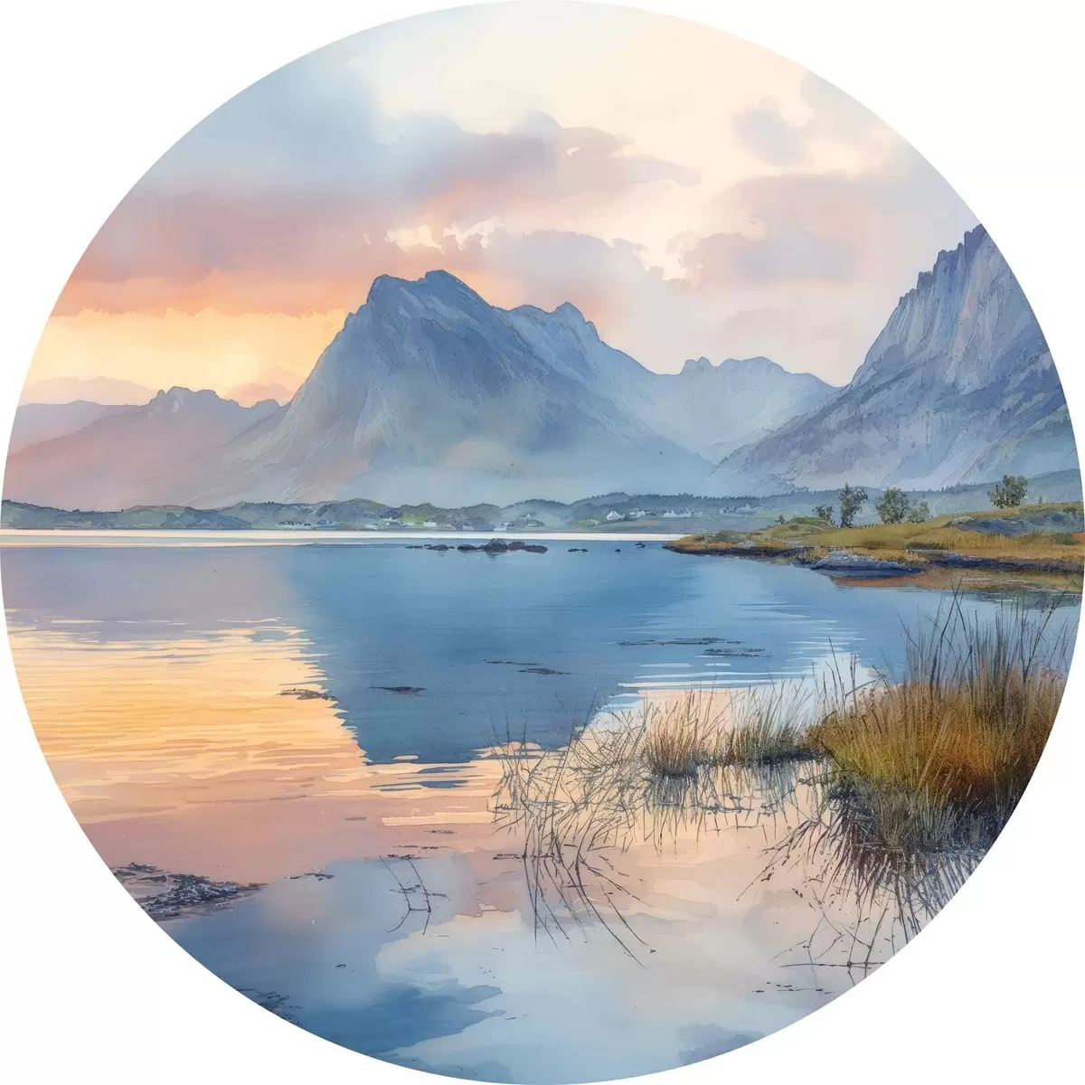 Nuotrauka Rami upė su kalnais, saulėtekis, švelnios spalvos Nr r40307