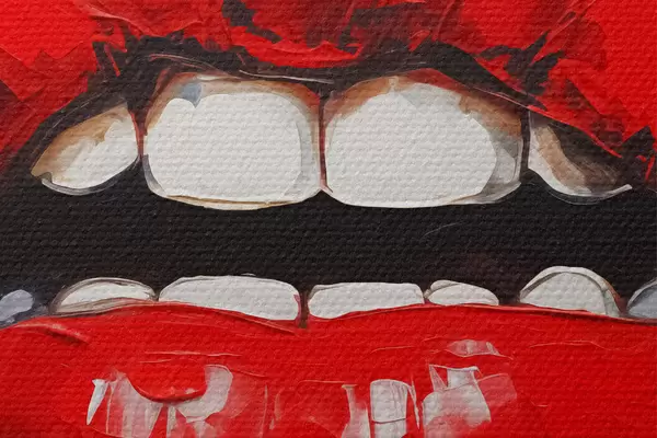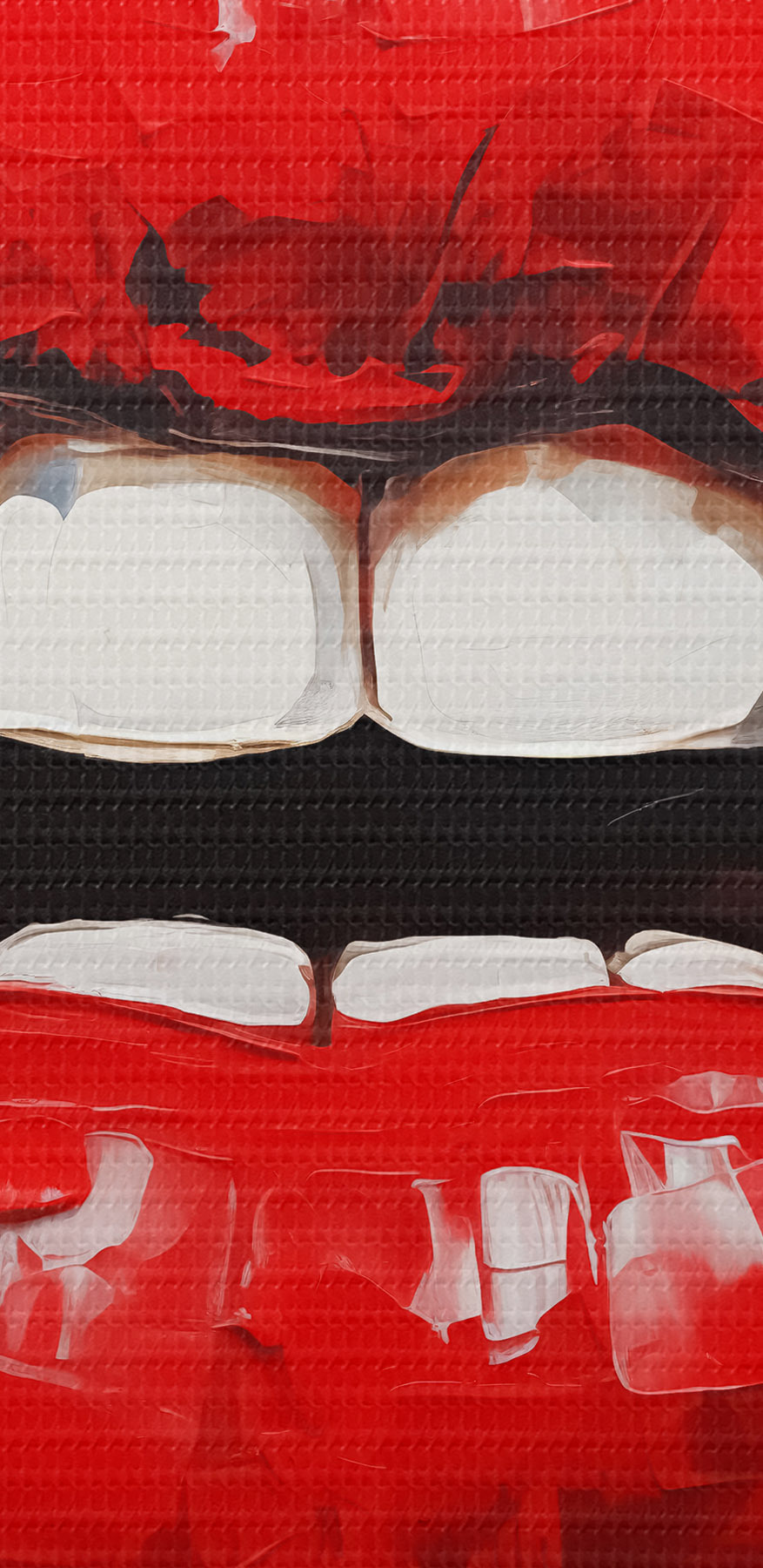 Nuotrauka Abstraktus paveikslas raudonos lūpos balti dantys Nr r40319
