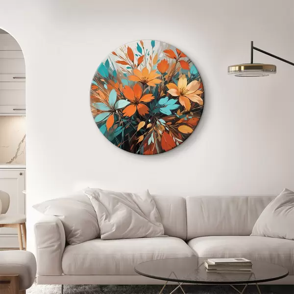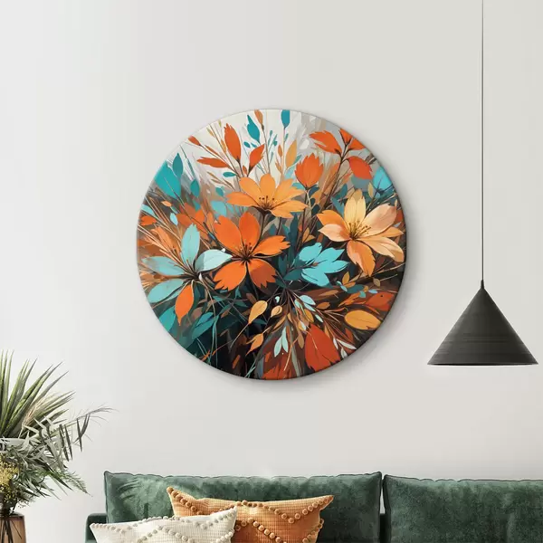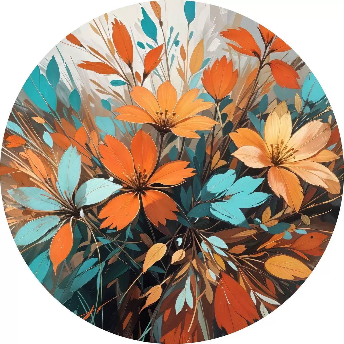 Nuotrauka Ryški spalvingų rudeninių lapų puokštė oranžinių, geltonų ir turkio atspalvių Nr r40392