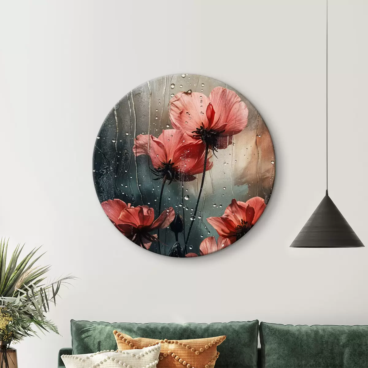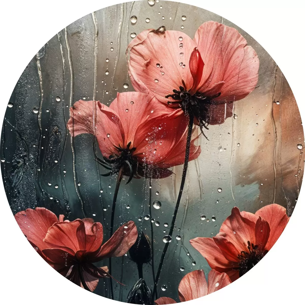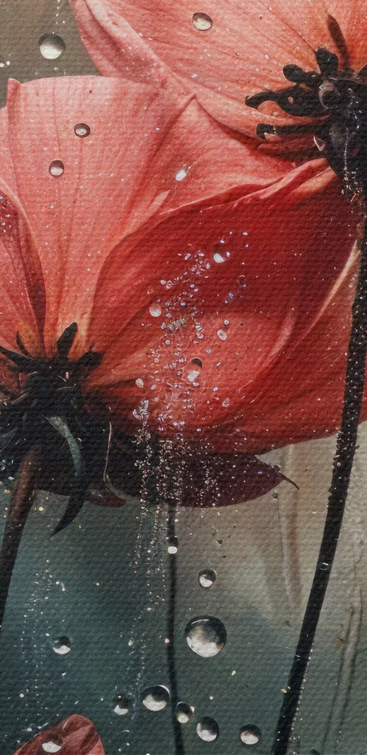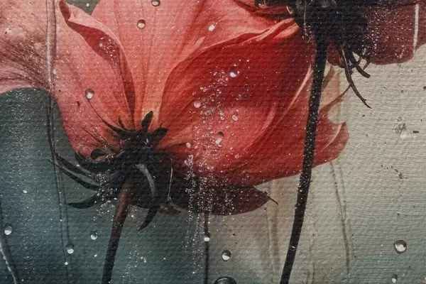 Nuotrauka Raudonos gėlės su vandens lašeliais neryškiame fone Nr r40412