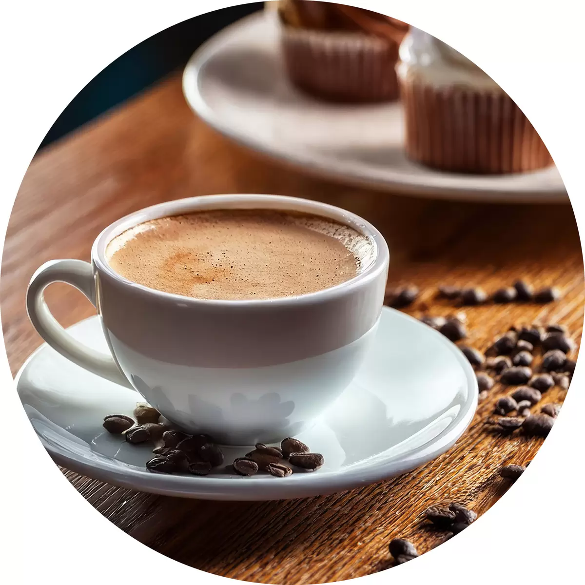 Nuotrauka kavos puodelis, kavos pupelės, pyragaičiai, natiurmortas Nr r40417