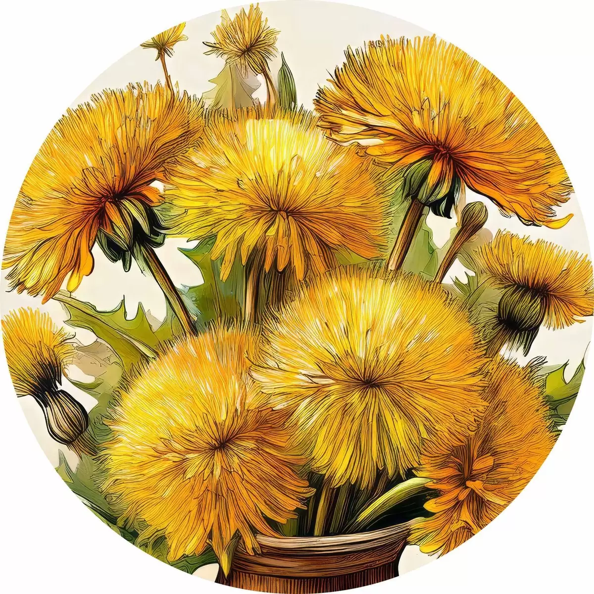 Nuotrauka kiaulpienės, kiaulpienių puokštė vazone, geltonos kiaulpienės Nr r40418