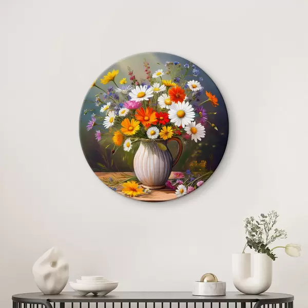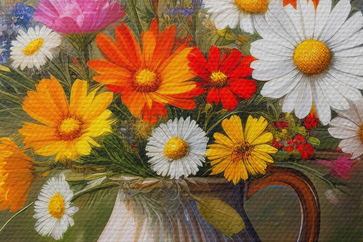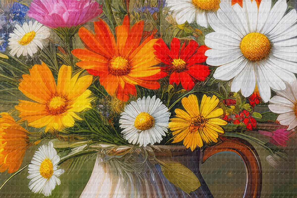 Nuotrauka ryški puokštė, laukinės gėlės, gėlės vazoje Nr r40419