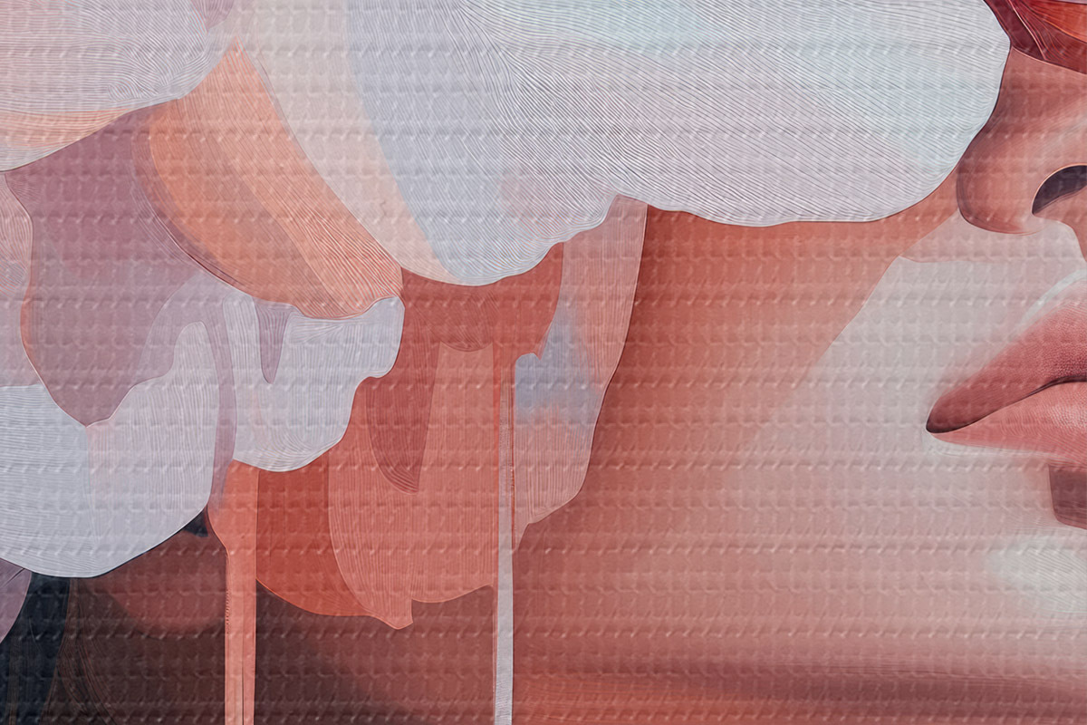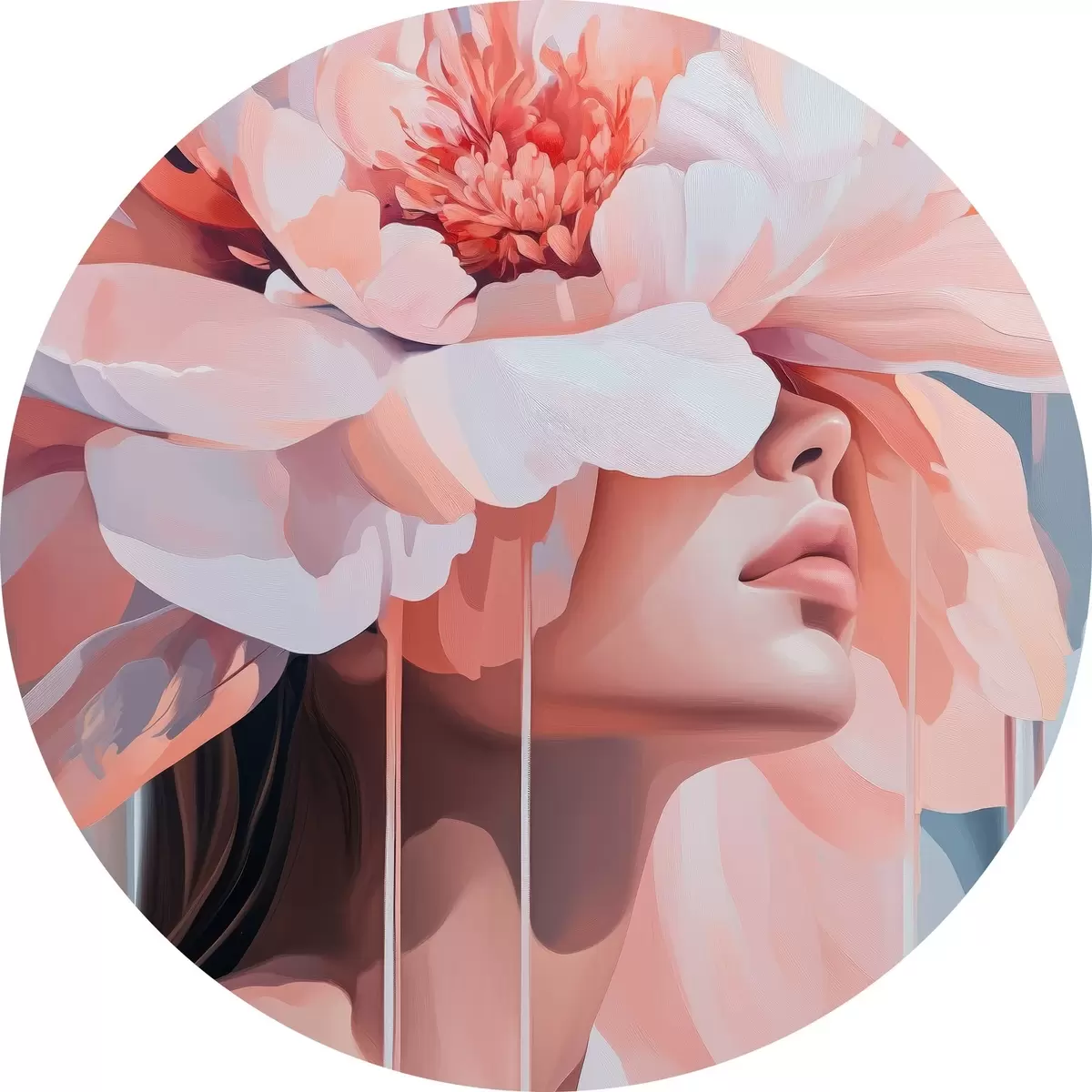 Nuotrauka Moters portretas su didele rožine gėle ant galvos Nr r40430