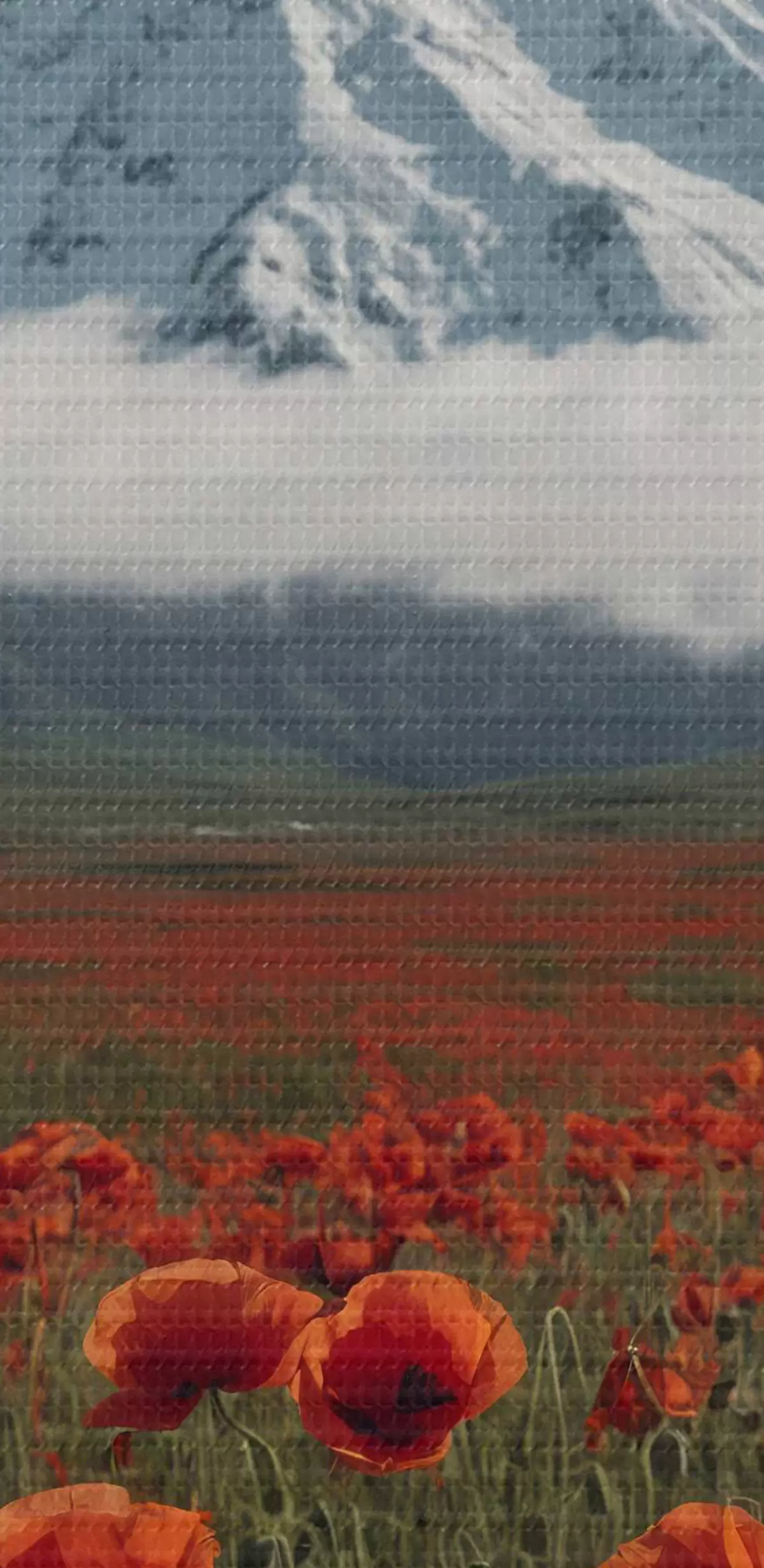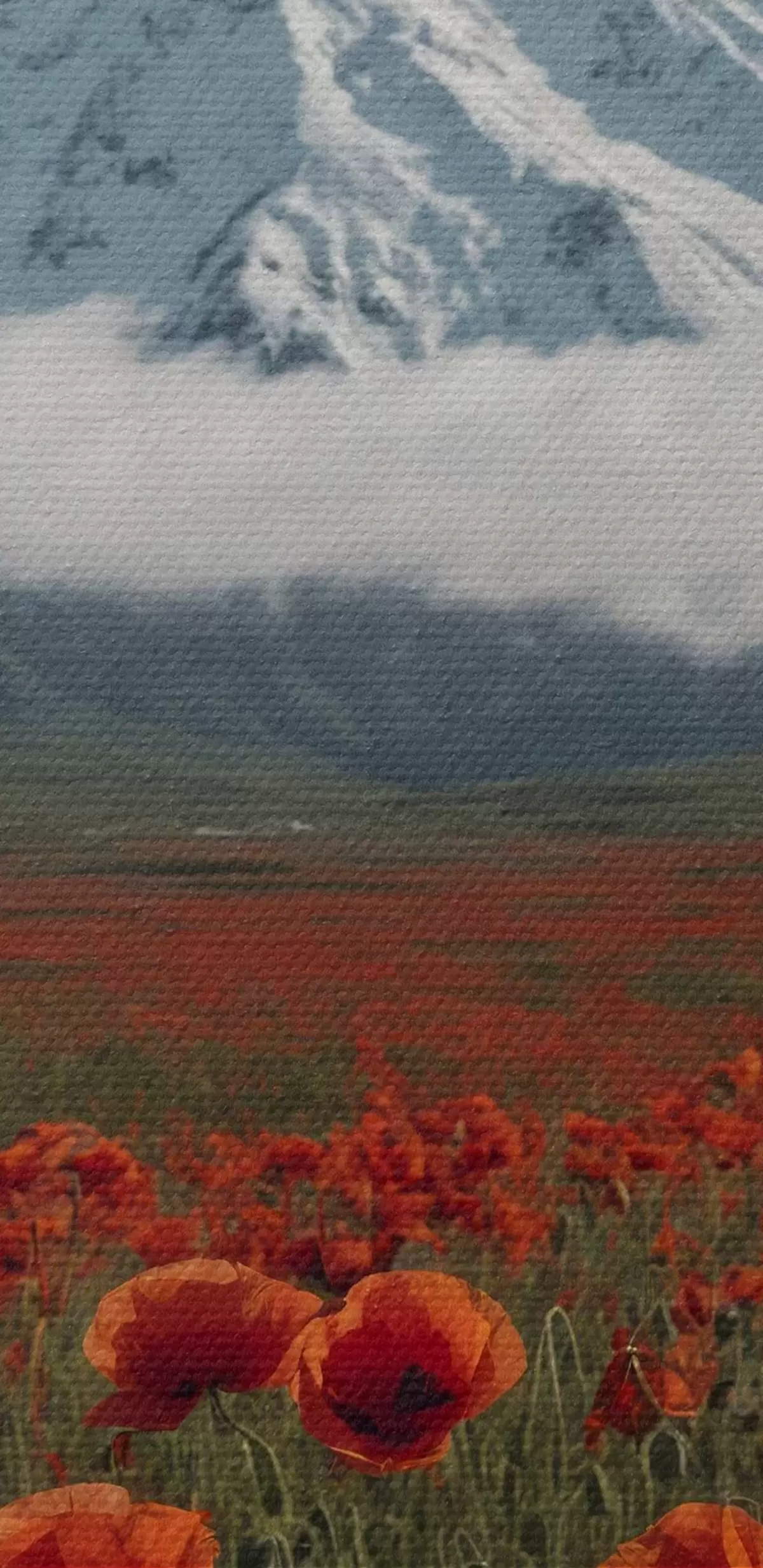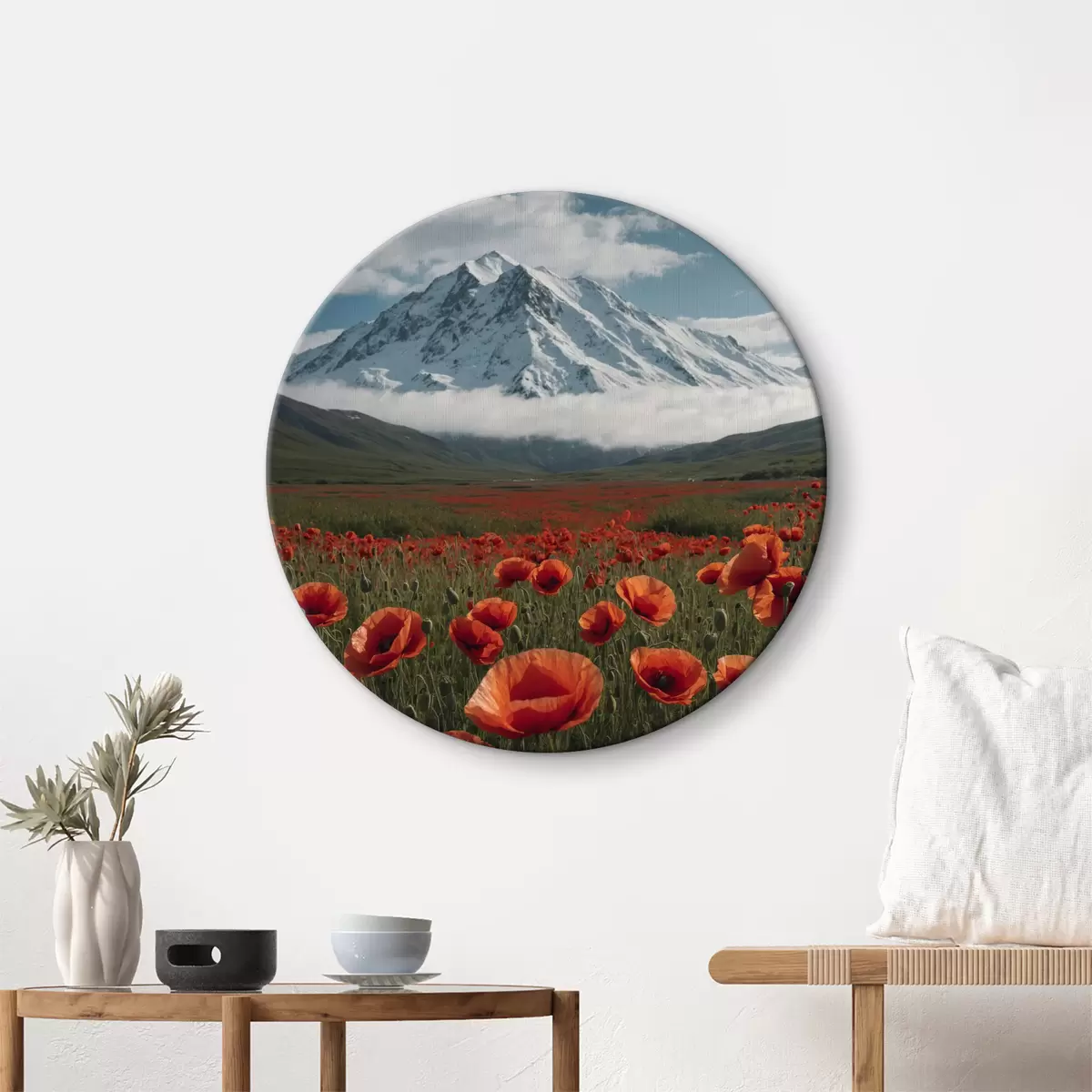 Nuotrauka Aguonų laukas snieguotų kalnų fone Nr r40469