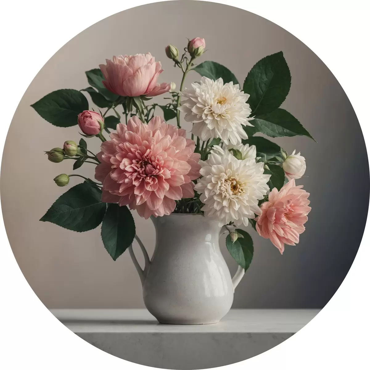 Nuotrauka Gėlės baltoje vazoje ant stalo Nr r40472