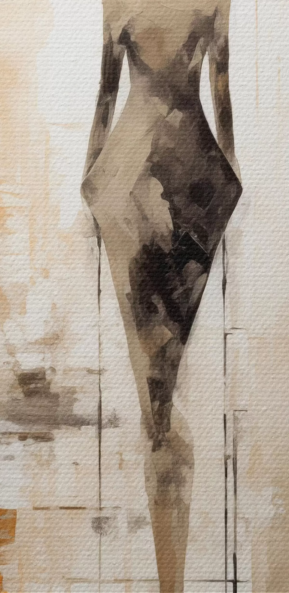 Nuotrauka Abstraktus moters siluetas, nubrozdinimų ir teptuko potėpių imitacija Nr r40485