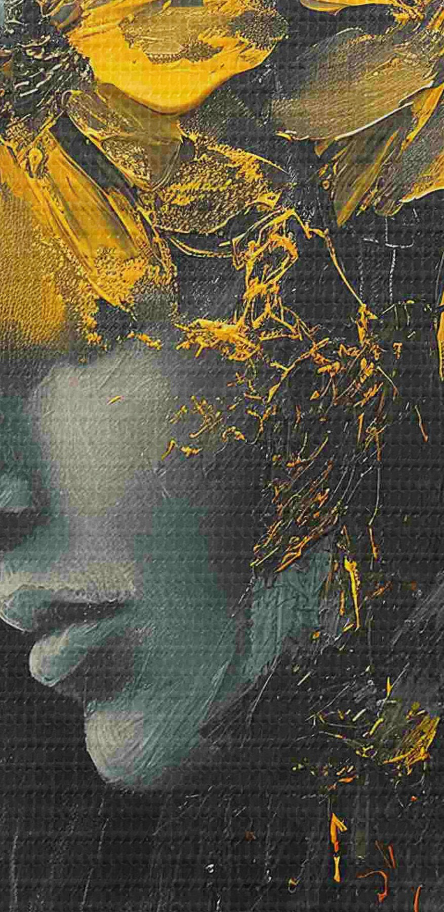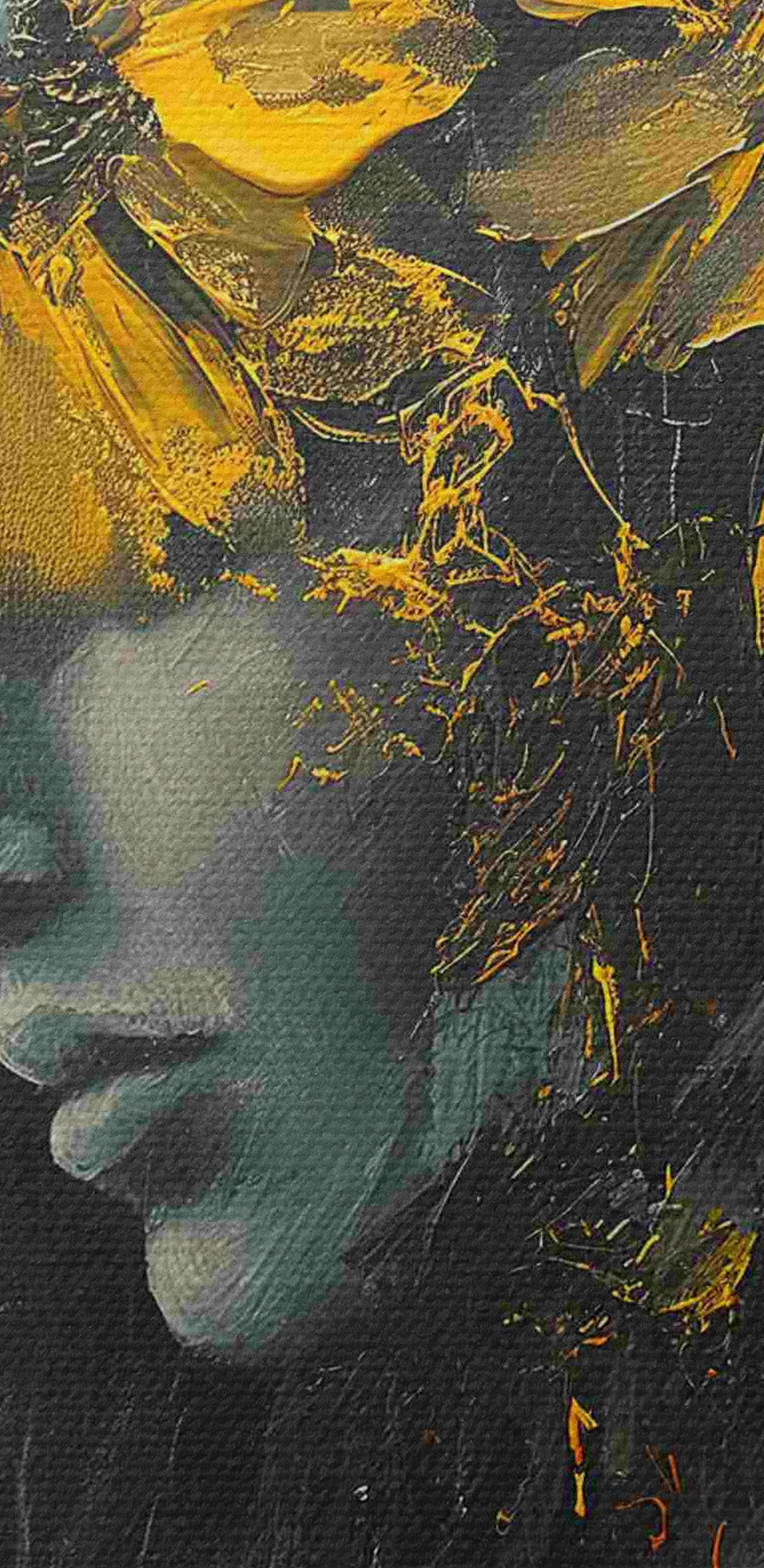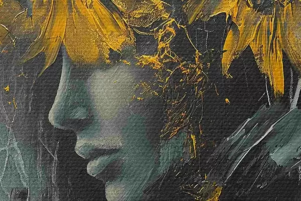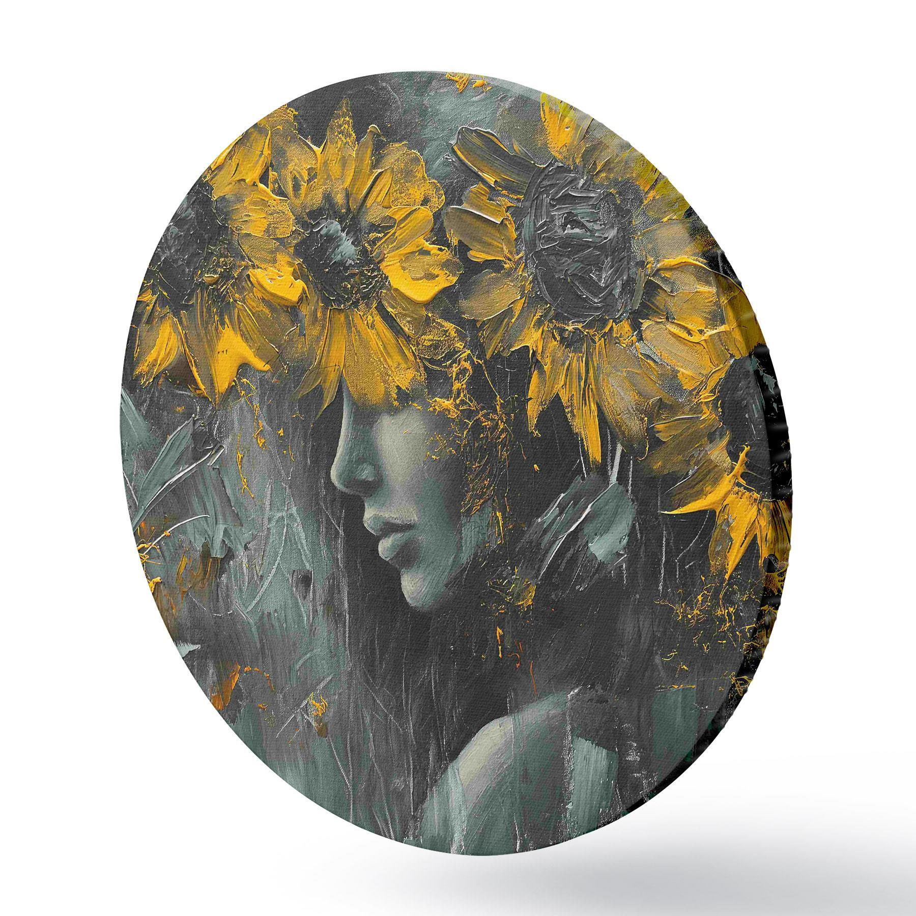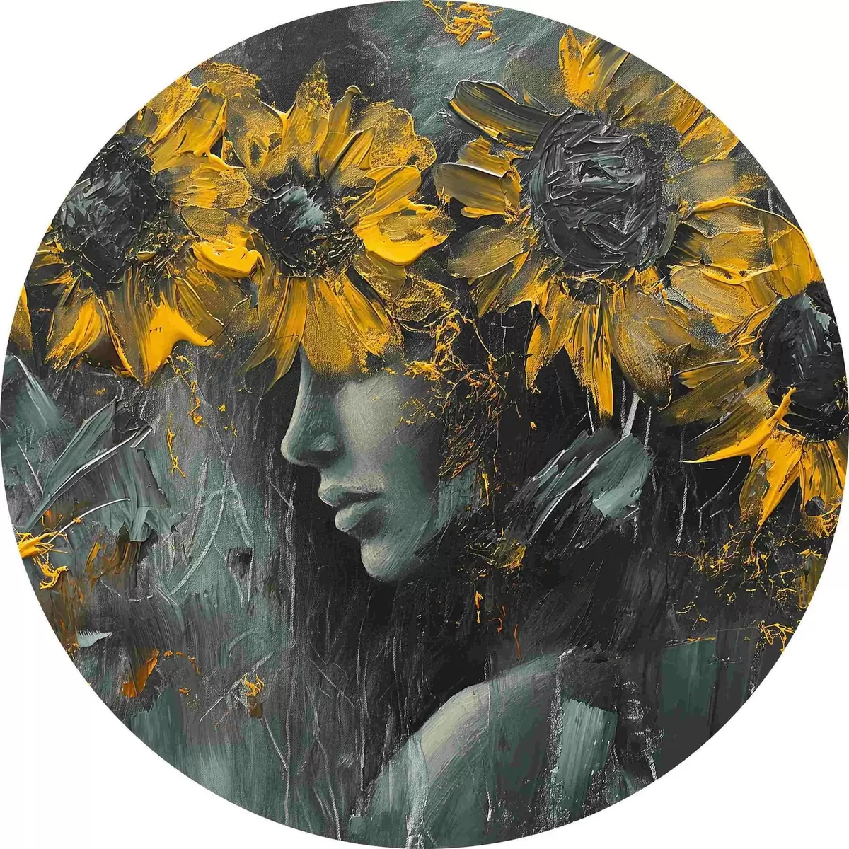 Nuotrauka Abstraktūs saulėgrąžų žiedai, dengiantys mergaitės veidą Nr r40501