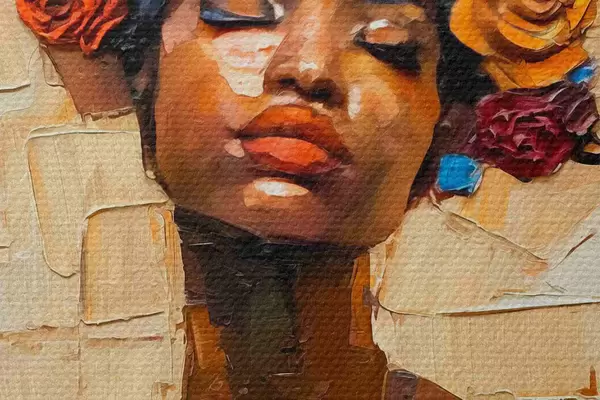 Nuotrauka Gražus Afrikos modelis su gėlėmis Nr r40508