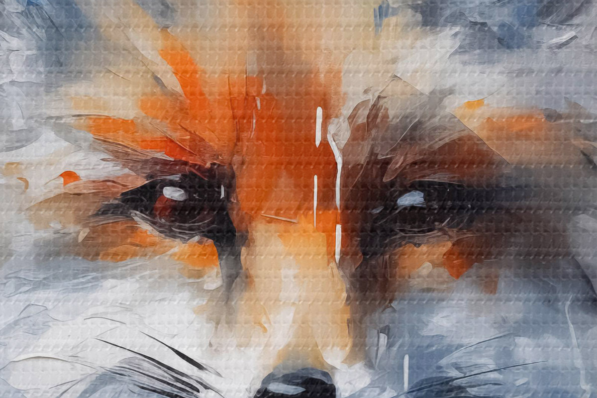Nuotrauka Abstraktus lapės portretas su mėlynais dažų purslais Nr r40524