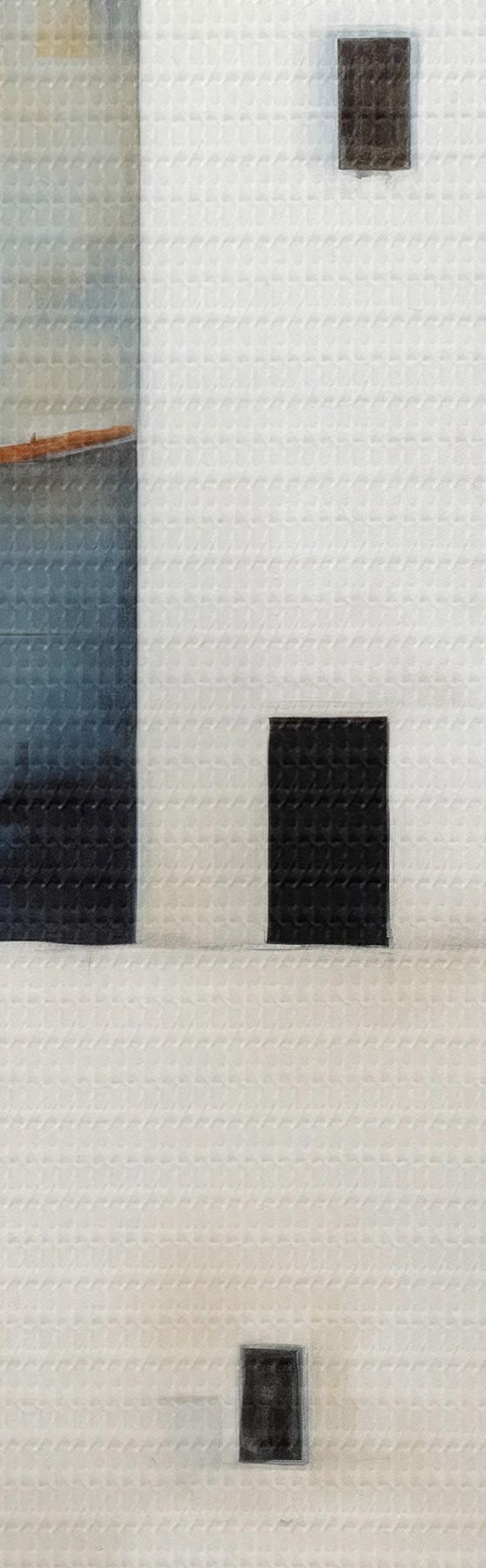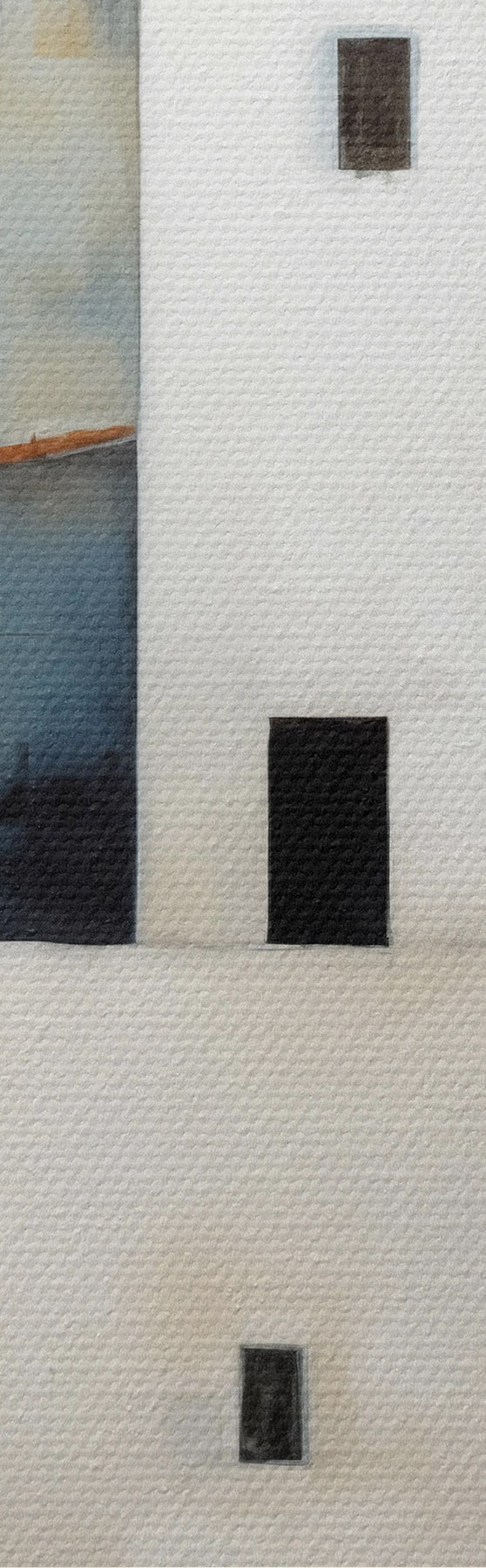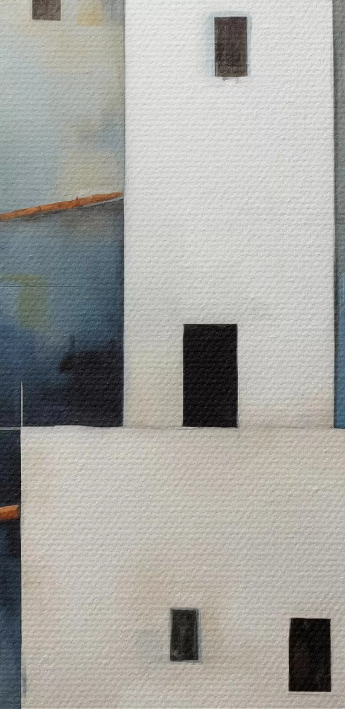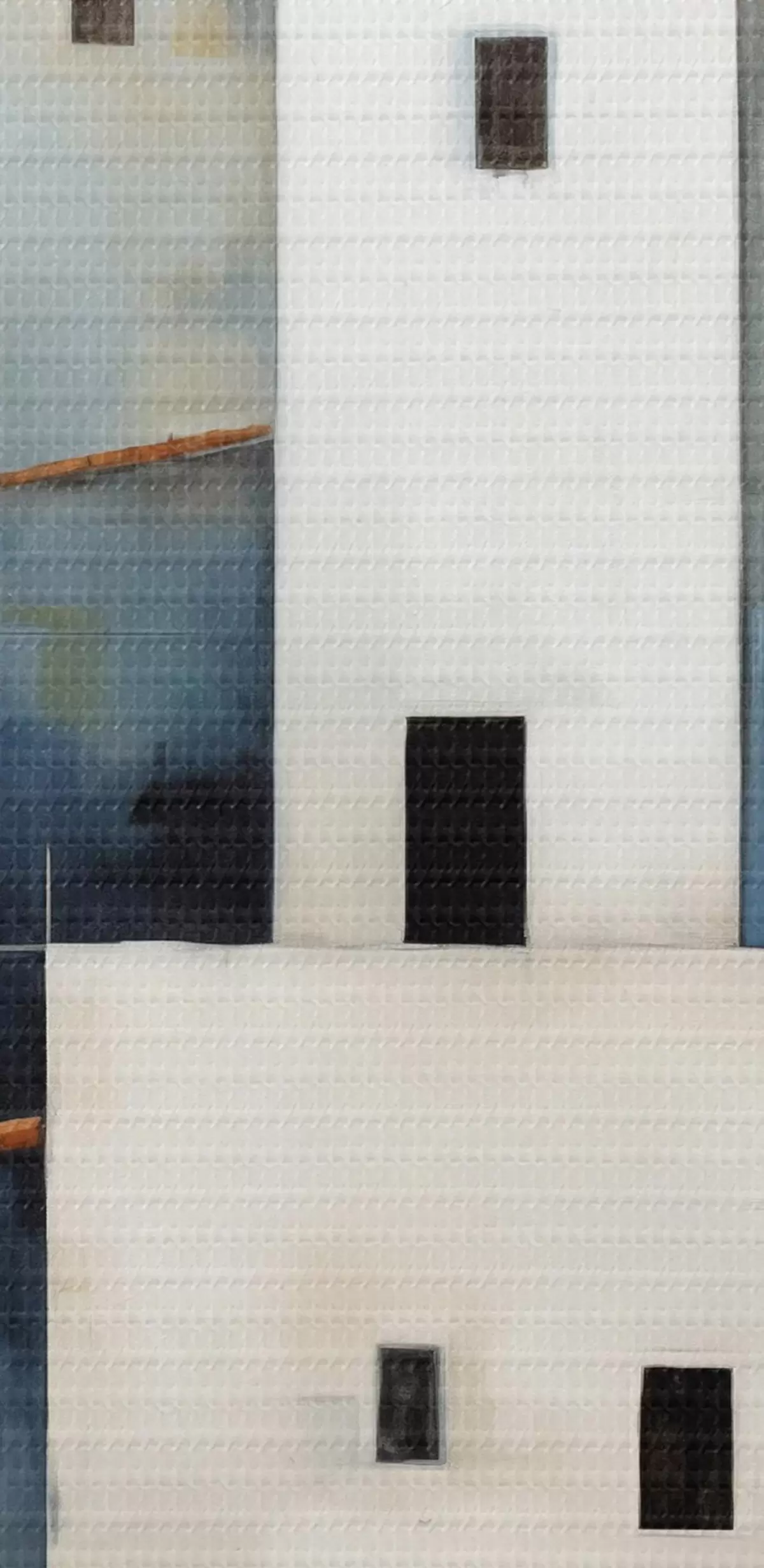 Nuotrauka Balti stilizuoti abstraktūs namai, raudona, oranžinė, geltona, mėlyna spalvos Nr r40531