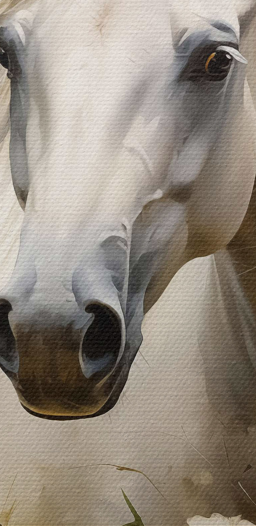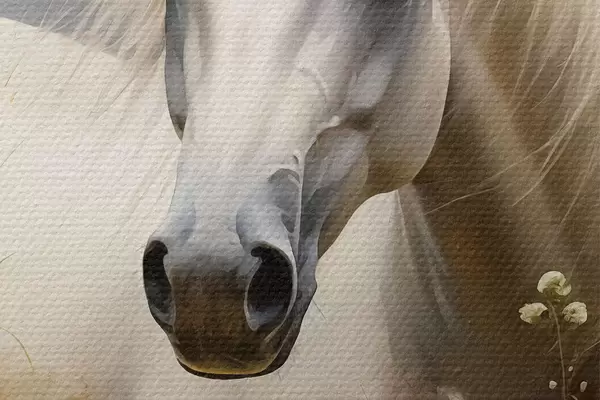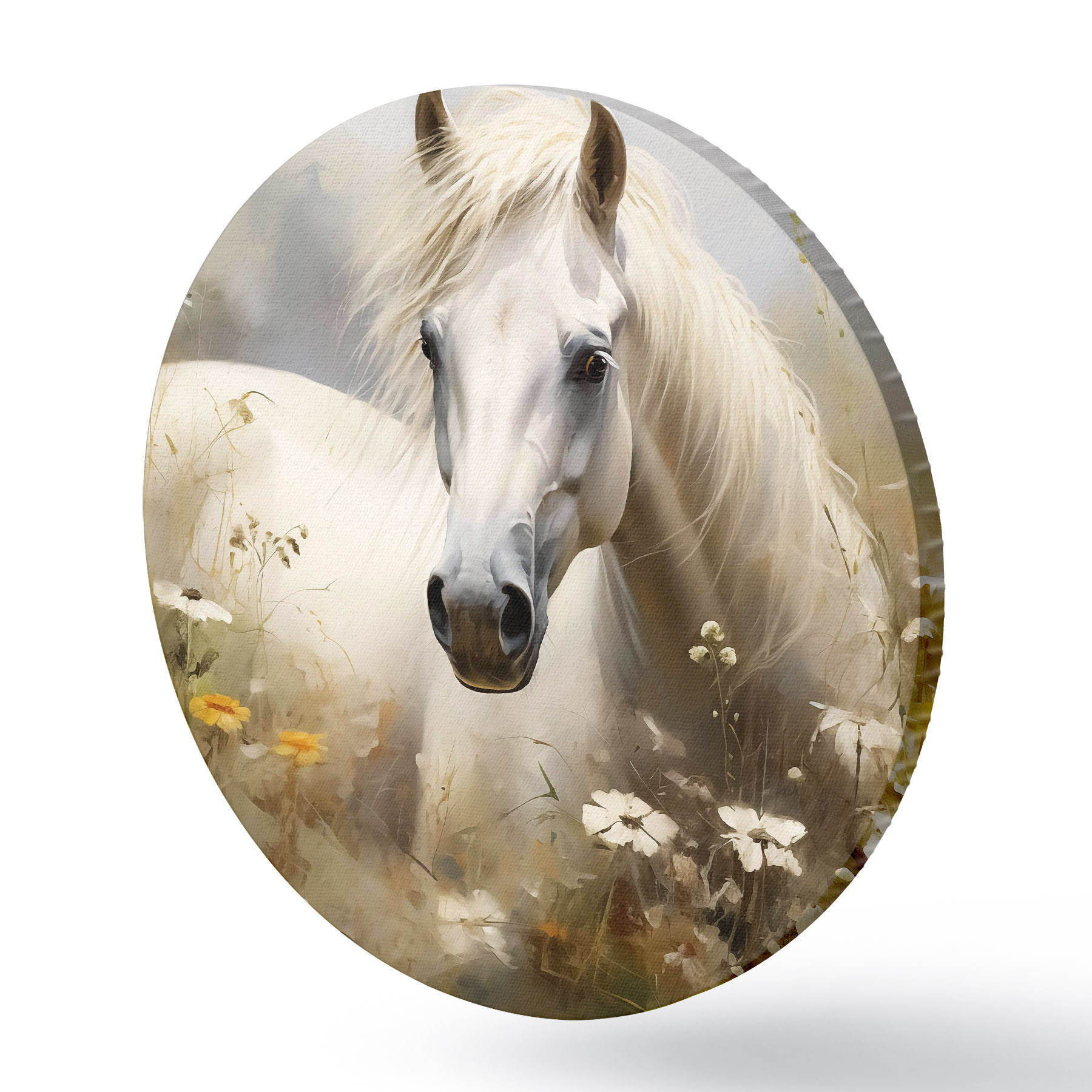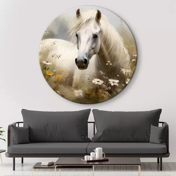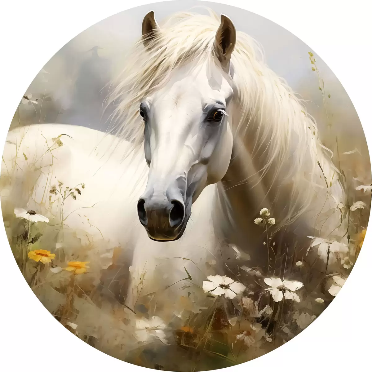 Nuotrauka Baltas arklys žolėje tarp ramunėlių Nr r40533