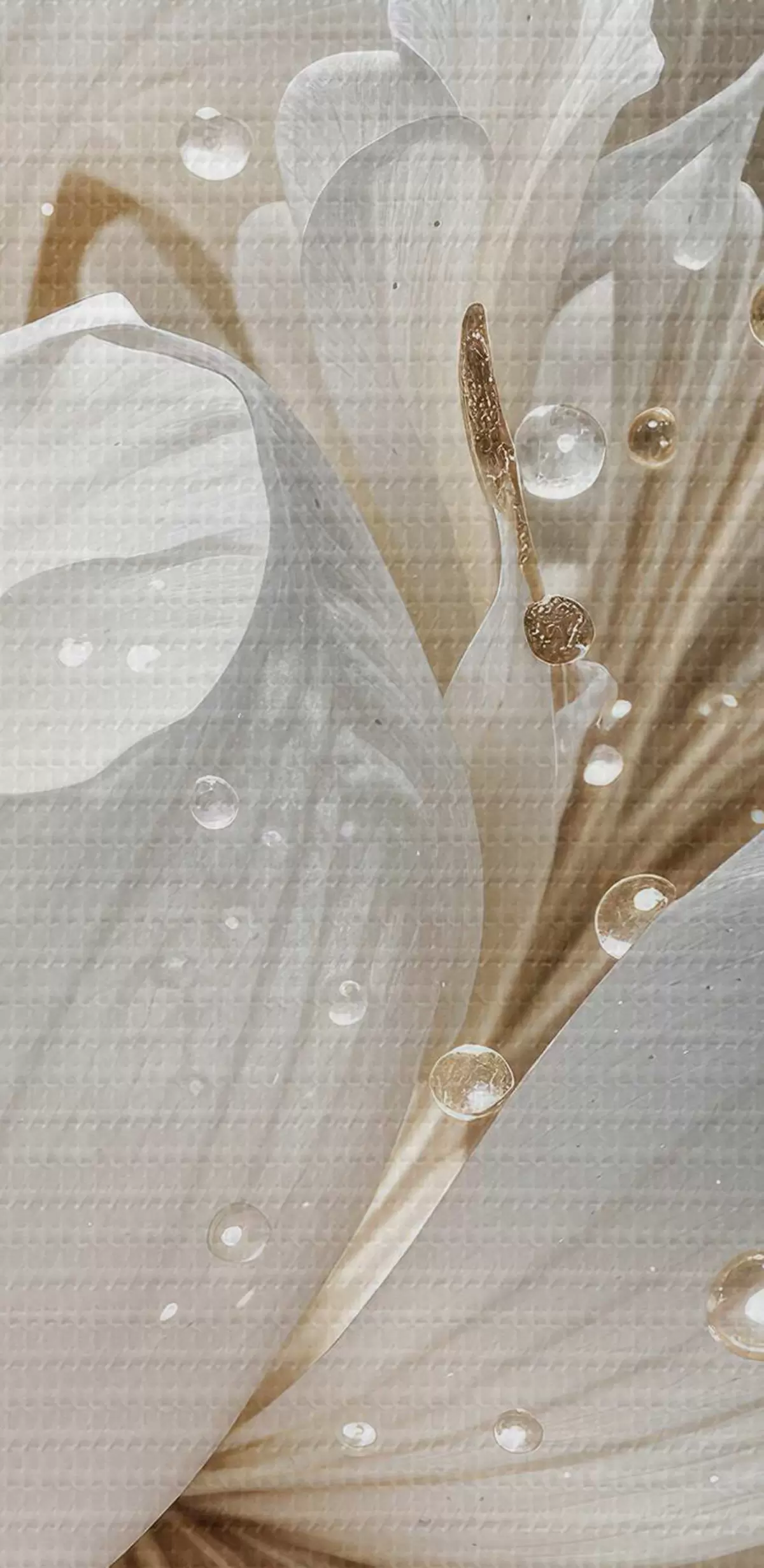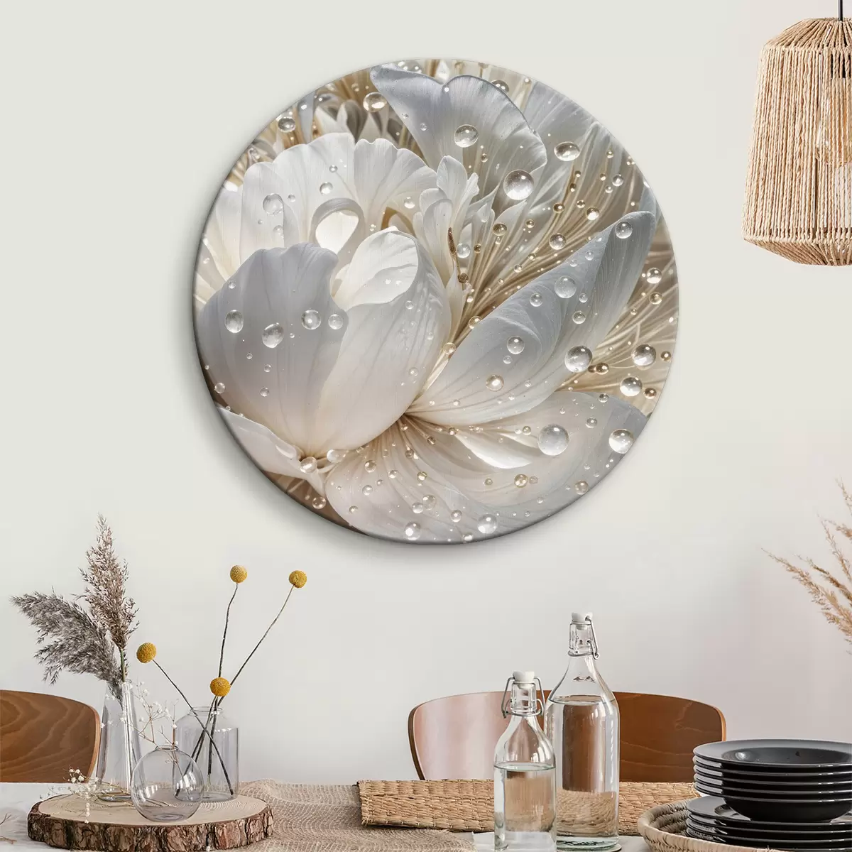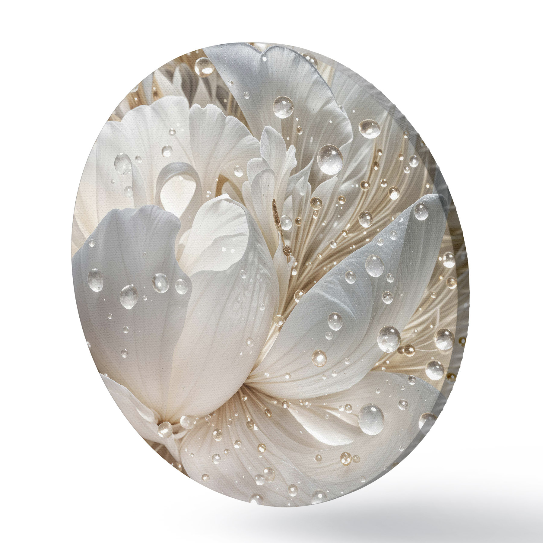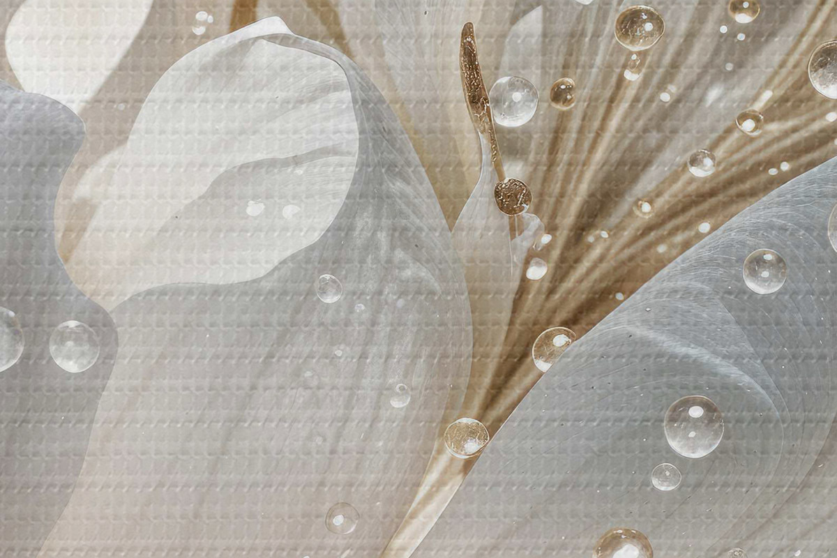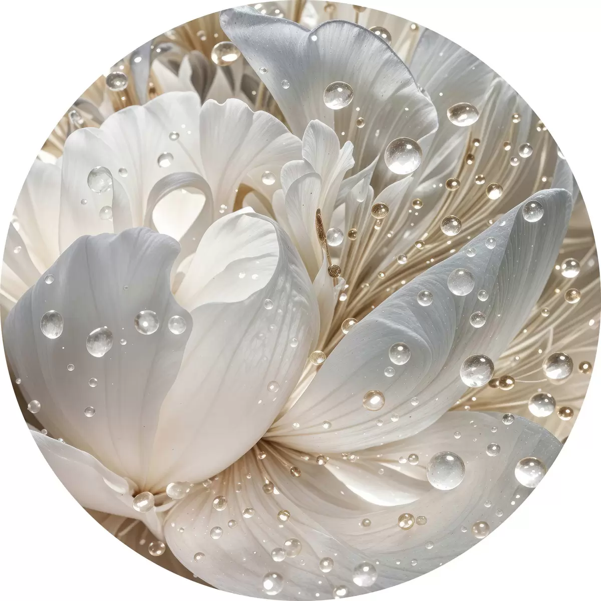 Nuotrauka Balto bijūno žiedo su vandens lašeliais ant žiedlapių stambiu planu neryškiame fone Nr r40539
