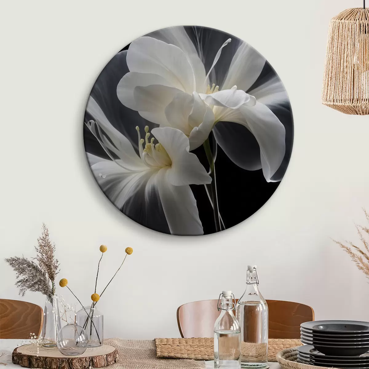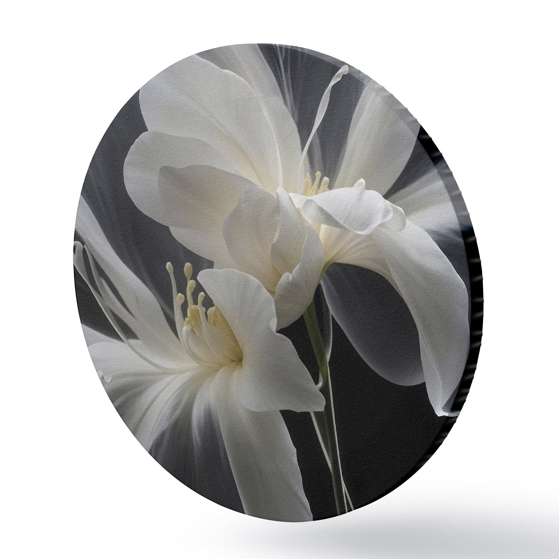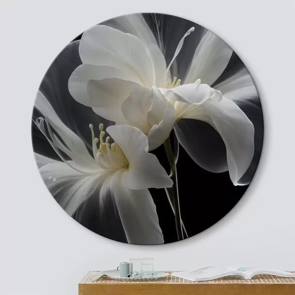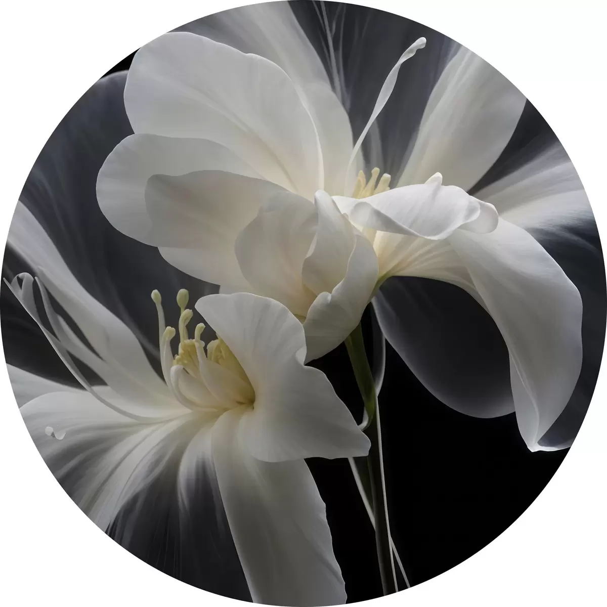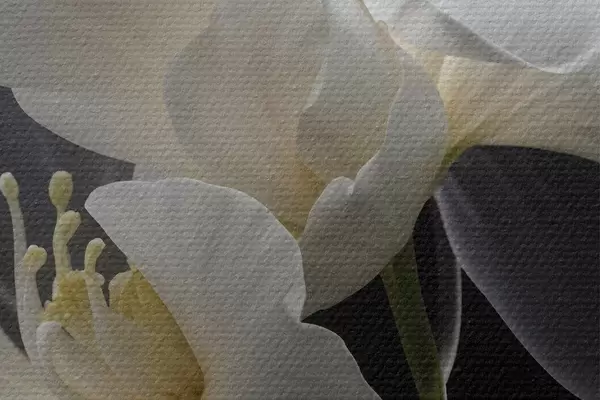 Nuotrauka Dvi baltos gėlės su švelniais žiedlapiais ir geltonais centrais tamsiame fone stambiu planu Nr r40549