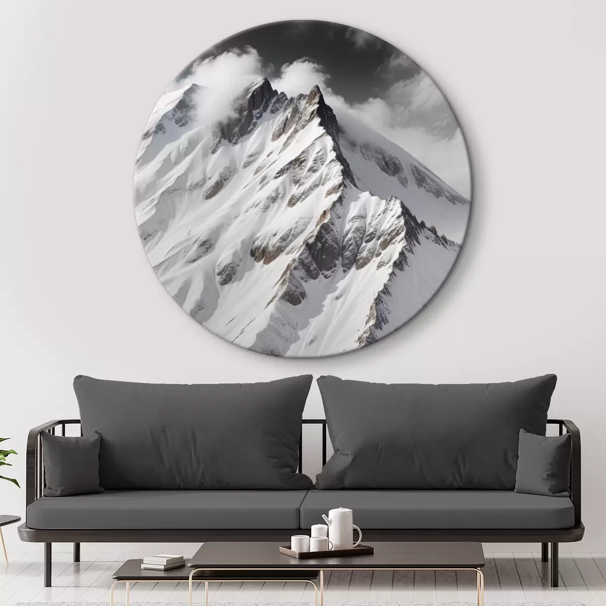 Nuotrauka Snieguotos juodai baltos kalnų viršūnės debesuotame, dramatiškame kraštovaizdyje Nr r40553