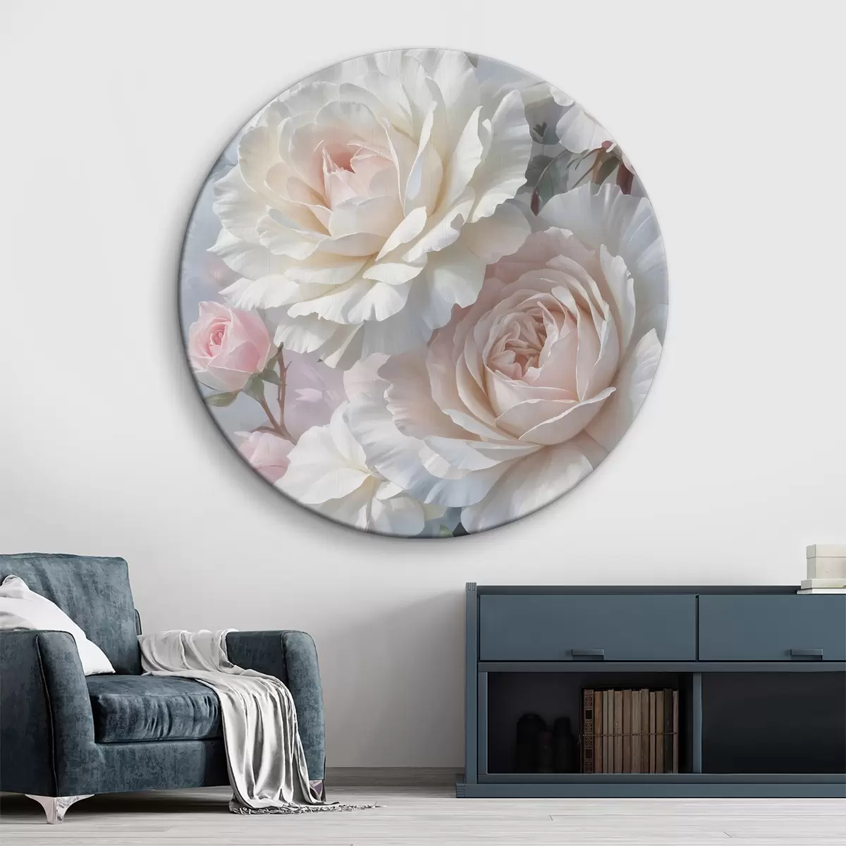 Apvalūs paveikslai Minkštos, švelnios baltos ir rausvos rožės su neryškiu fonu r40562