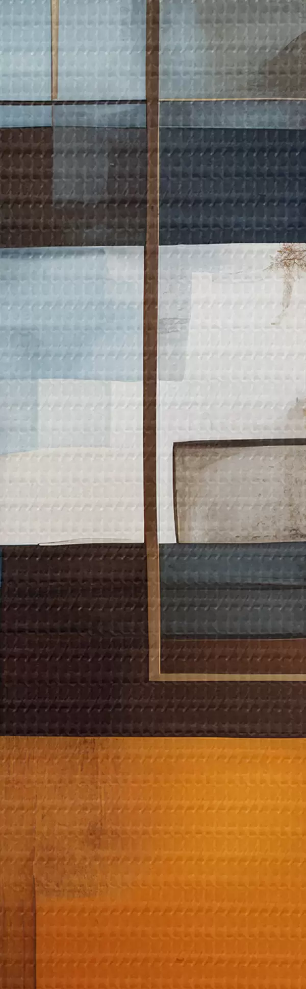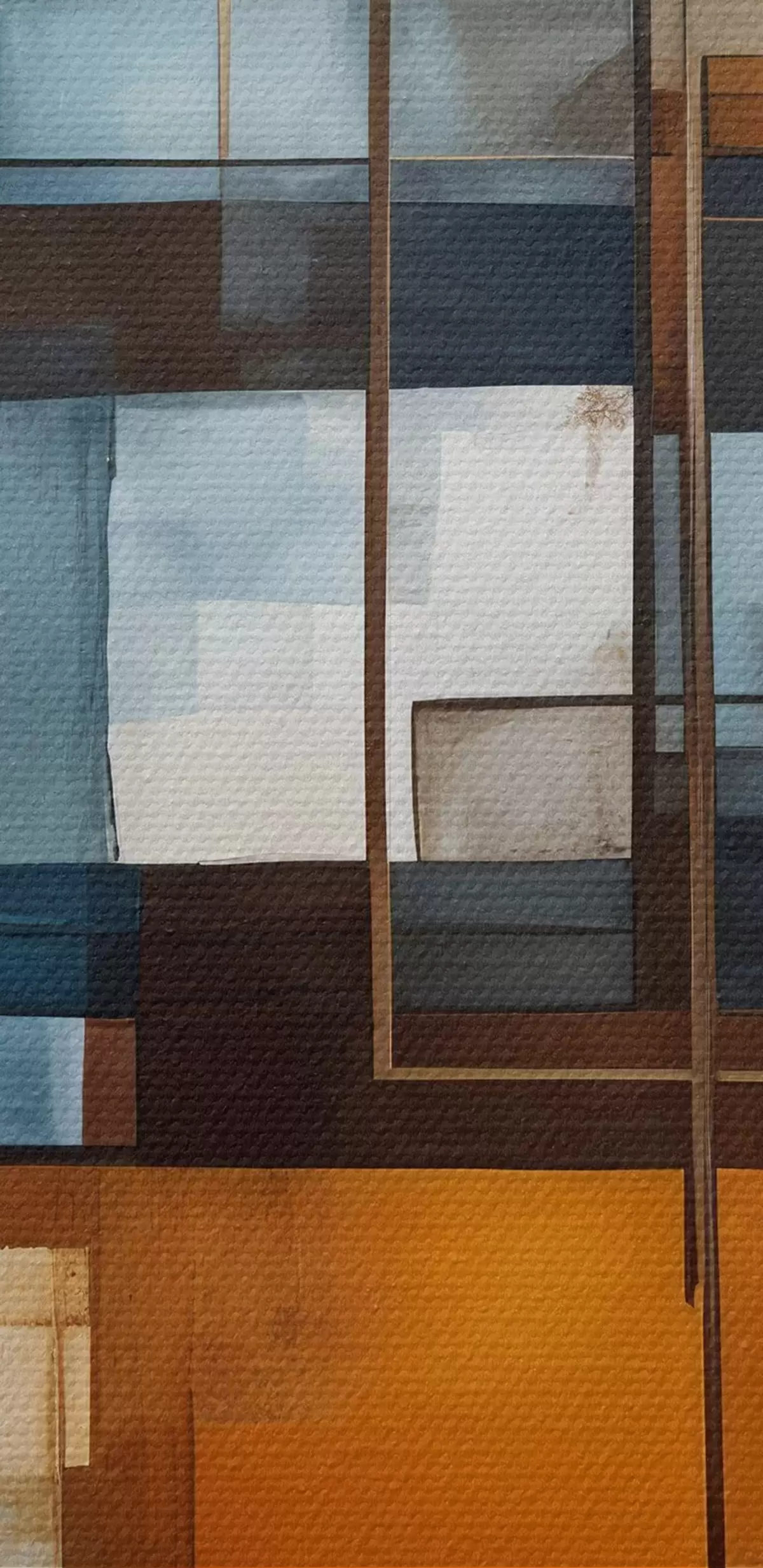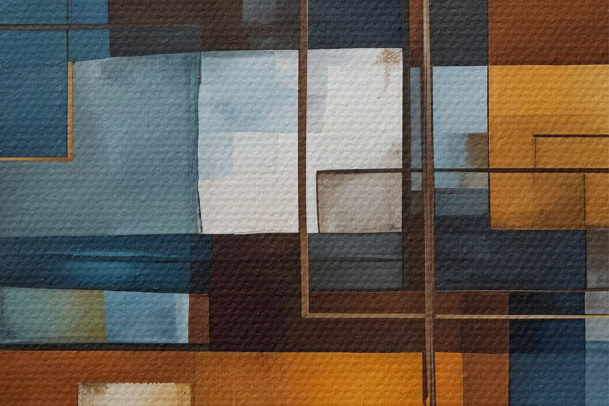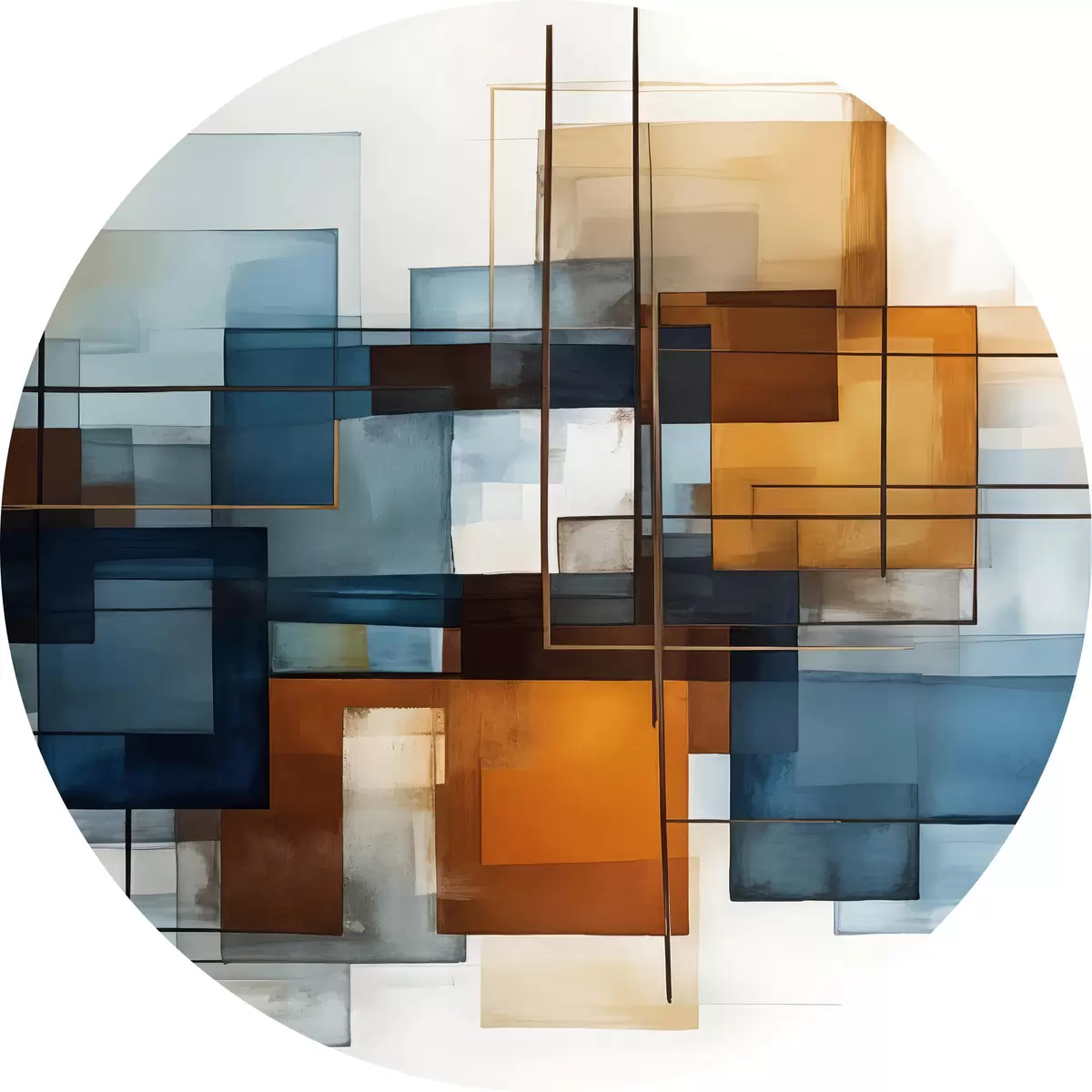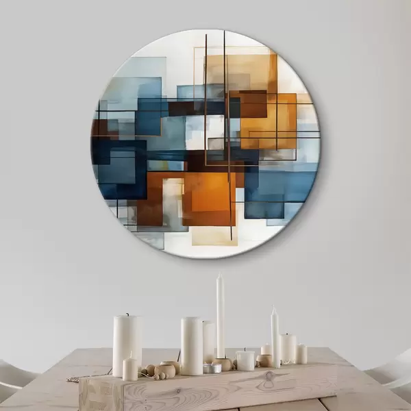 Nuotrauka Abstrakčios geometrinės formos mėlynais, oranžiniais ir rudais atspalviais sukuria modernią, minimalistinę kompoziciją. Nr r40563