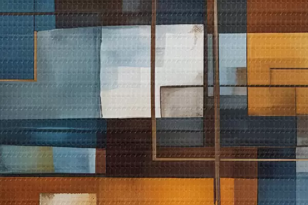 Nuotrauka Abstrakčios geometrinės formos mėlynais, oranžiniais ir rudais atspalviais sukuria modernią, minimalistinę kompoziciją. Nr r40563