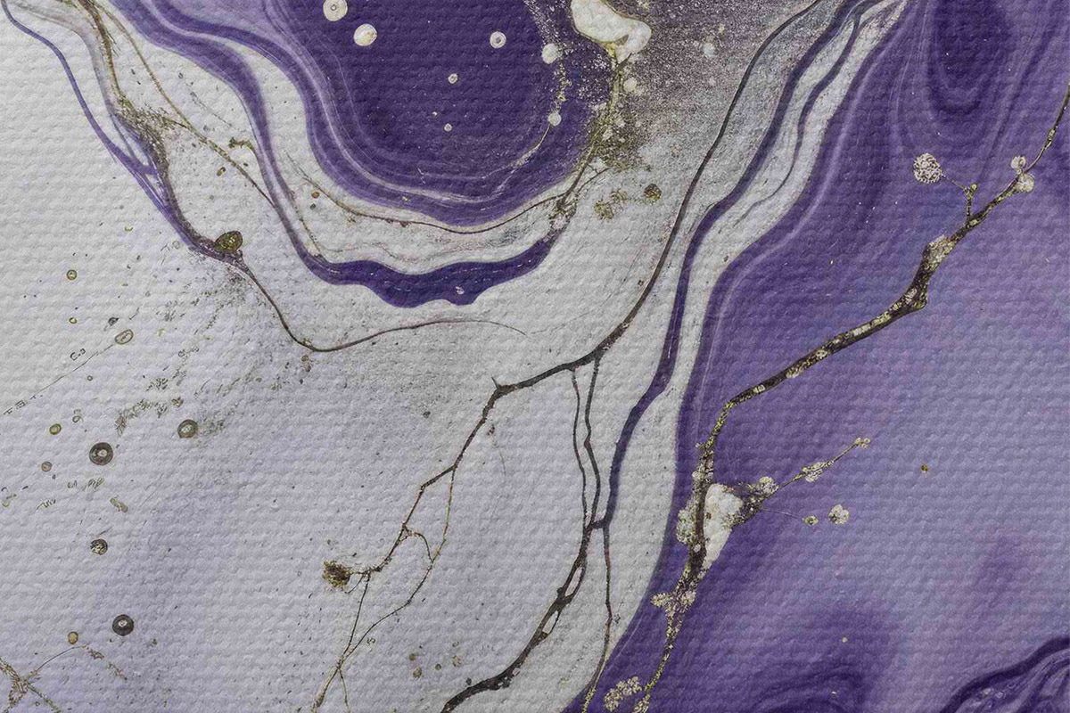 Nuotrauka Abstrakti skysto meno kompozicija, atspausdinta virpančiais violetiniais, baltais ir pilkais dažais Nr r40566