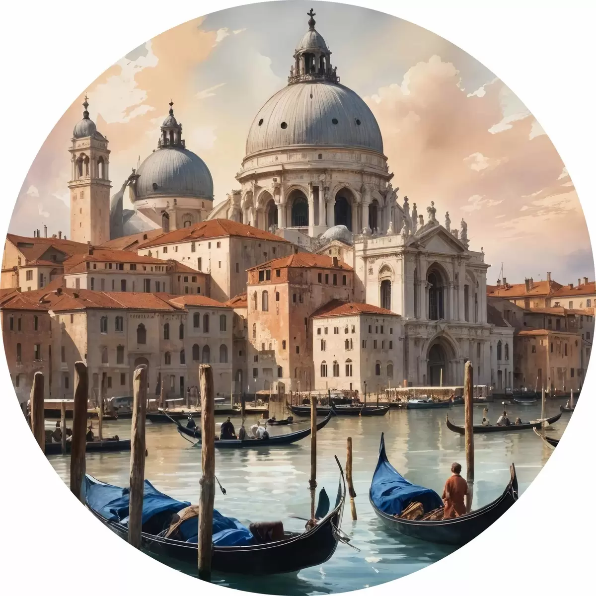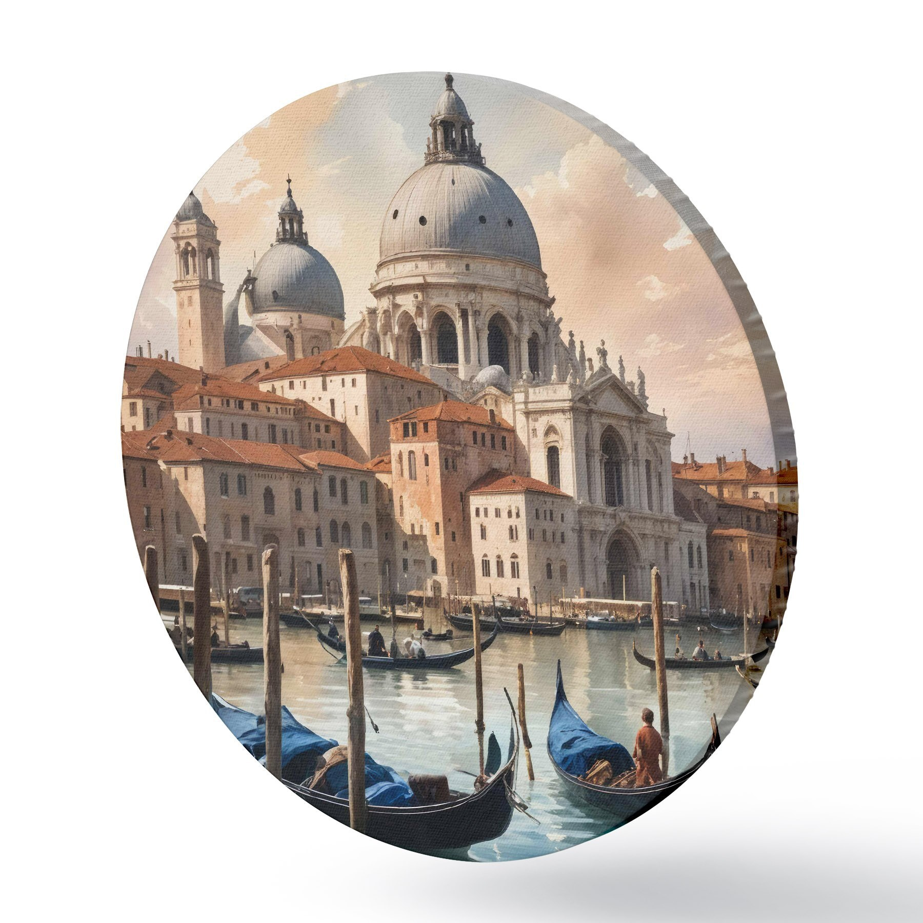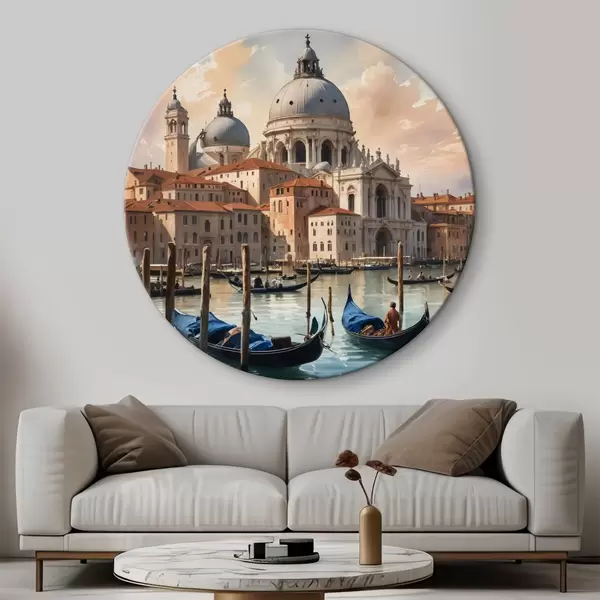 Apvalūs paveikslai Akvarele tapytas paveikslas, kuriame vaizduojamas Venecijos Didžiojo kanalo vaizdas, Italija r40573