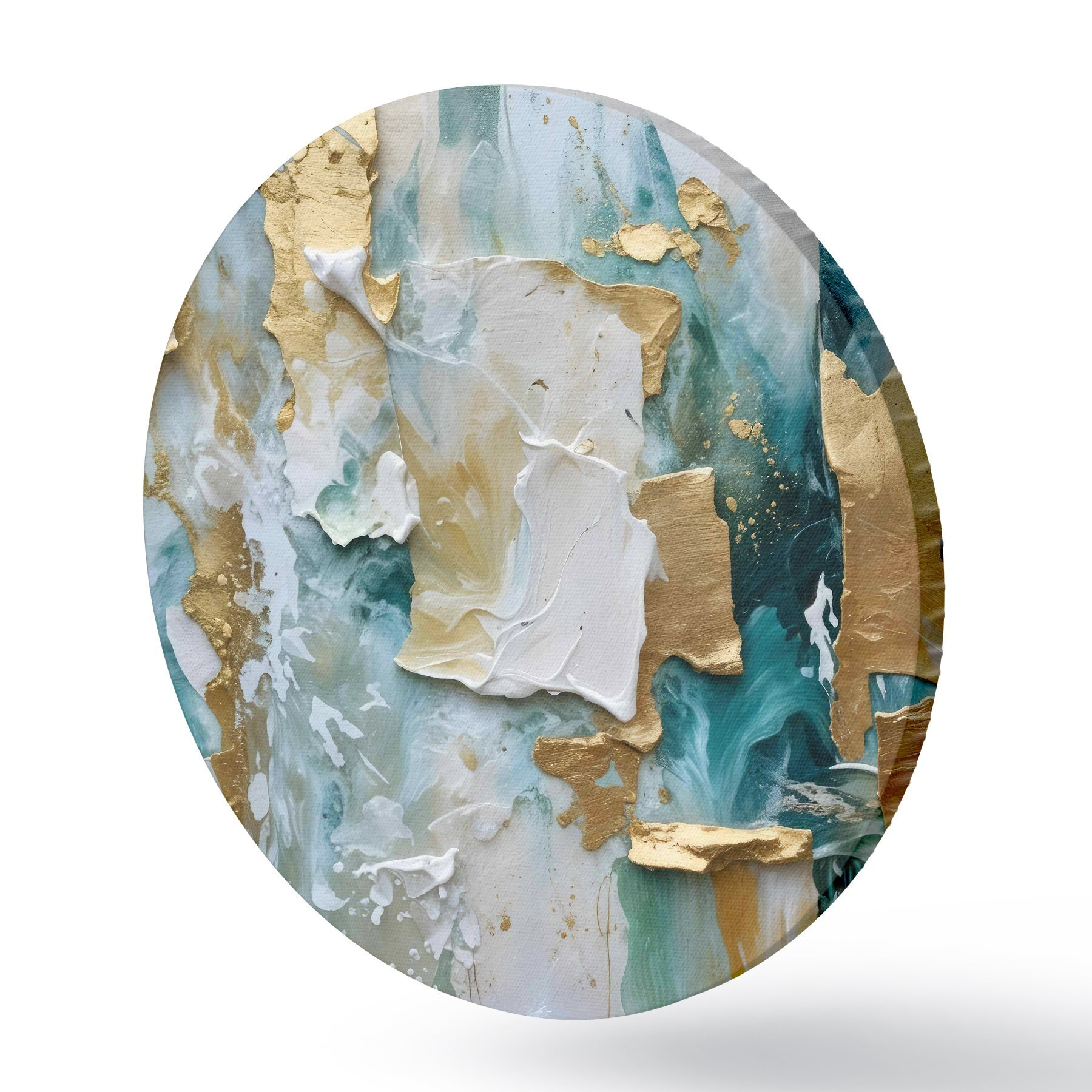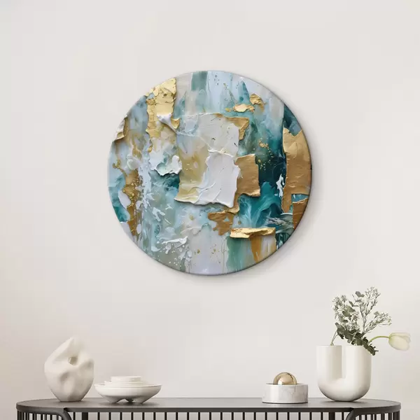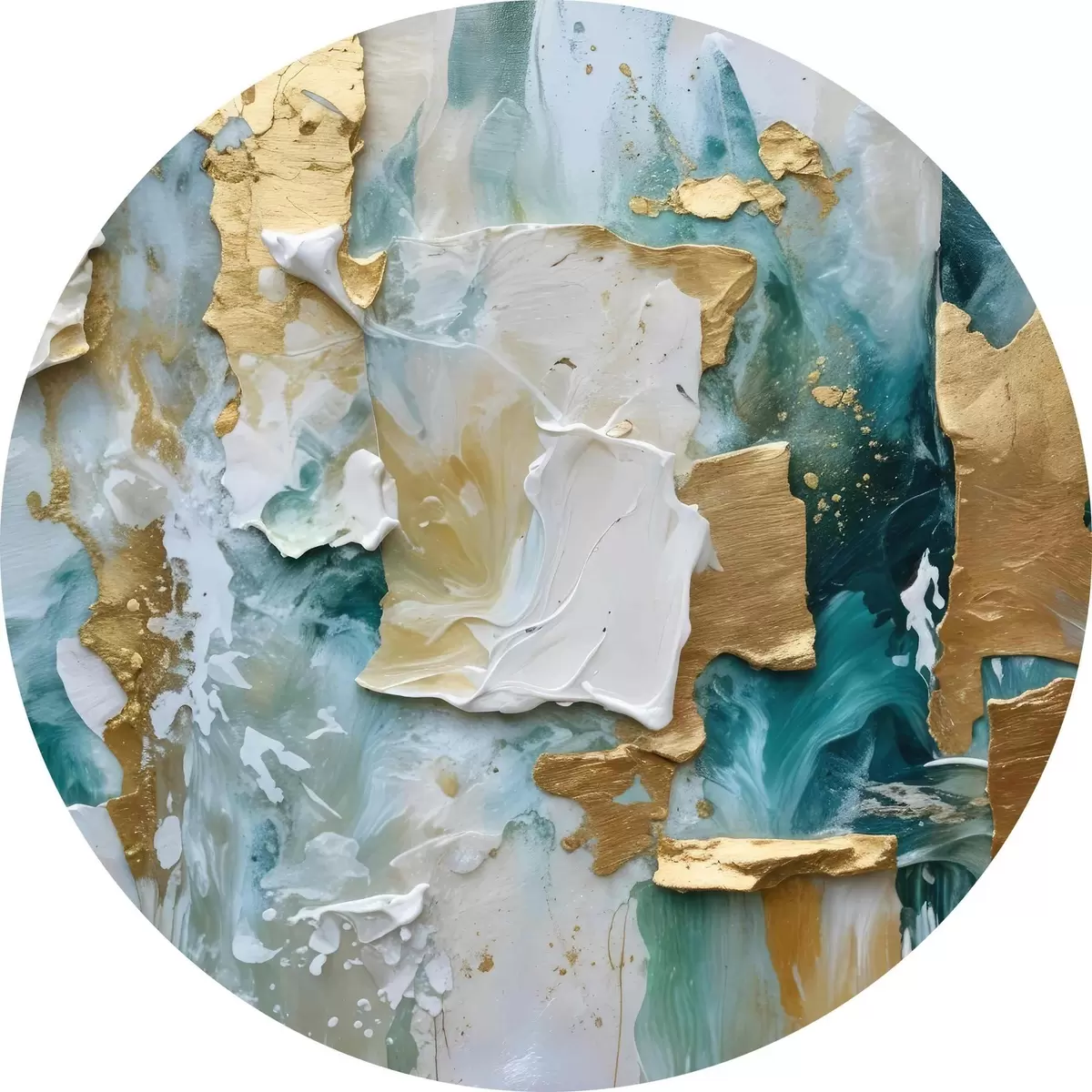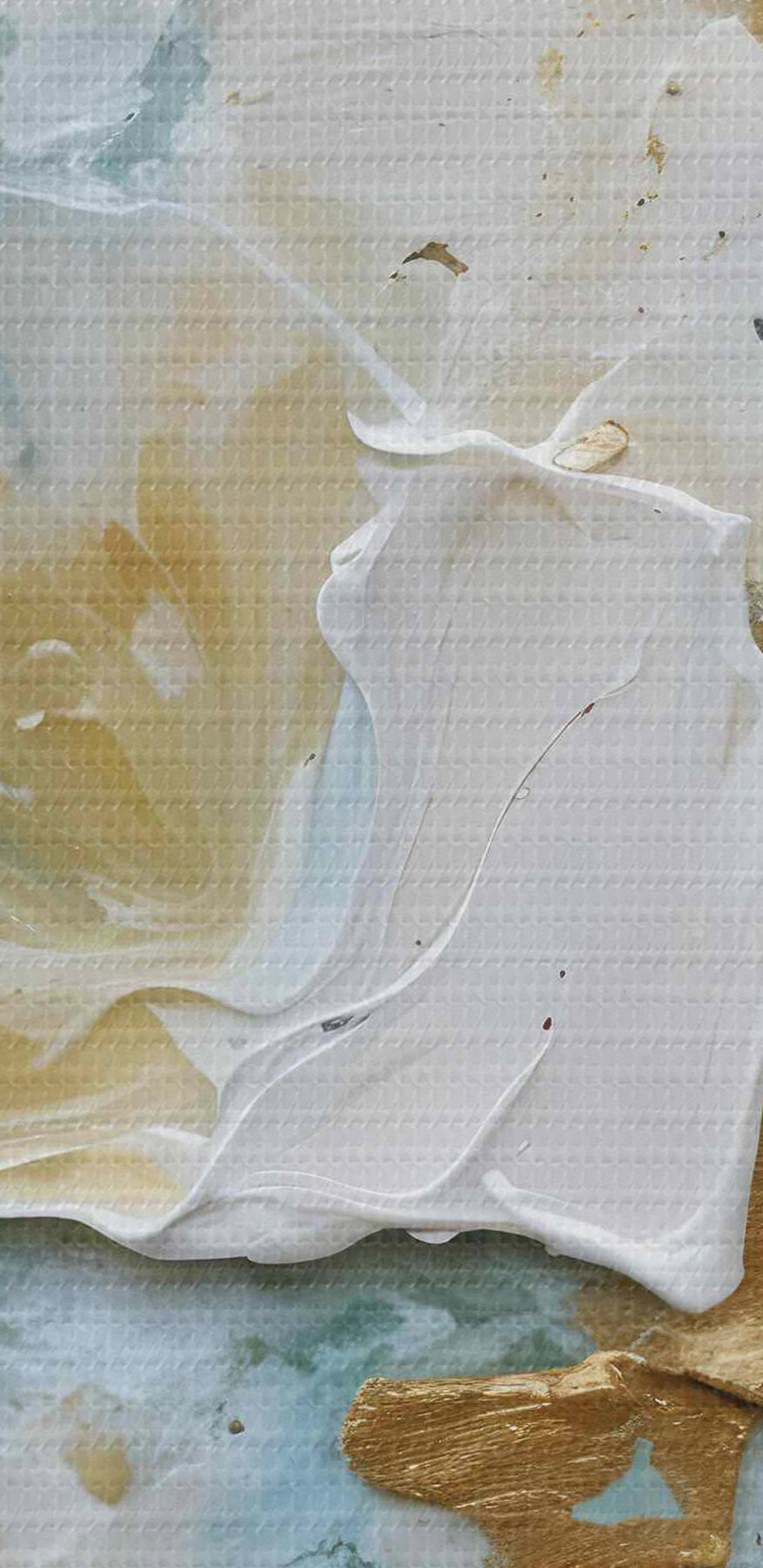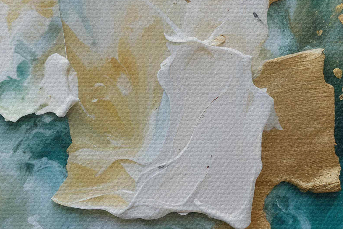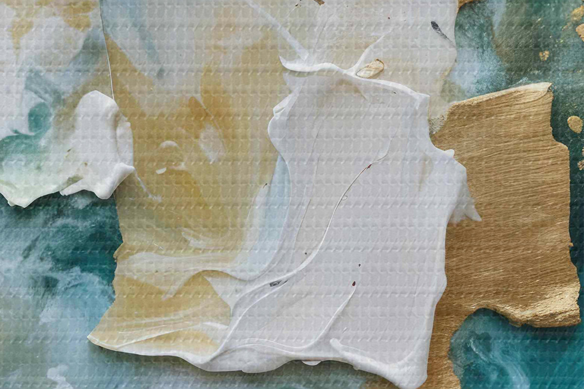 Nuotrauka Nulupti dažai su baltos, mėlynos ir geltonos spalvos sluoksniais sukuria abstraktų, tekstūrinį atspaudą Nr r40577