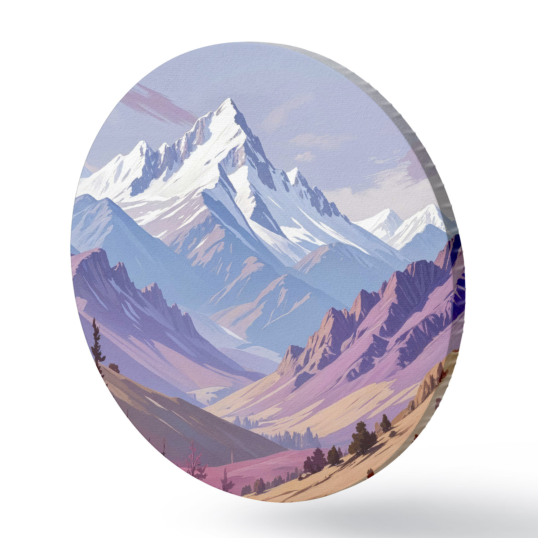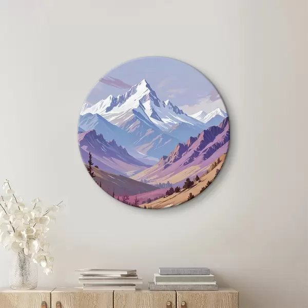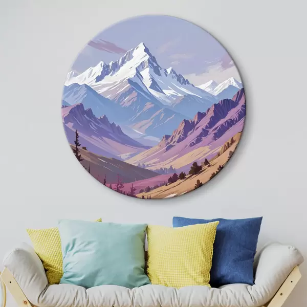 Nuotrauka Snieguotos kalnų viršūnės spalvingame kraštovaizdyje su pušimis pirmame plane Nr r40595