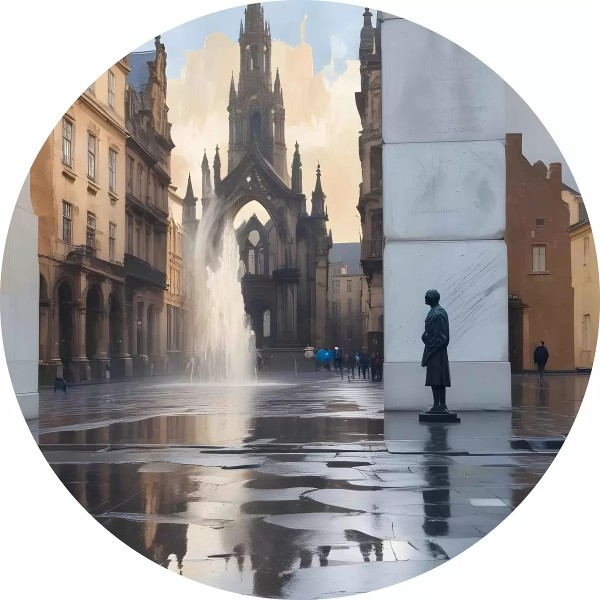Nuotrauka Fone stovi gotikinės architektūros viduramžių katedra, kurios bokštai siekia dangų Nr r40611