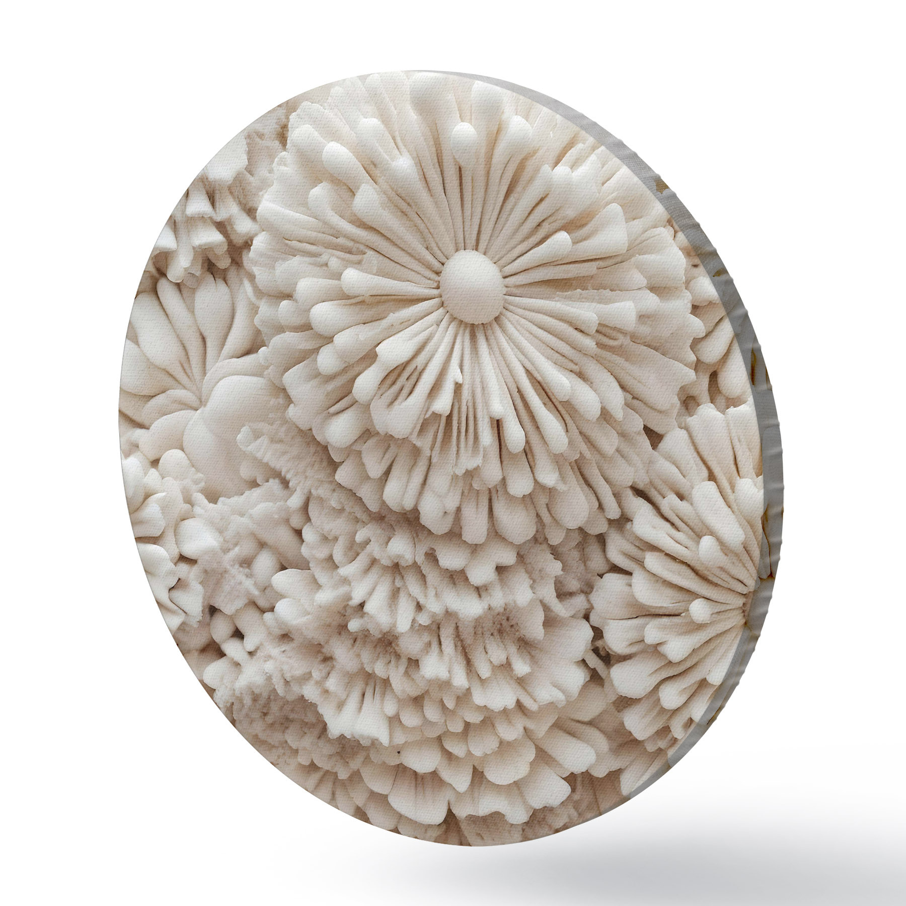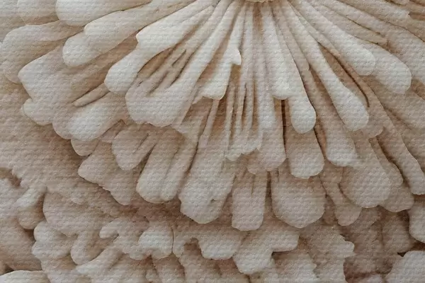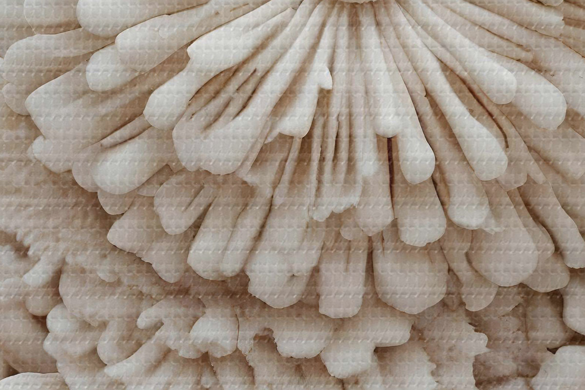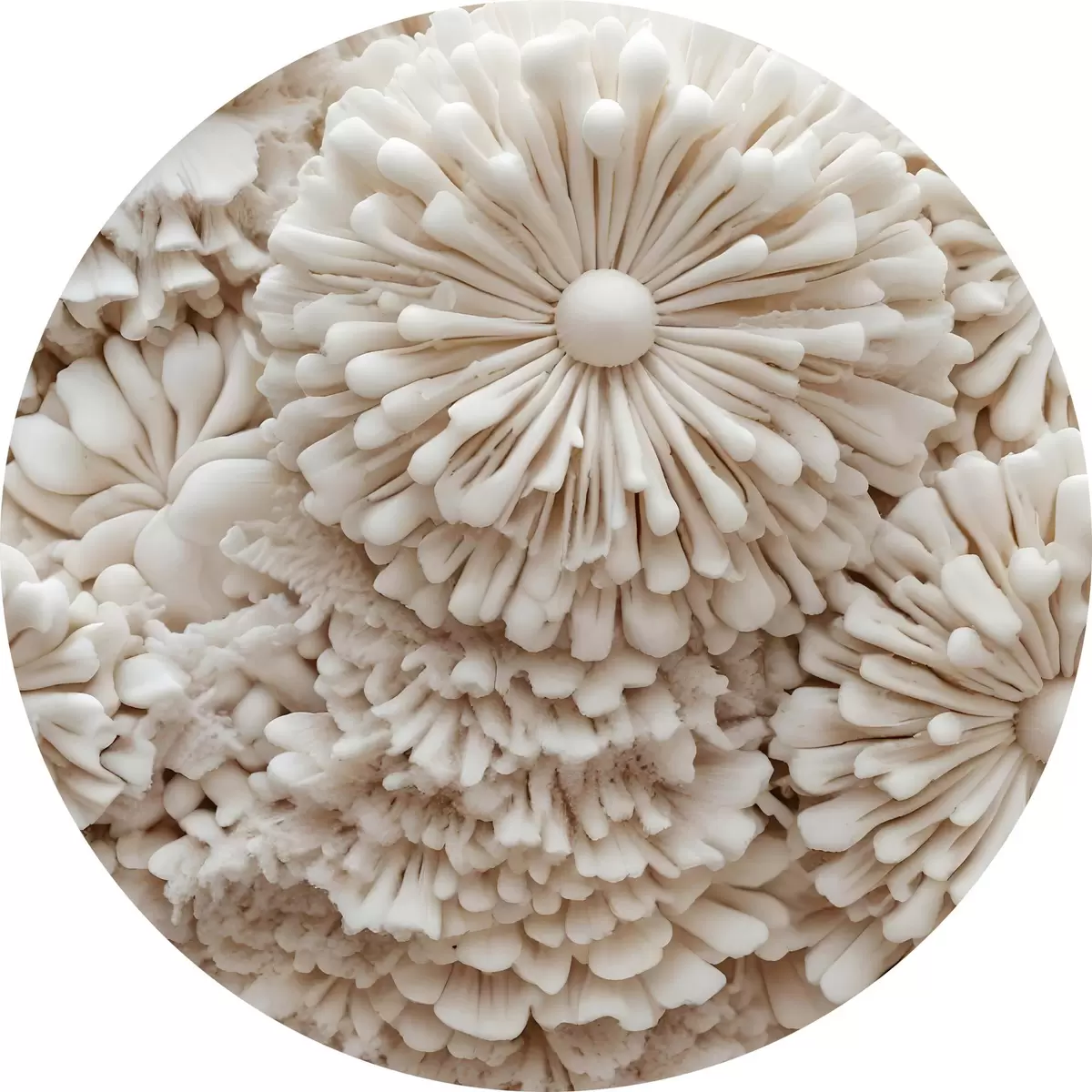 Nuotrauka Švelnių, kreminės spalvos koralų struktūrų, sukuriančių minkštą, tekstūrinį raštą, grupė stambiu planu Nr r40614