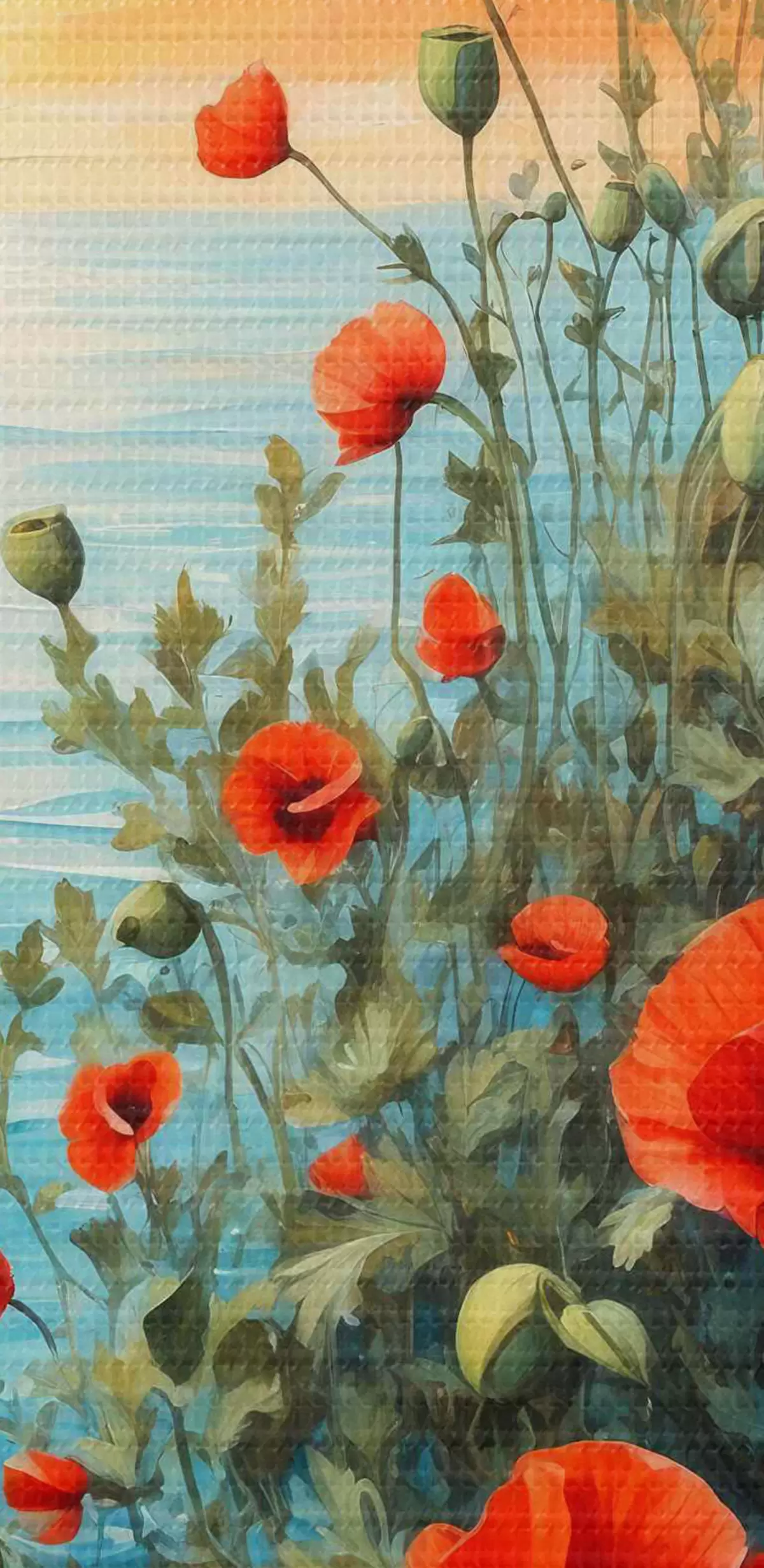 Nuotrauka Žydinčios aguonos jūros fone Nr r40637