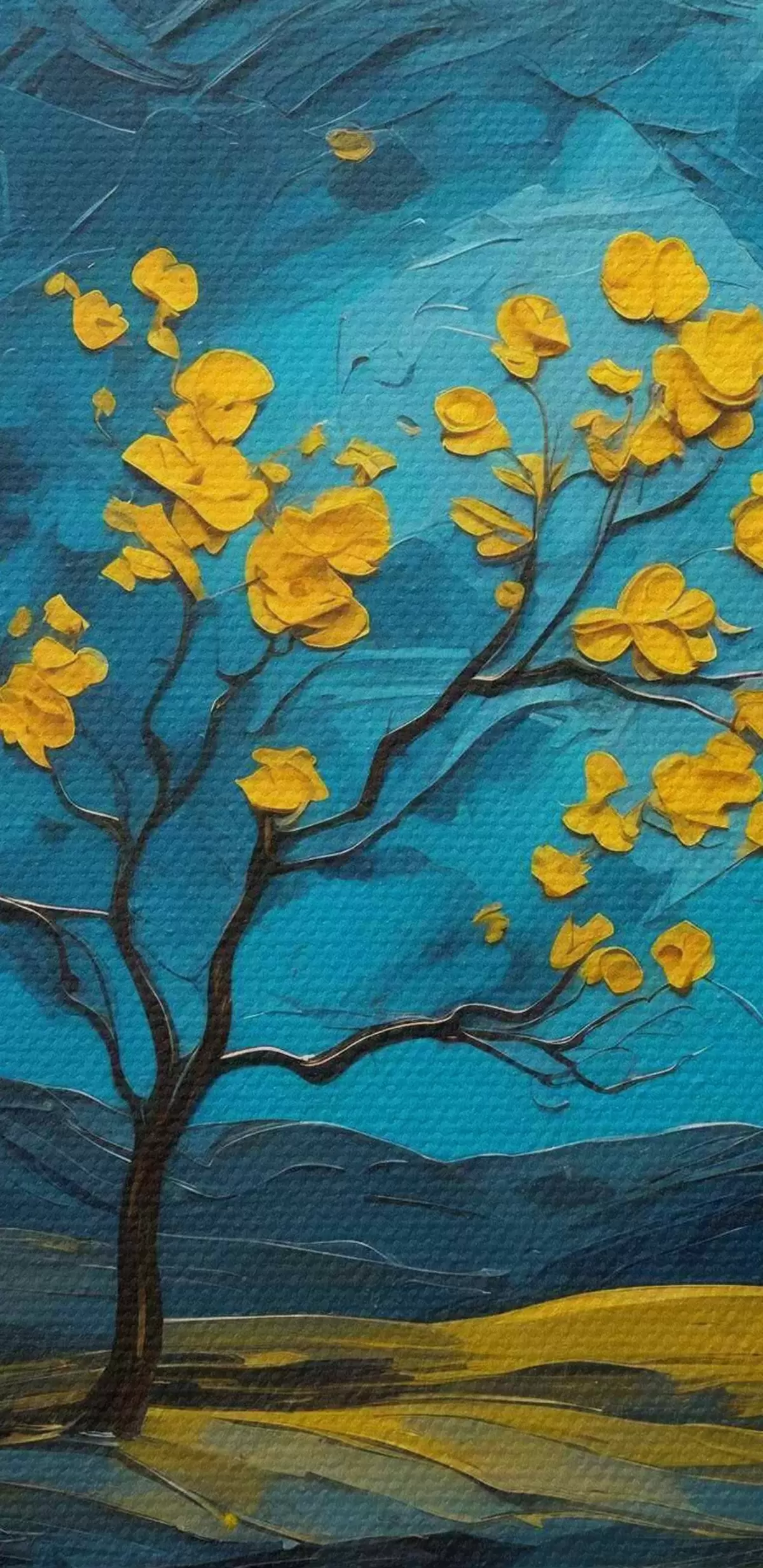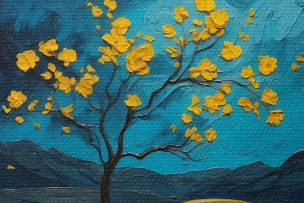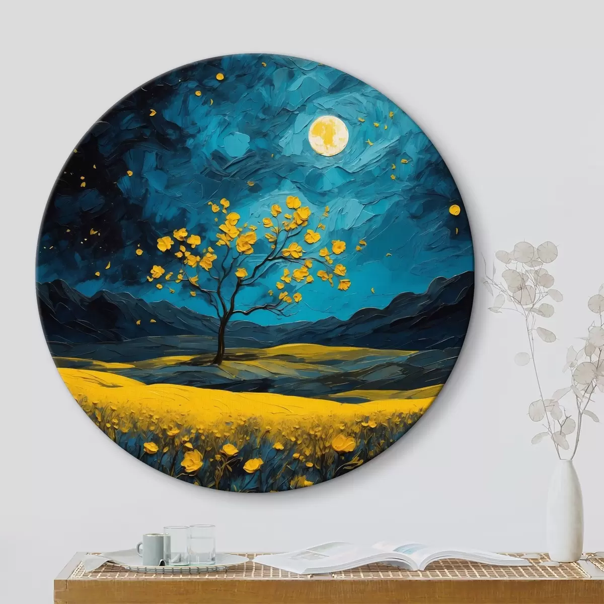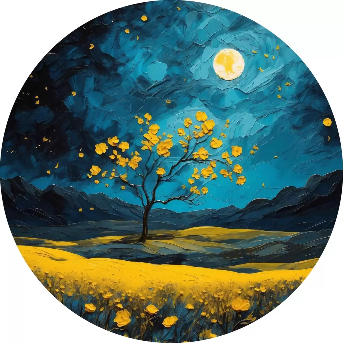 Nuotrauka Geltonų gėlių laukas naktį Nr r40643