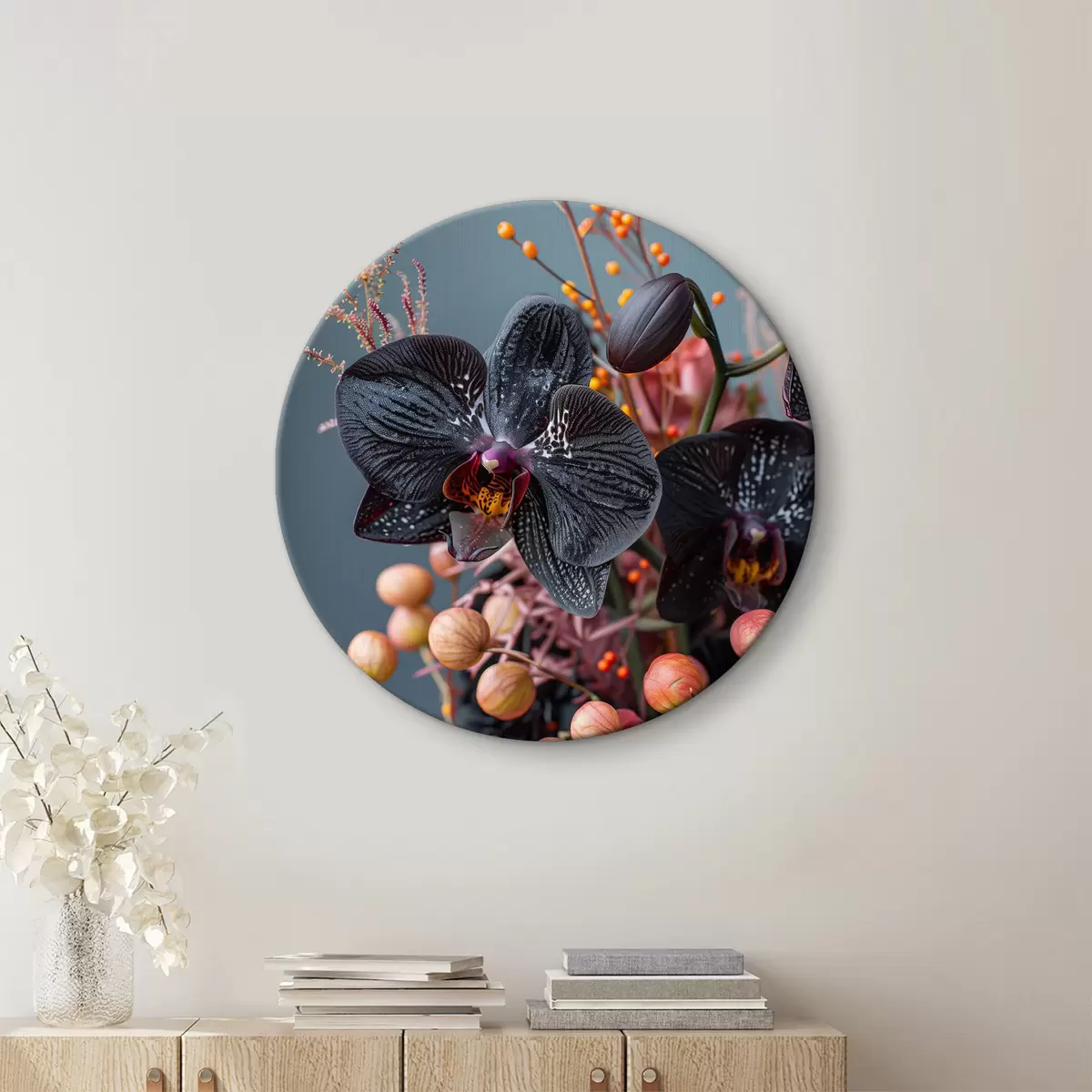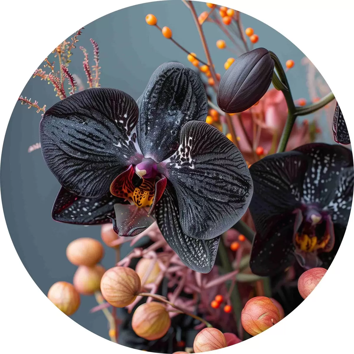 Nuotrauka Elegantiška gėlių kompozicija su juodąja orchidėja ir kitais augalais Nr r40662