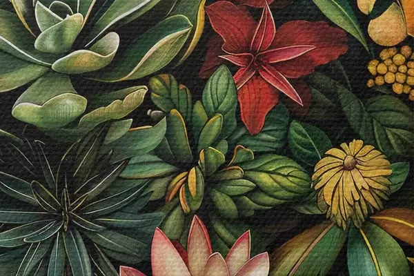 Nuotrauka Gausus sodas su sukulentais ir atogrąžų gėlėmis Nr r40666