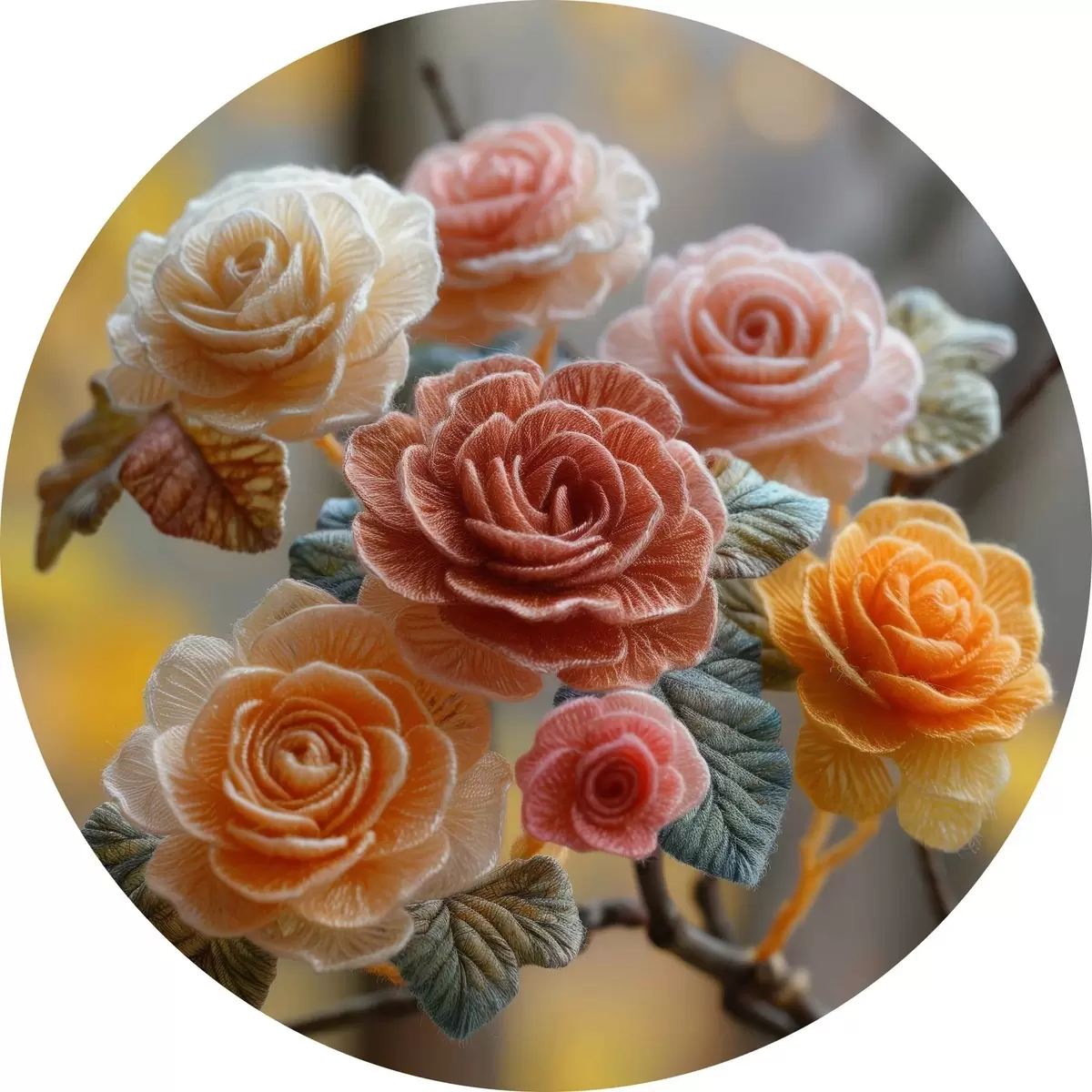 Nuotrauka Puri rankų darbo megztų rožių puokštė Nr r40673