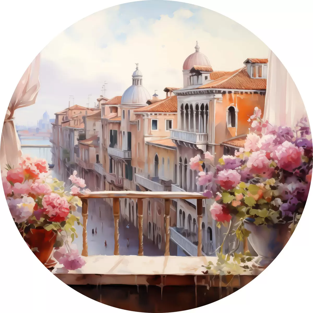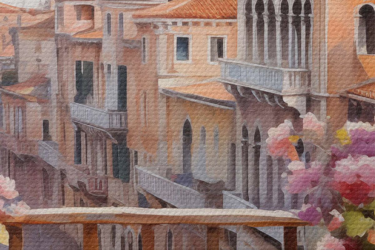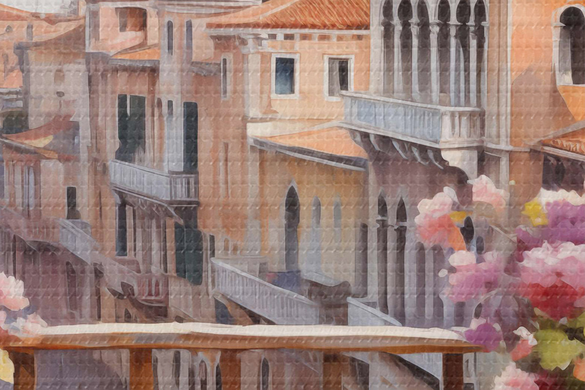 Nuotrauka Gėlės vazose su vaizdu į Venecijos įlanką akvarelėje Nr r40677