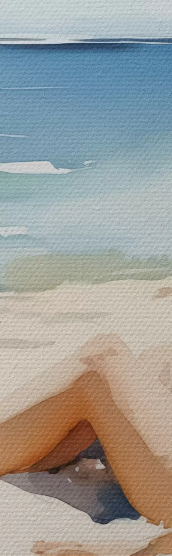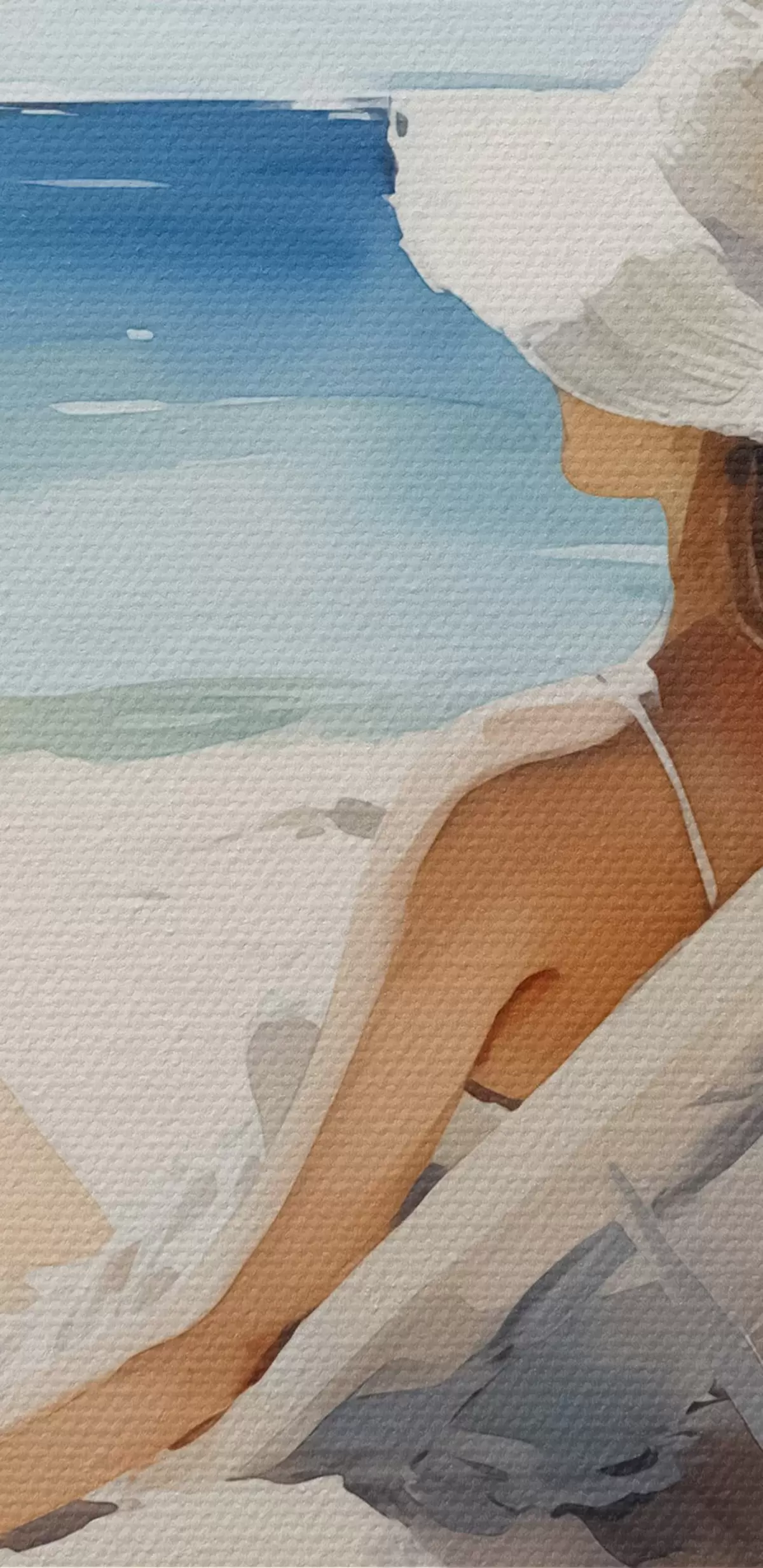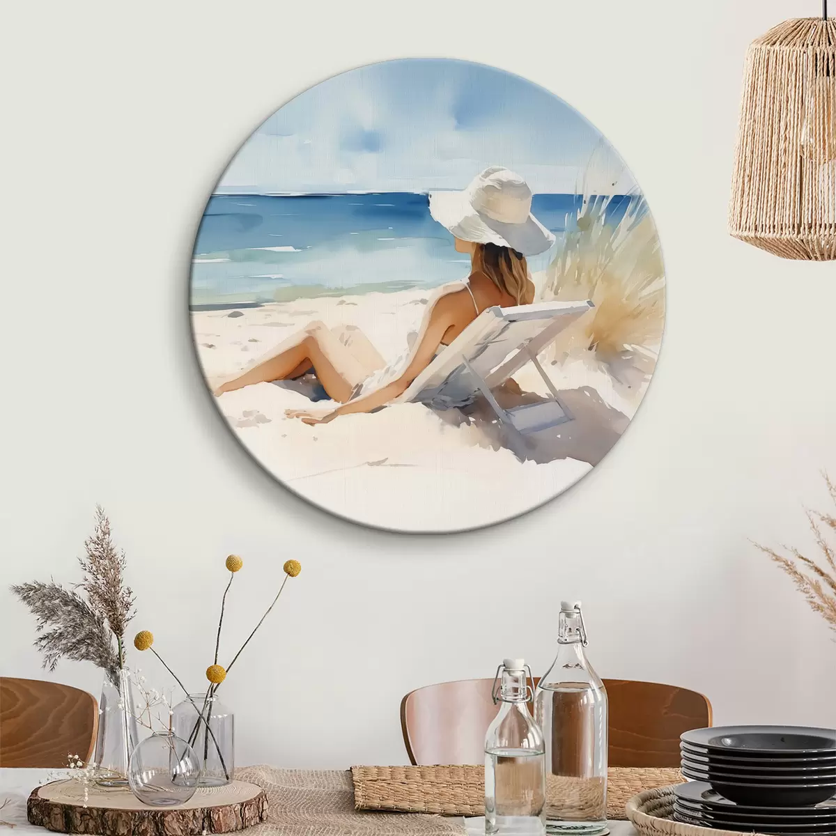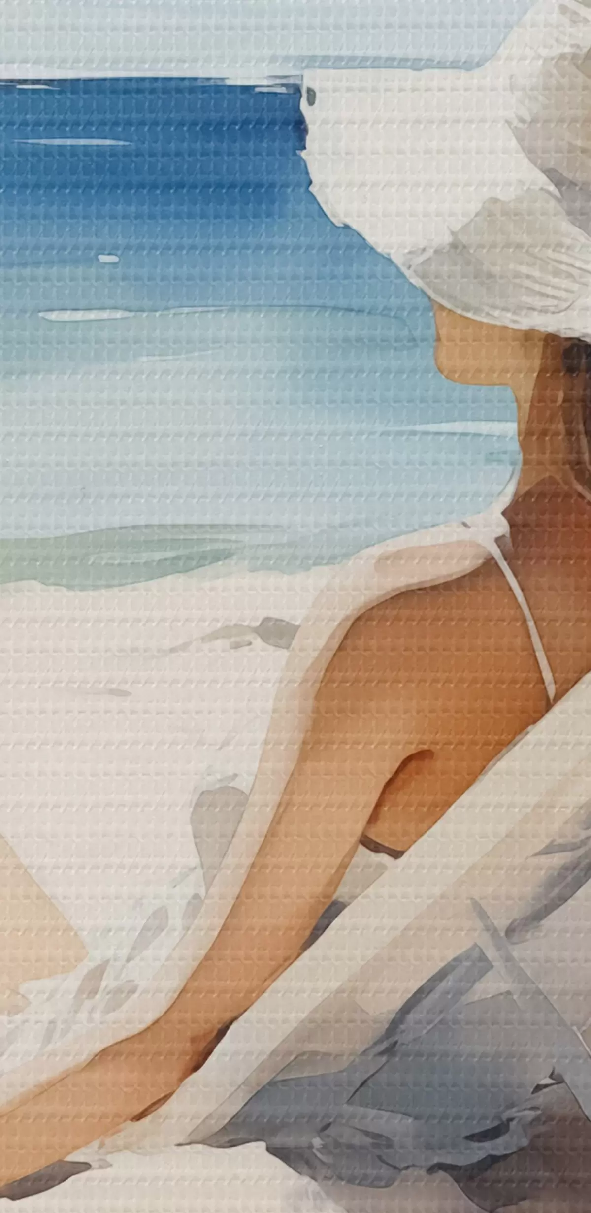 Nuotrauka Mergina atsipalaidavusi paplūdimyje prie jūros akvarelė Nr r40679