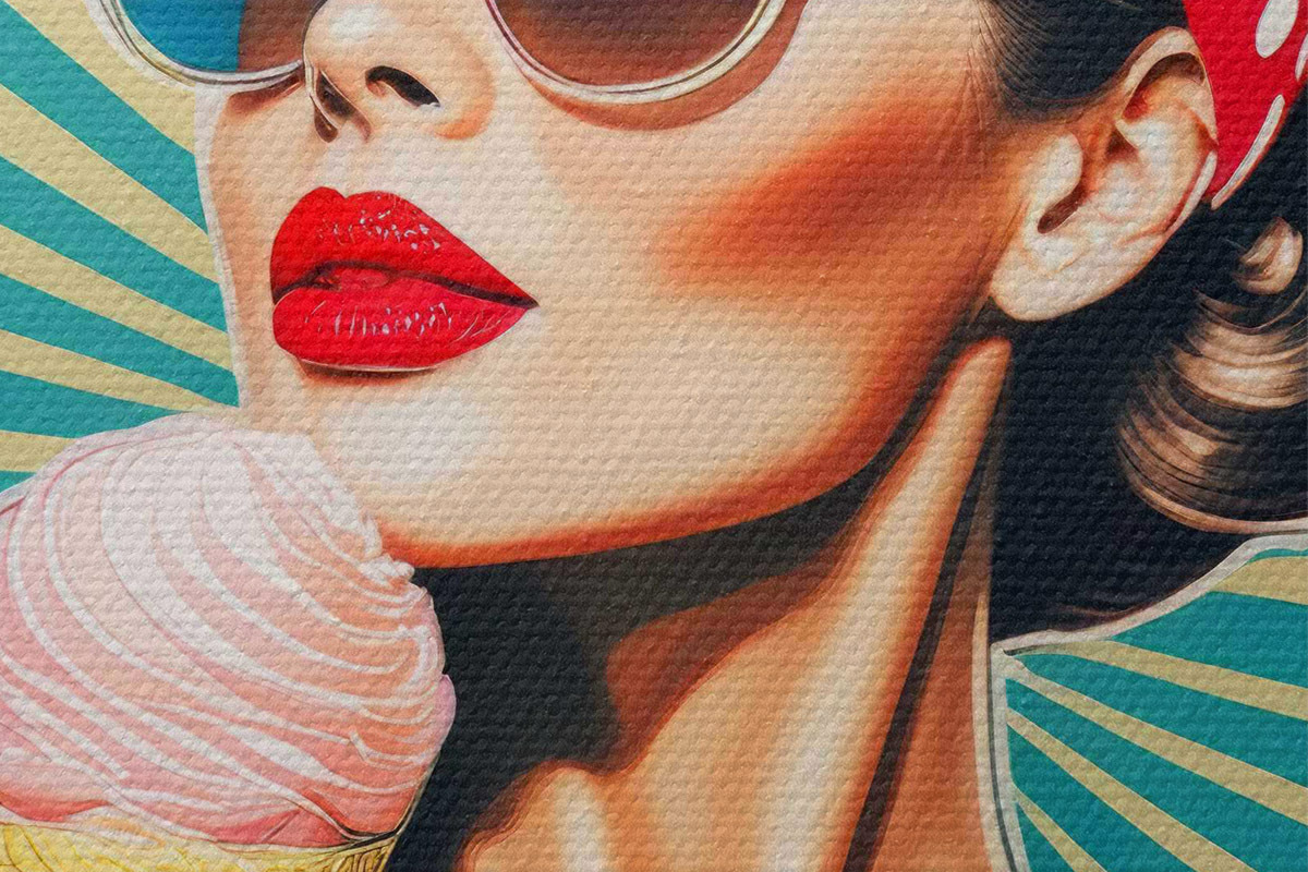Nuotrauka mergina su ledais, pop menas, pin-up, retro Nr r40718