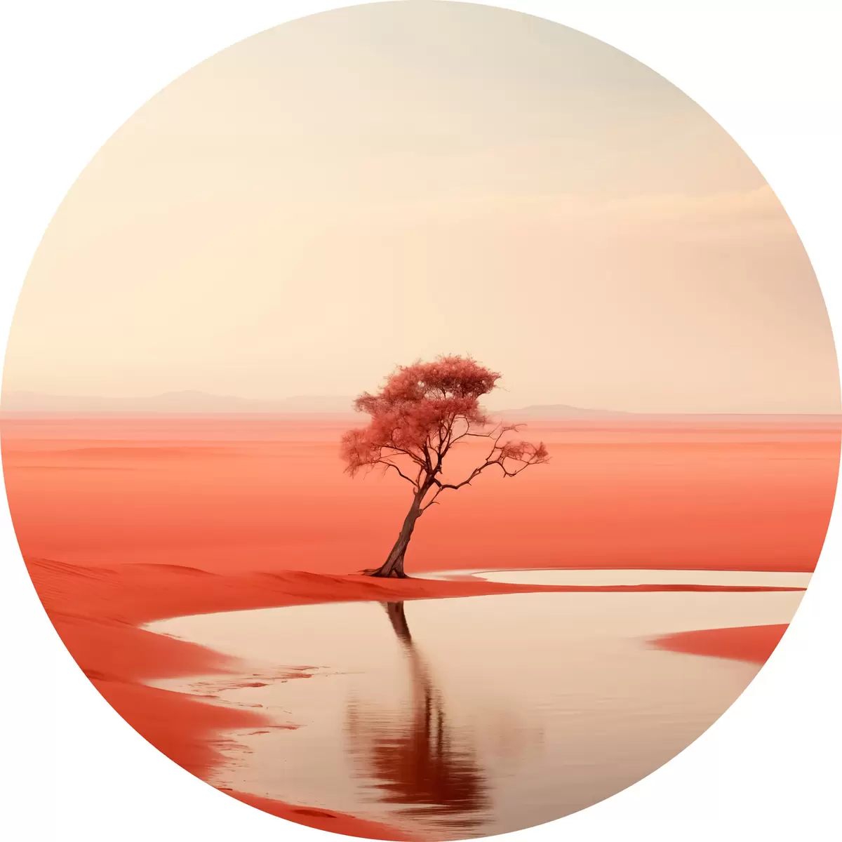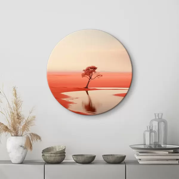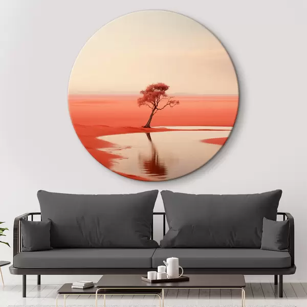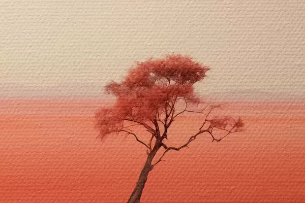 Nuotrauka Minimalistinis medžių kraštovaizdis prie upės, raudona, pilka spalva Nr r40722