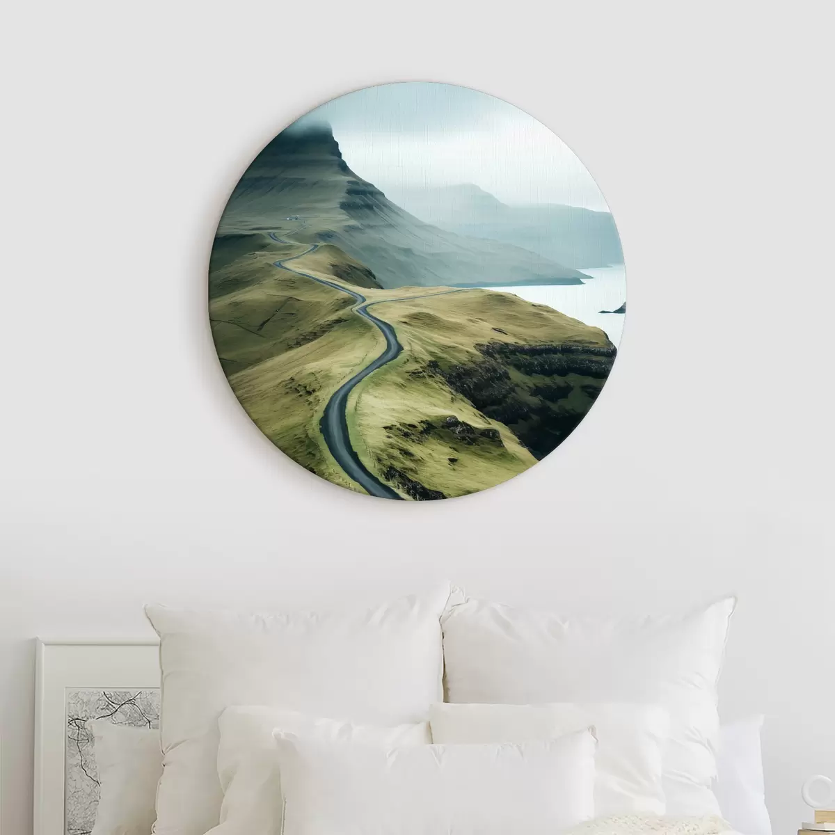 Apvalūs paveikslai Minimalistinis kelių kraštovaizdis Farerų salose prie jūros r40726