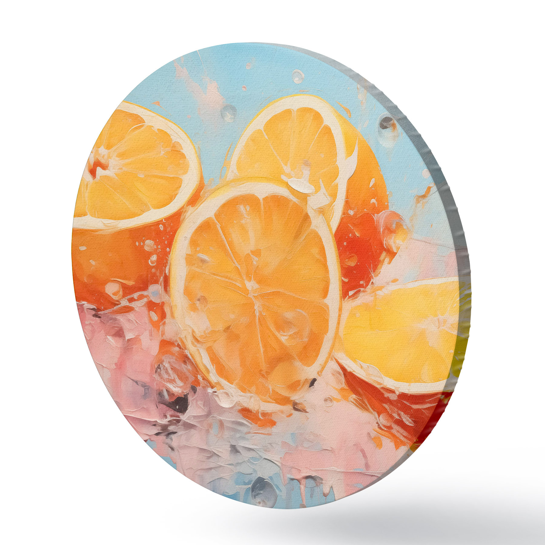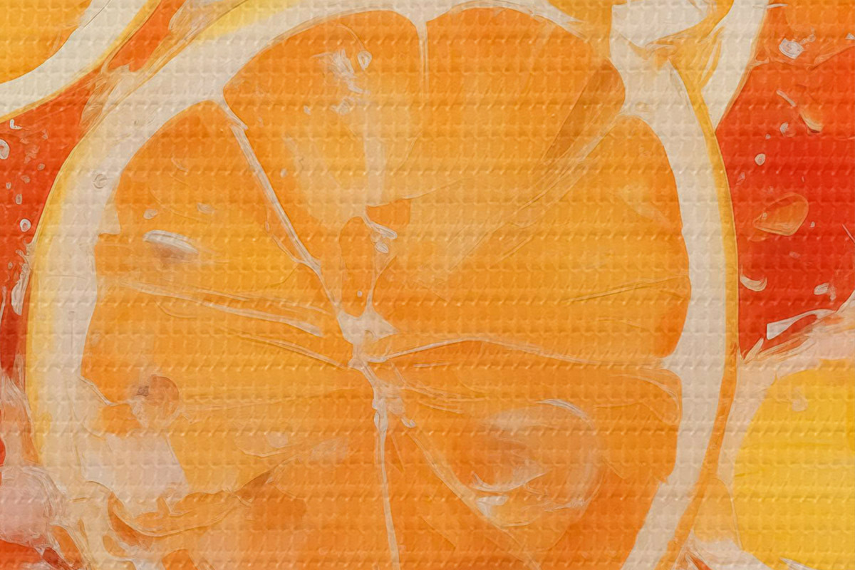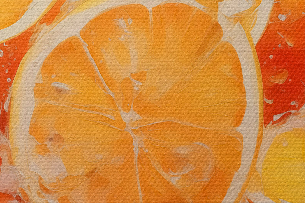 Nuotrauka Apelsinų puselės ant stalo, oranžinė, raudona, mėlyna, rožinė, geltona Nr r40727