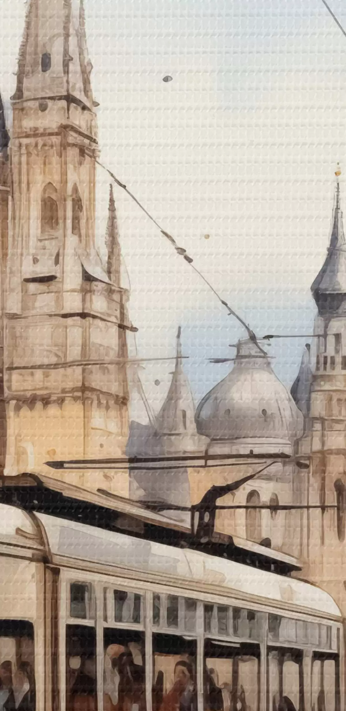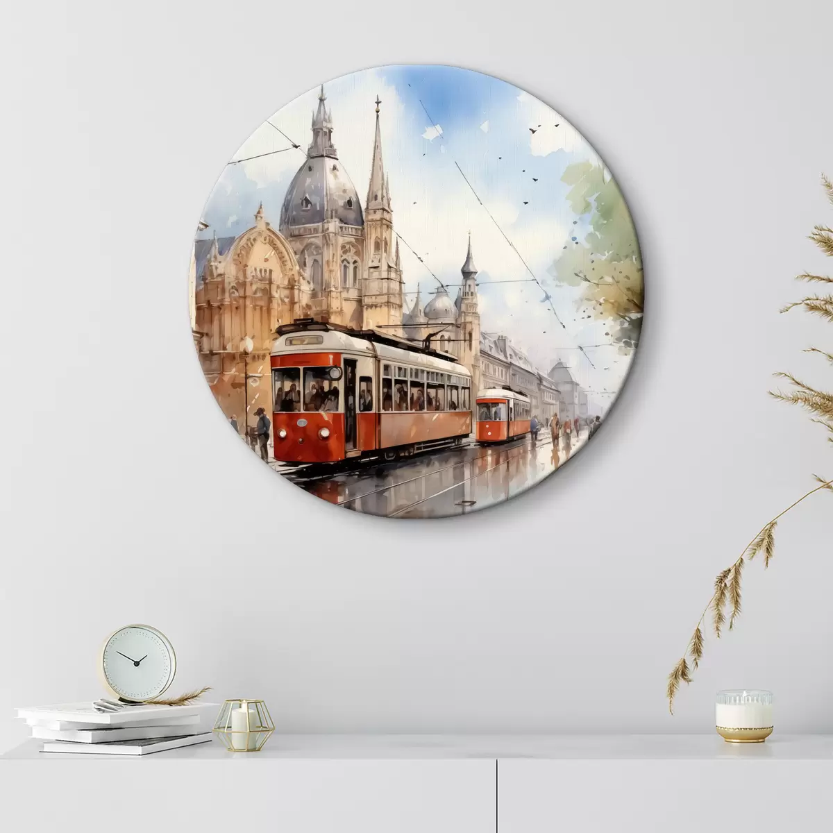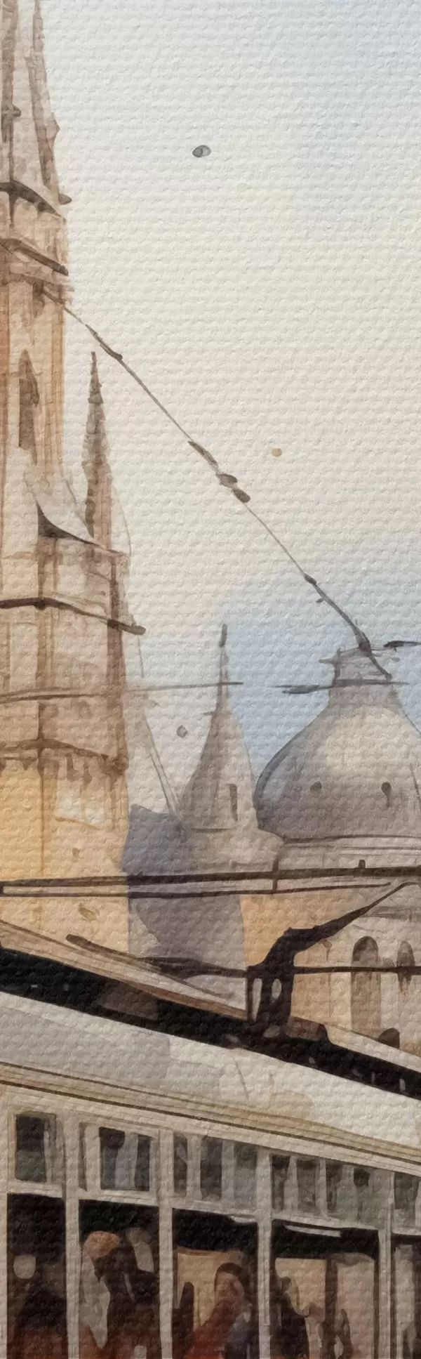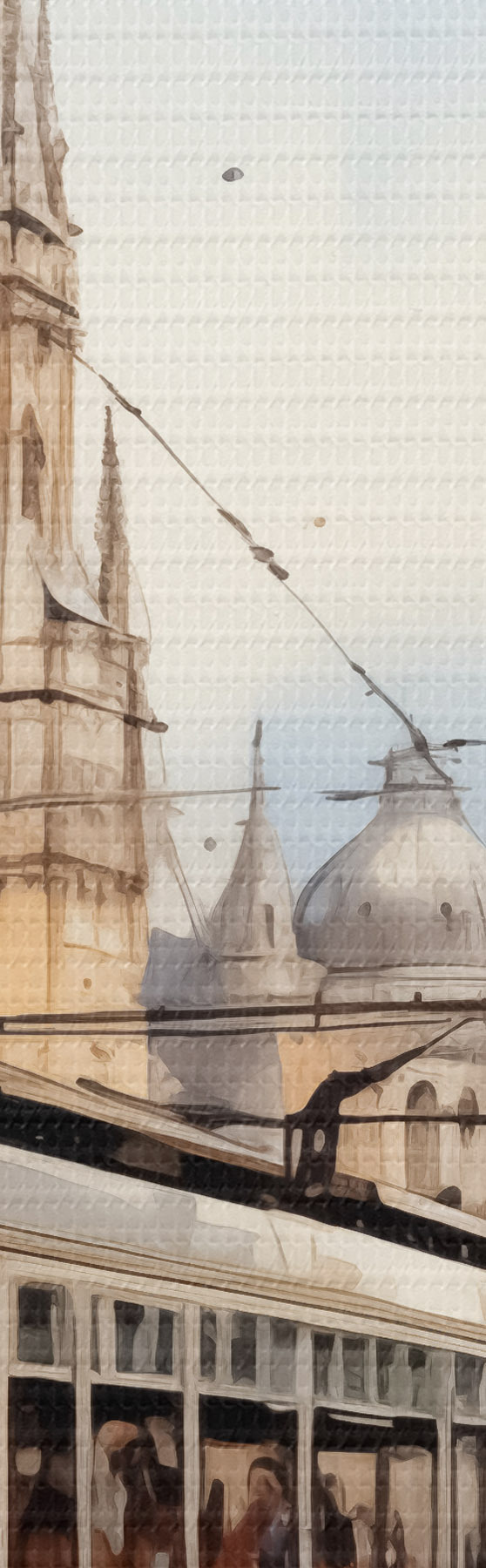 Nuotrauka Raudonas tramvajus Vienos gatvėje akvarelė Nr r40732