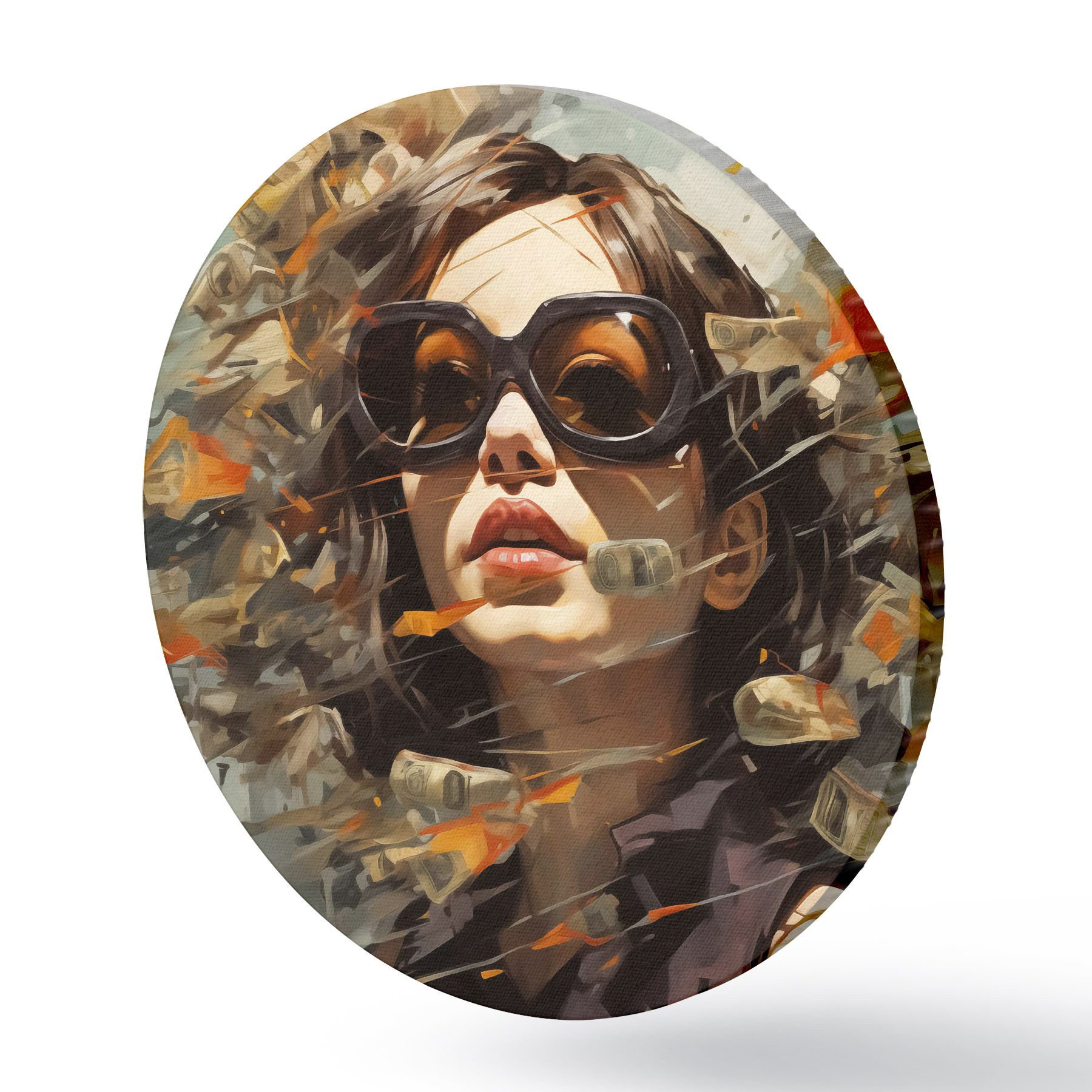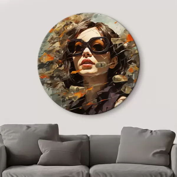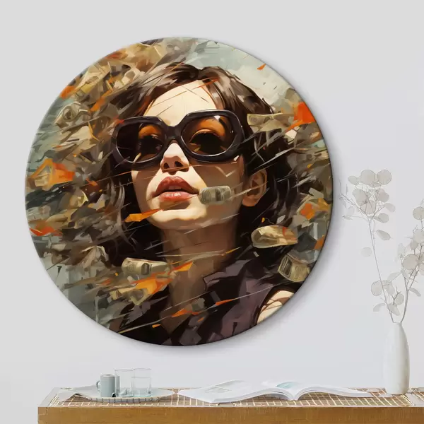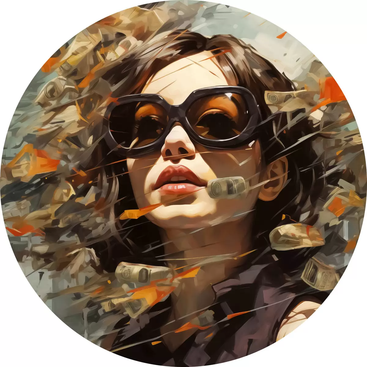 Nuotrauka Mergina su akiniais nuo saulės, apsupta abstrakčių pinigų Nr r40750