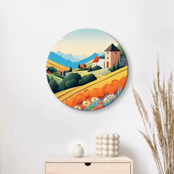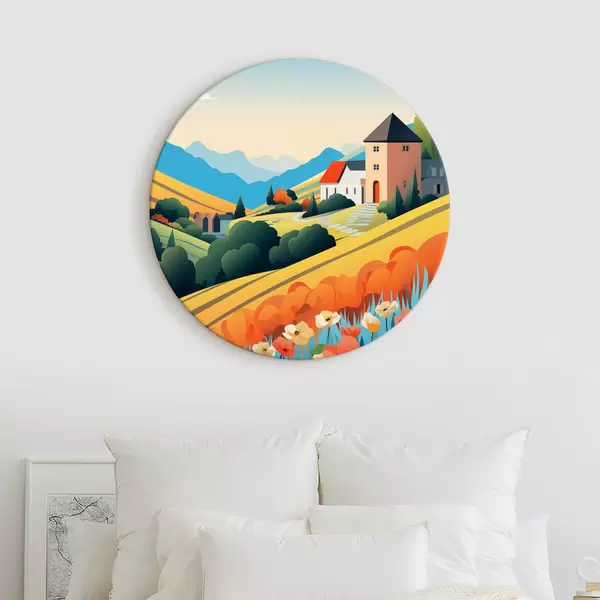 Nuotrauka Šviesus kaimo kraštovaizdis su laukais, aguonomis ir namais Nr r40756