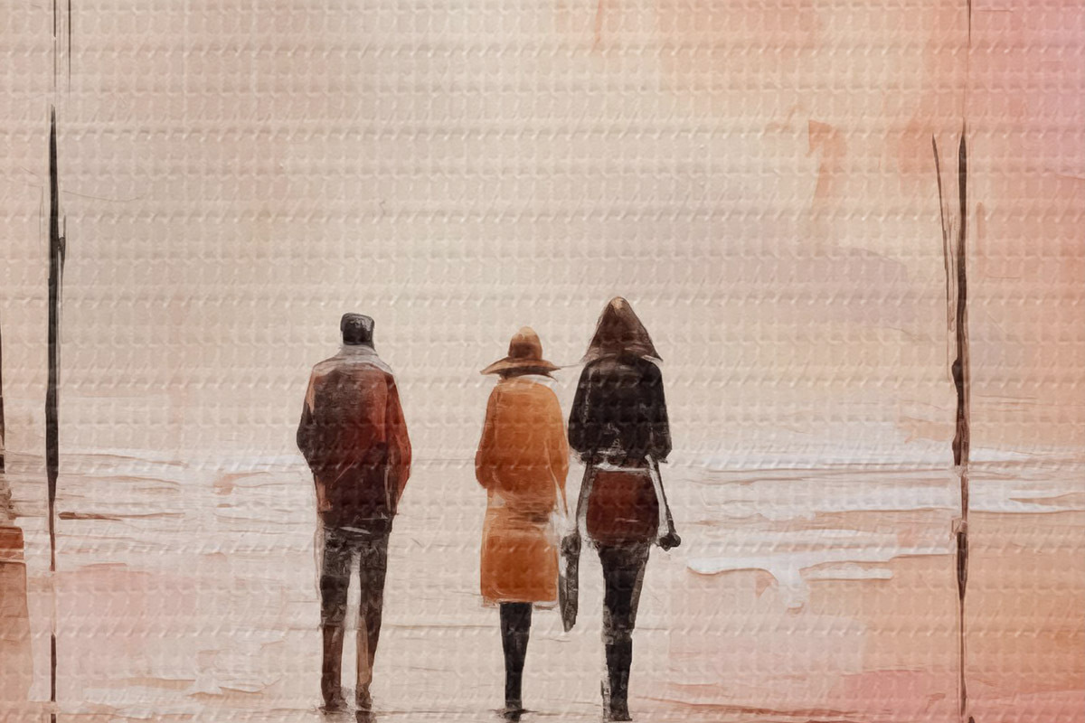 Nuotrauka Žmonės, vaikščiojantys parke abstrakcija, rožinė raudona spalva Nr r40802