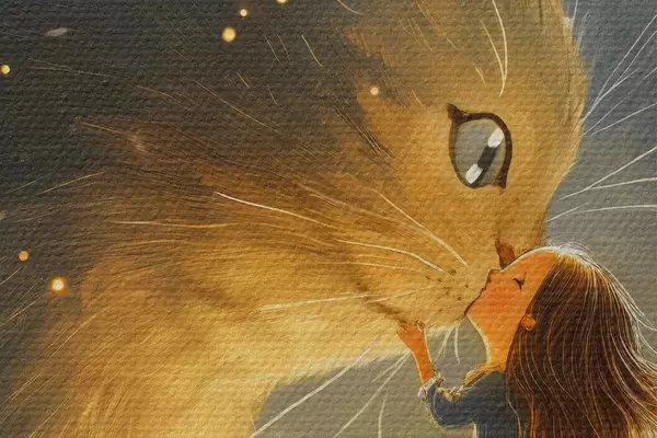 Nuotrauka Mergaitė pabučiuoja katę Nr r40825
