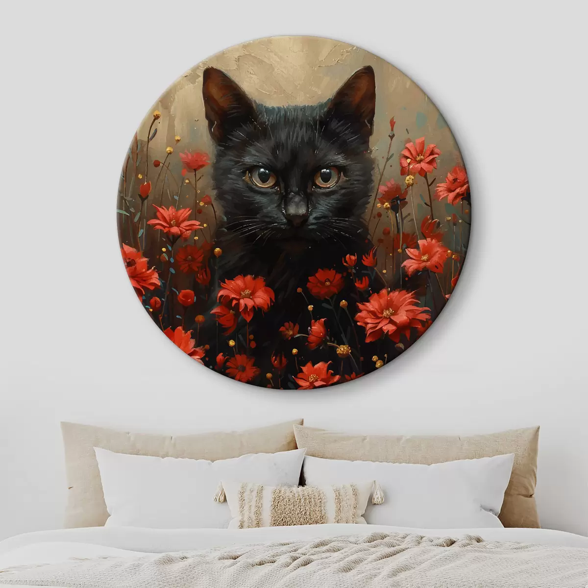 Nuotrauka Katė, gėlės, juoda katė Nr r40839